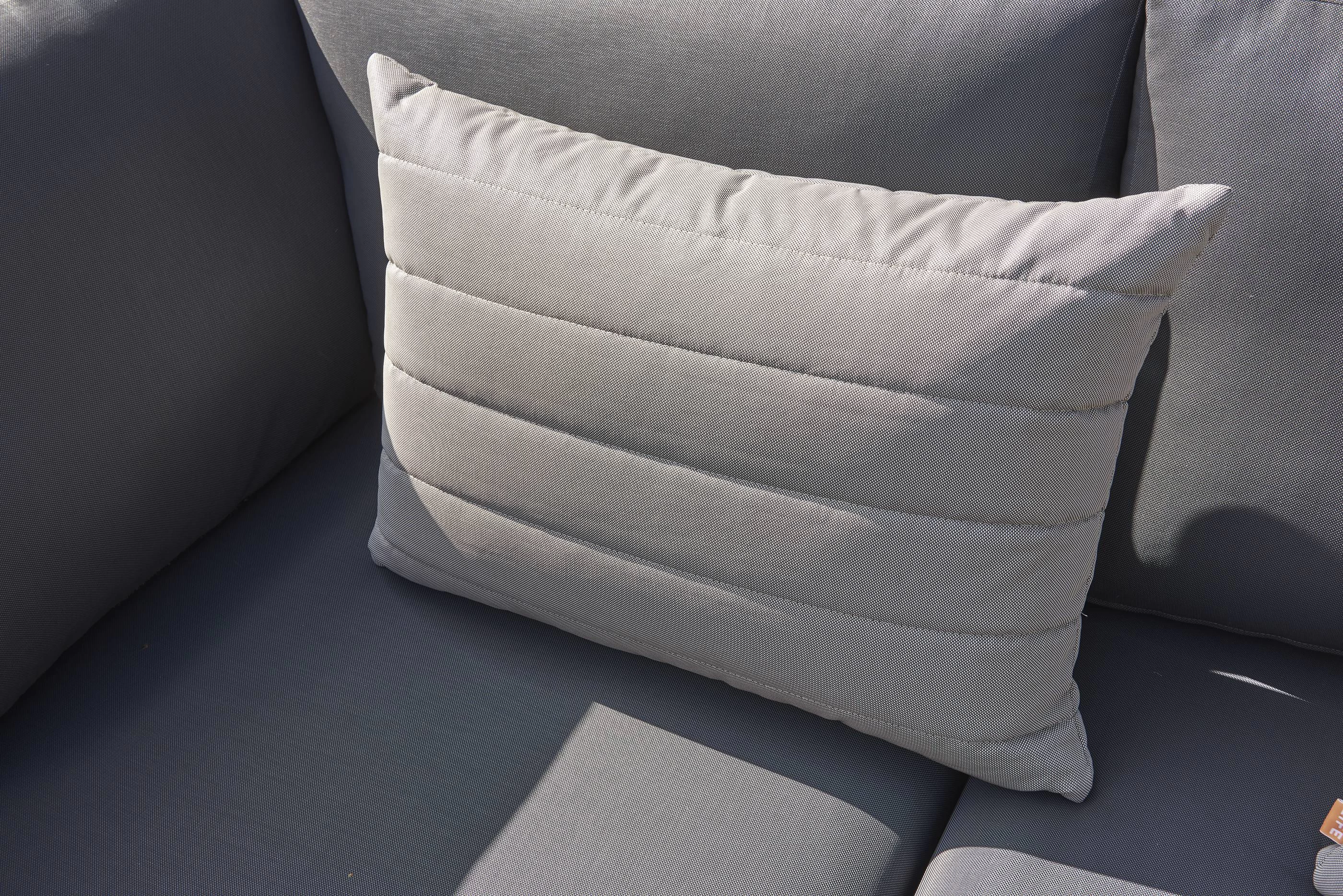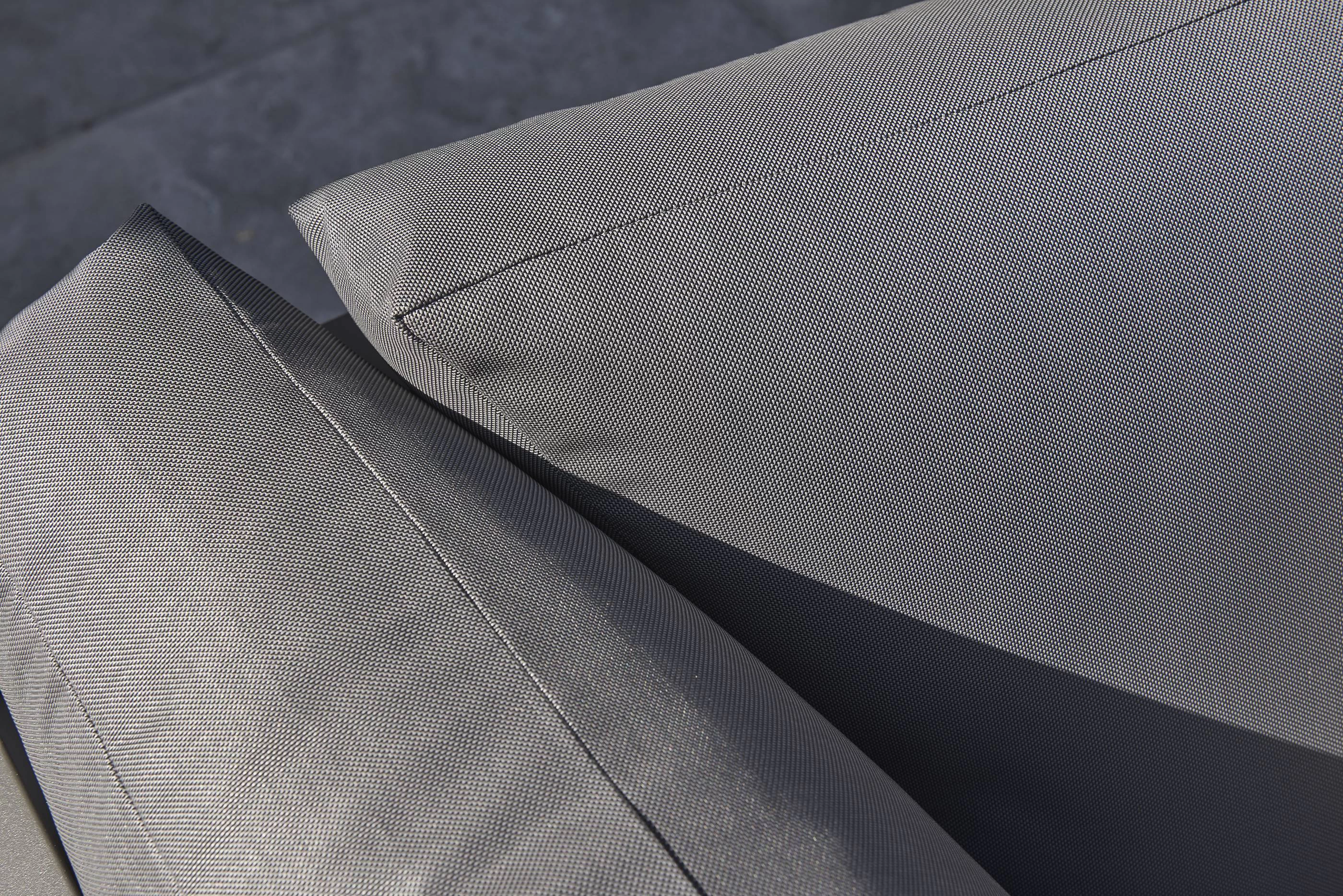 Unikalne poduszki AllWeather (grubość ok. 15-17 cm) z wysokim komfortem siedzenia są przystosowane do użytku na zewnątrz. Poduszki na siedziskach są bardziej "sprężyste", na oparciach miększe. Poduszki na siedziskach mają elementy antypoślizgowe od spodu oraz rzep wzdłuż oparcia - rzep łączy się z identycznym na boku poduszki oparciowej - powoduje to "trzymanie się" poduszek na konstrukcji mebli. Tkanina zastosowana na poduszkach jest wyjątkowo wytrzymała i zapewnia długotrwałe użytkowanie. Poduszki są łatwe w czyszczeniu, szybko schną, są wyposażone w zamek błyskawiczny, są odporne na warunki atmosferyczne, mają podwyższoną odporność na UV. Oczywiście warto chronić poduszki przed intensywnym słońcem - będziemy się wówczas ciszyć pięknym wyglądem przez wiele lat.