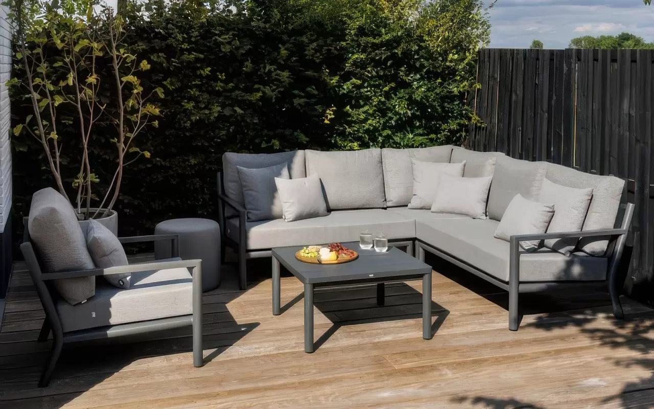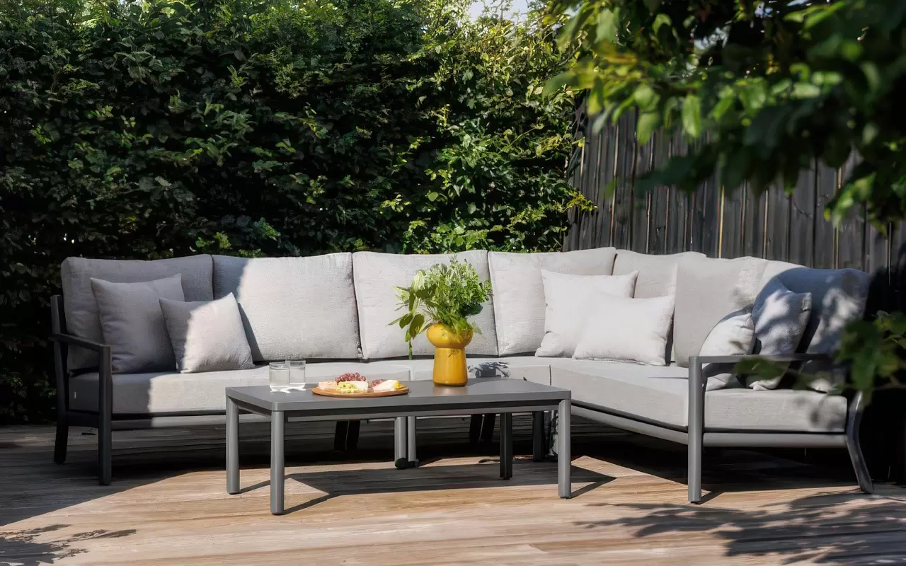 NUBA Zestaw wypoczynkowy narożny ogrodowy antracyt z poduszkami mist grey