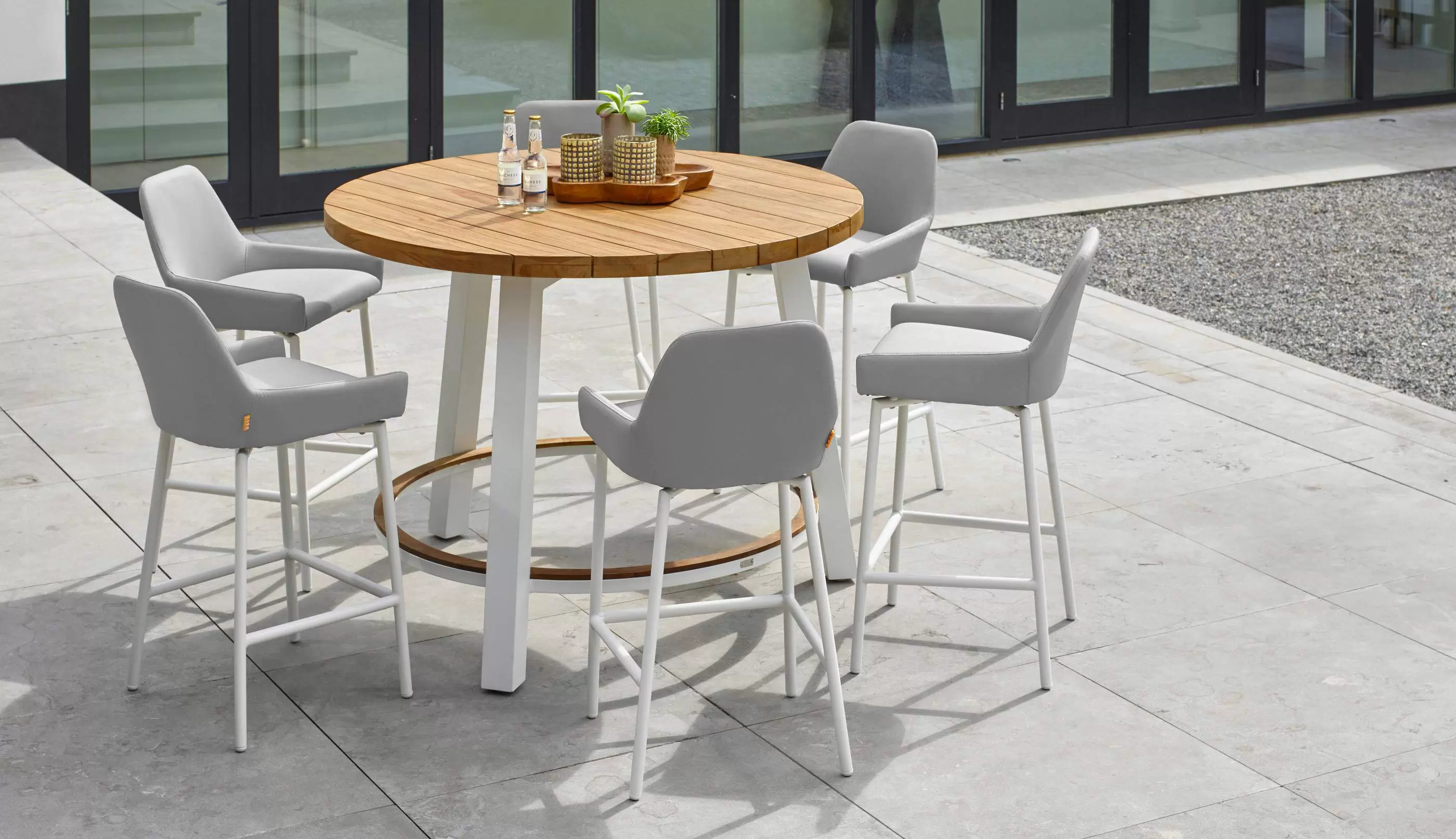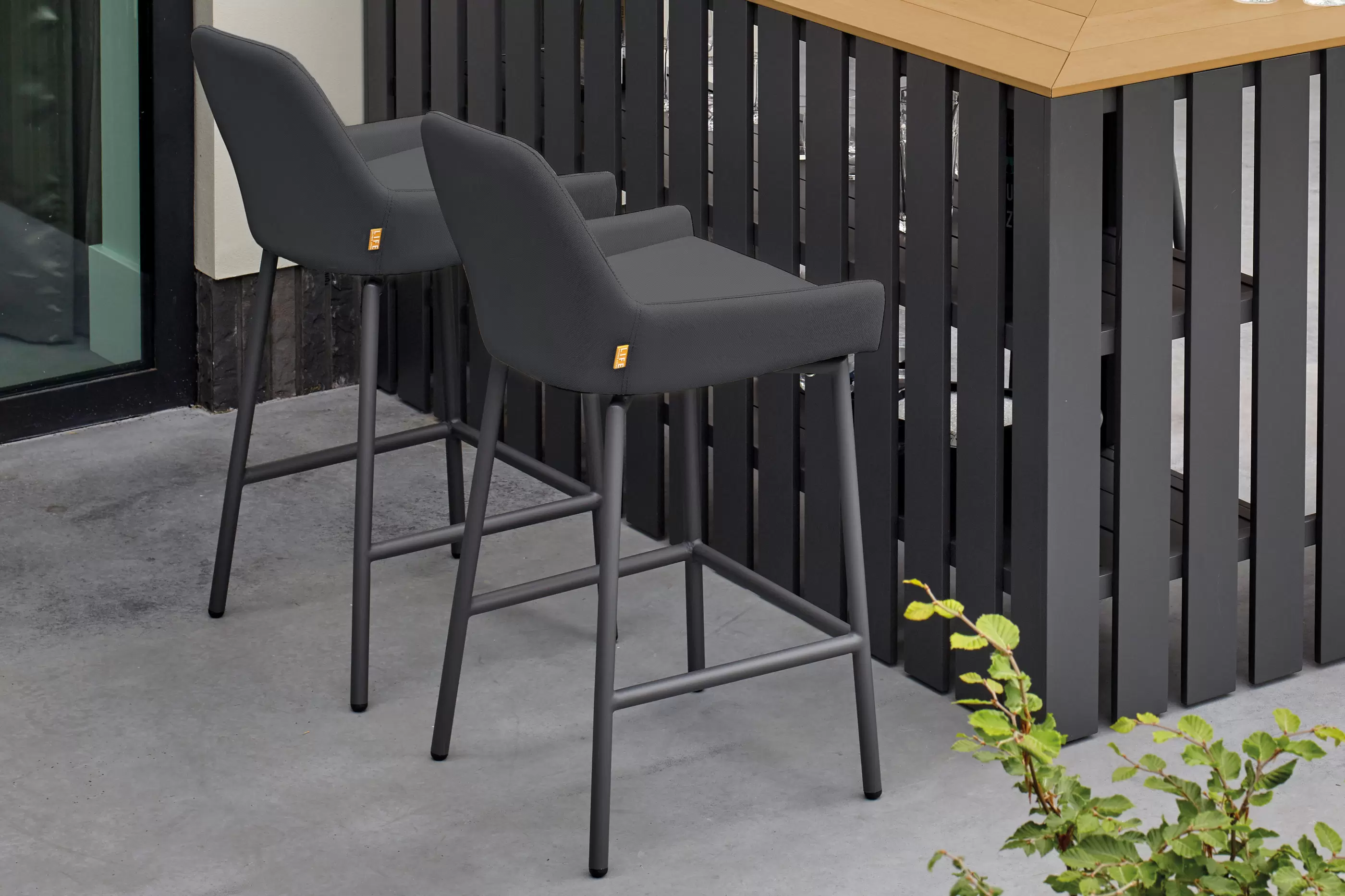 Stołek barowy ogrodowy z wygodnym siedziskiem z oparciem.