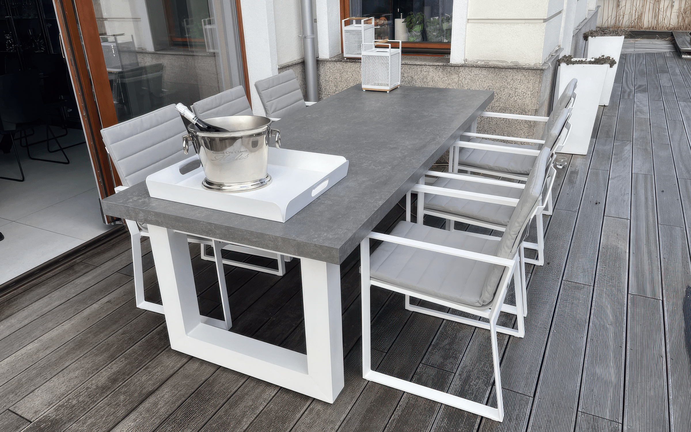 - 1x stół ogrodowy STELVIO (2 długości do wyboru) blat ceramiczny szary beton look