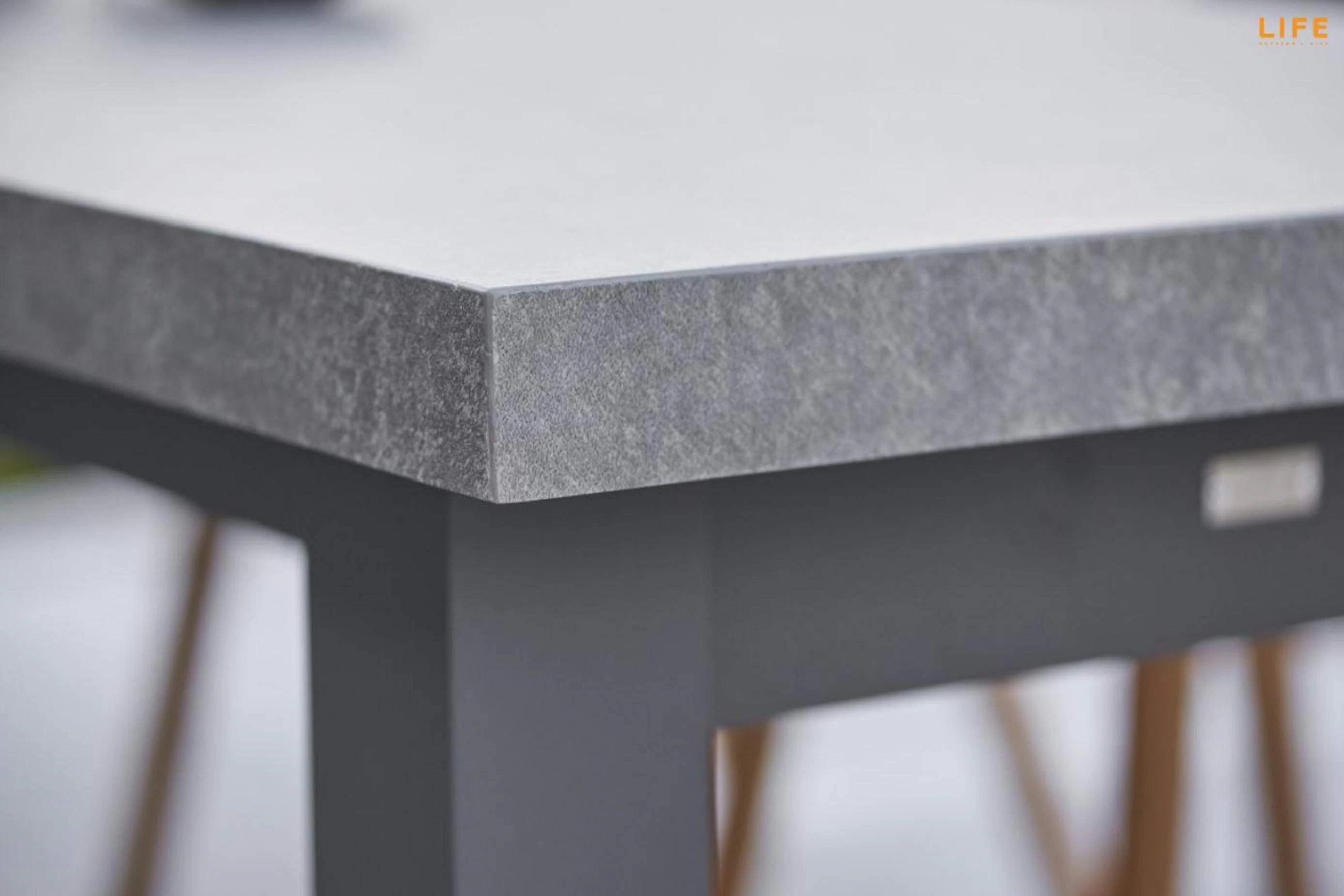 Solidny szary blat ceramiczny i elegancki wygląd aluminiowych nóg to wizytówka stołu ogrodowego STELVIO. Ceramika jest bardzo mocnym i odpornym na zarysowania materiałem, dzięki czemu jest bardzo łatwa w utrzymaniu. Blat ma robiącą wrażenie grubość 6 cm.