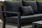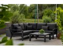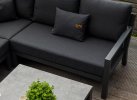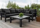 Uzupełnieniem wygody użytkowania kompletu narożnego Timber jest stolik kawowy 90x90 cm z blatem ceramicznym o wykończeniu beton look. Taki blat jest trwały (ceramika) i niewrażliwy na warunki atmosferyczne.
