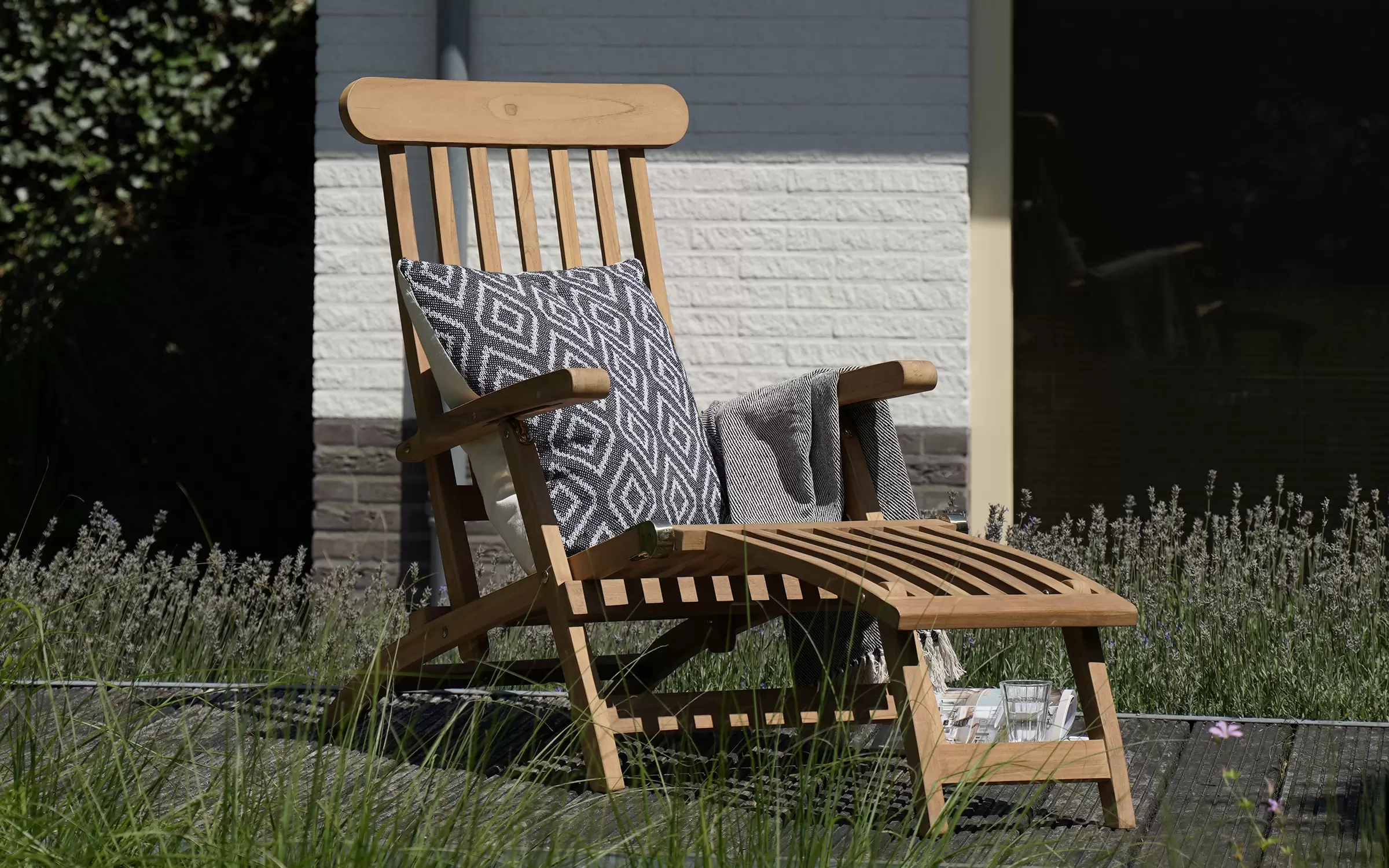 Fotel ogrodowy LOUNG teak z podnóżkiem