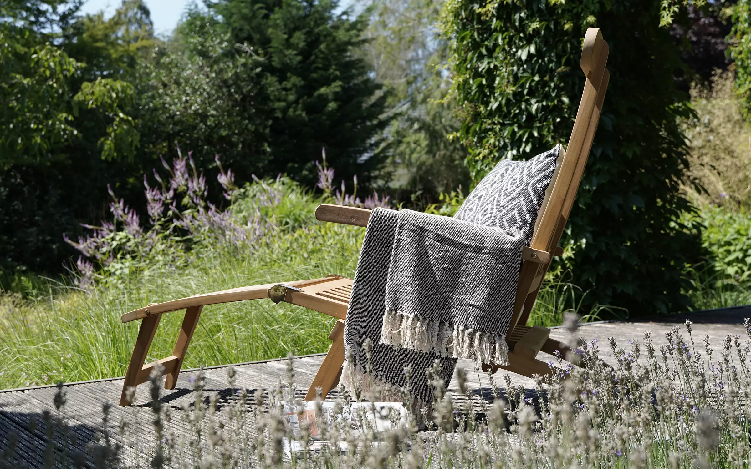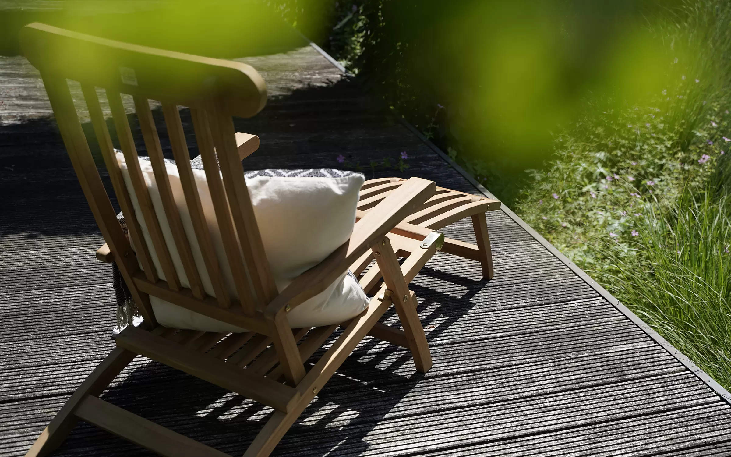 LOUNG to klasyczny fotel ogrodowy typu deckchair marki Lesli Living, wykonany z teaku klasy C. Naturalne wykończenie podkreśla piękno drewna, a solidna konstrukcja zapewnia trwałość i odporność na warunki atmosferyczne. Dzięki wygodnej wysokości siedziska (35 cm) oraz ergonomicznej wysokości podłokietników (60 cm) fotel gwarantuje komfortowy wypoczynek. Wyposażony w podnóżek, idealnie sprawdzi się na tarasie, w ogrodzie lub przy basenie.