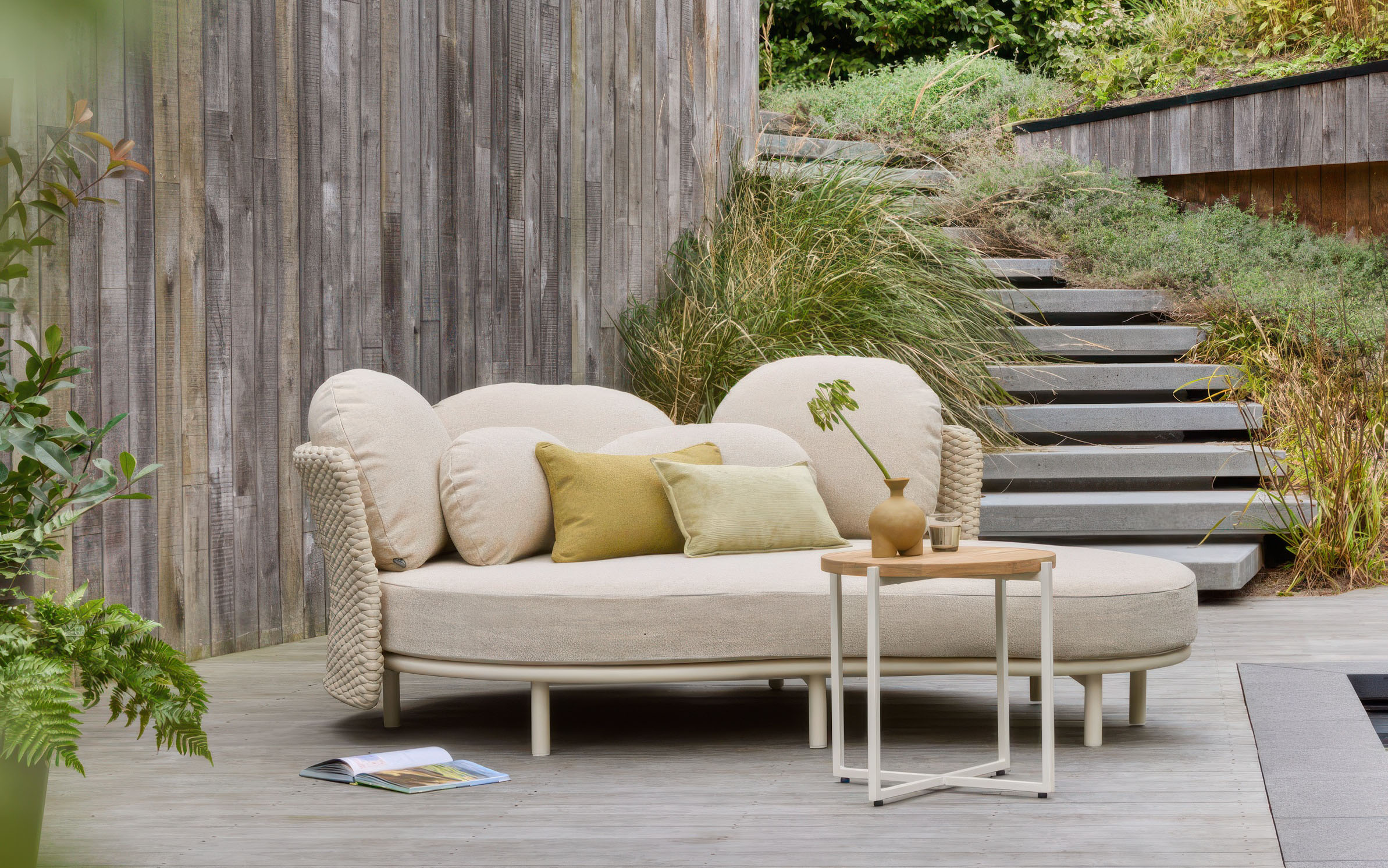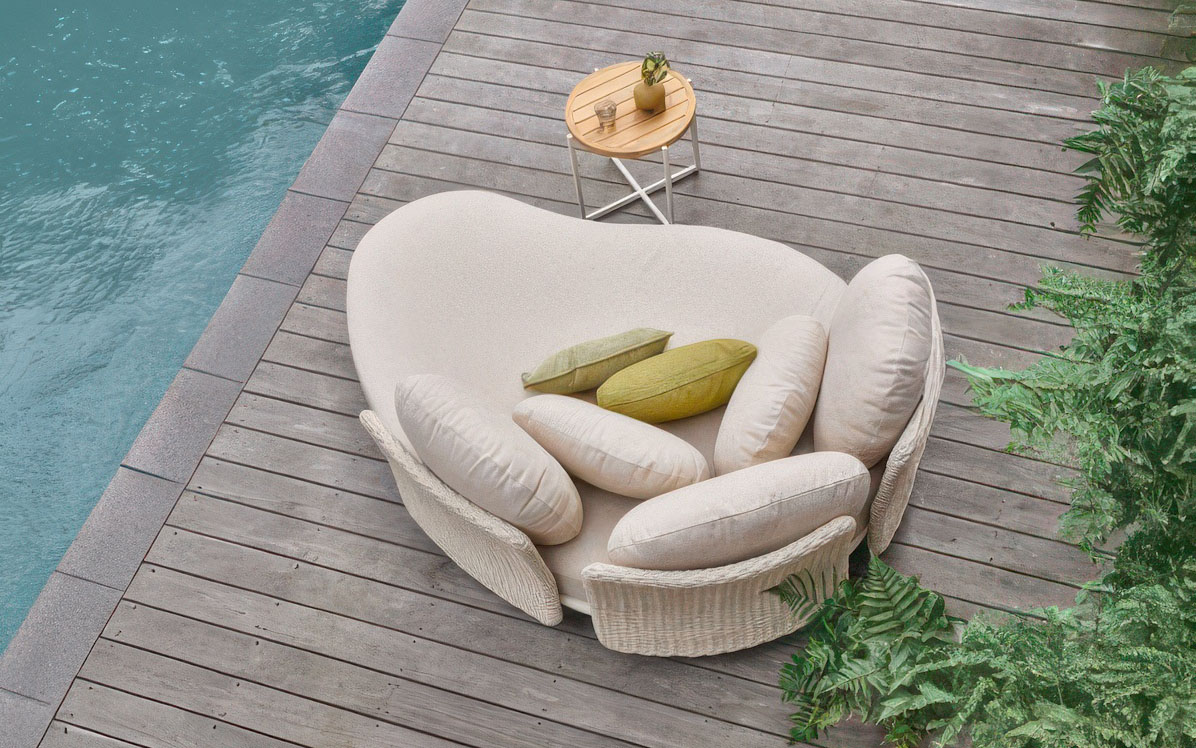Model CHILL OUT DAYBED to ekskluzywna leżanka ogrodowa dla dwóch osób, zaprojektowana z myślą o wypoczynku na tarasie lub w ogrodzie. Organiczna forma, aluminiowa konstrukcja i poduszki BEE WETT® zapewniają komfort i styl w każdej aranżacji.