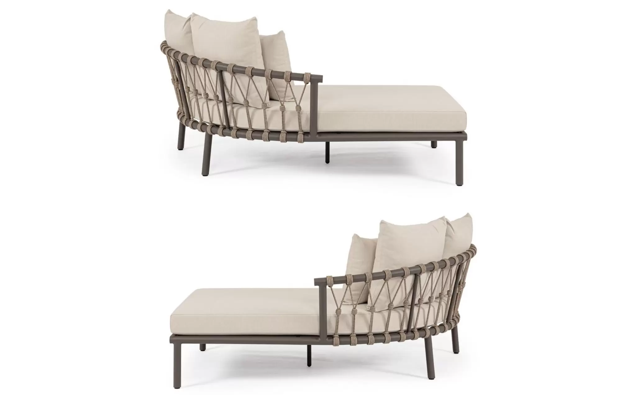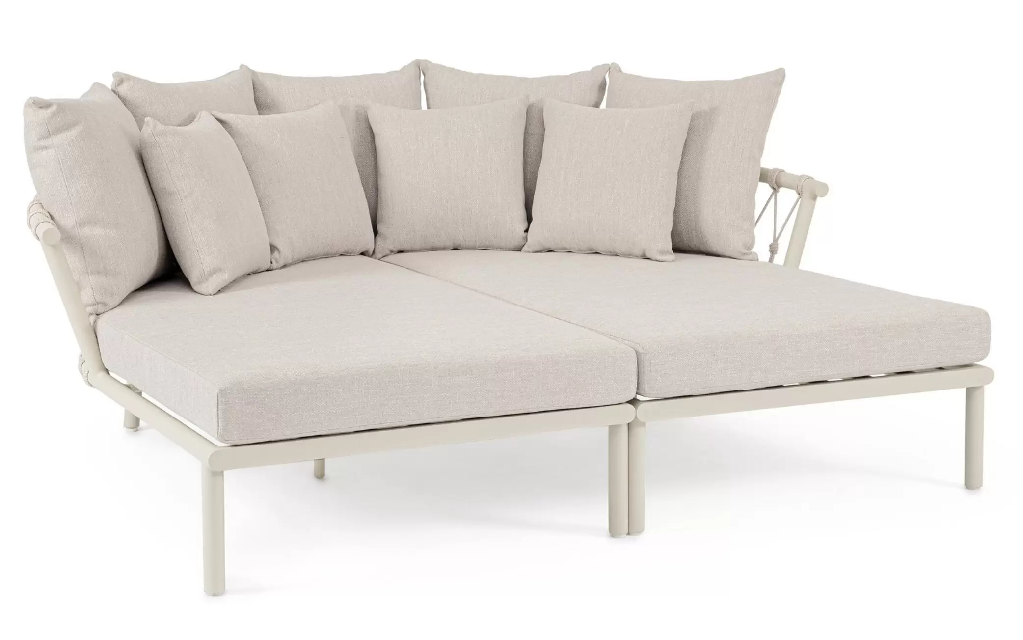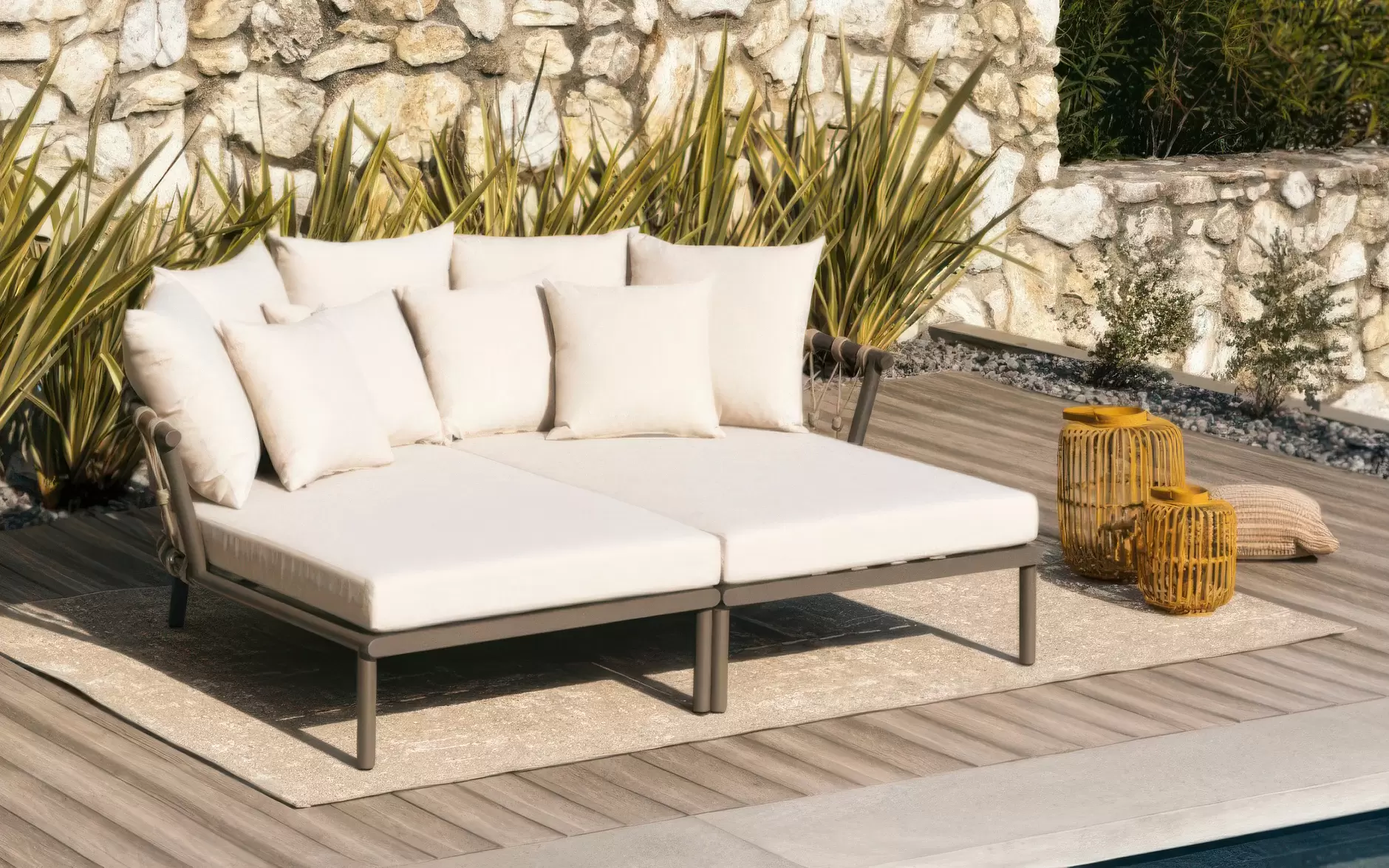 LANAI Łóżko ogrodowe podwójne aluminium lina poduszki modułowe