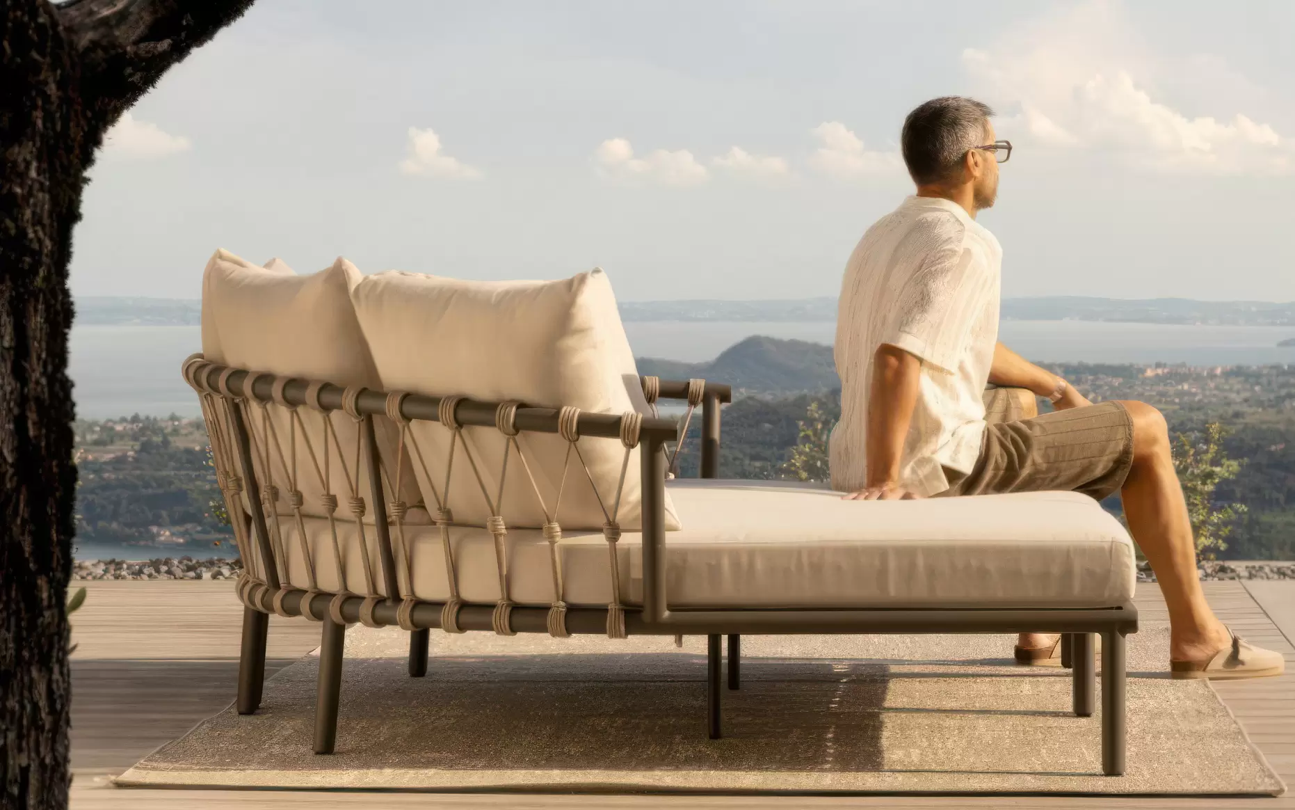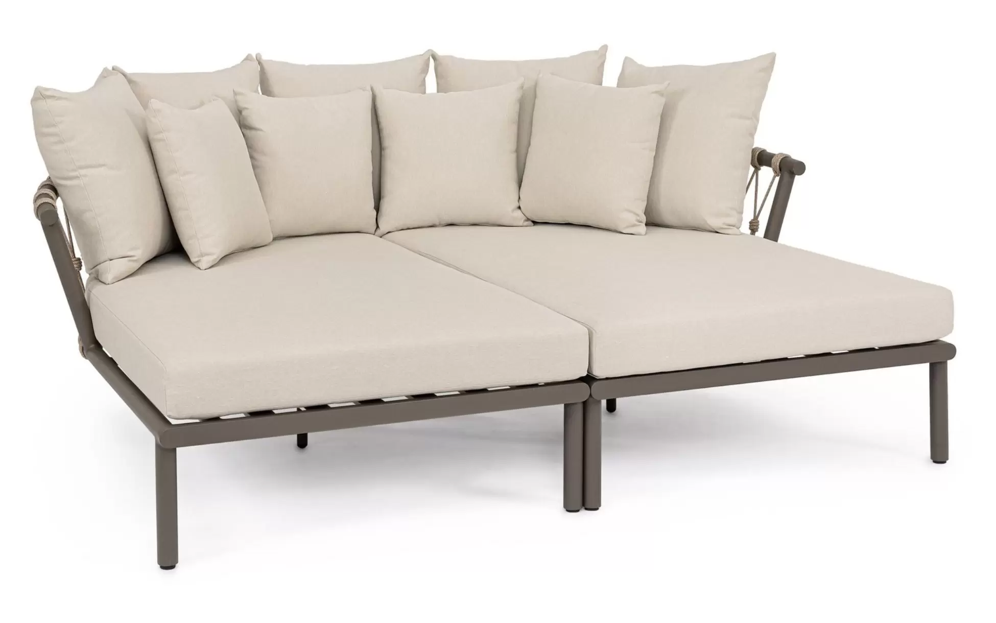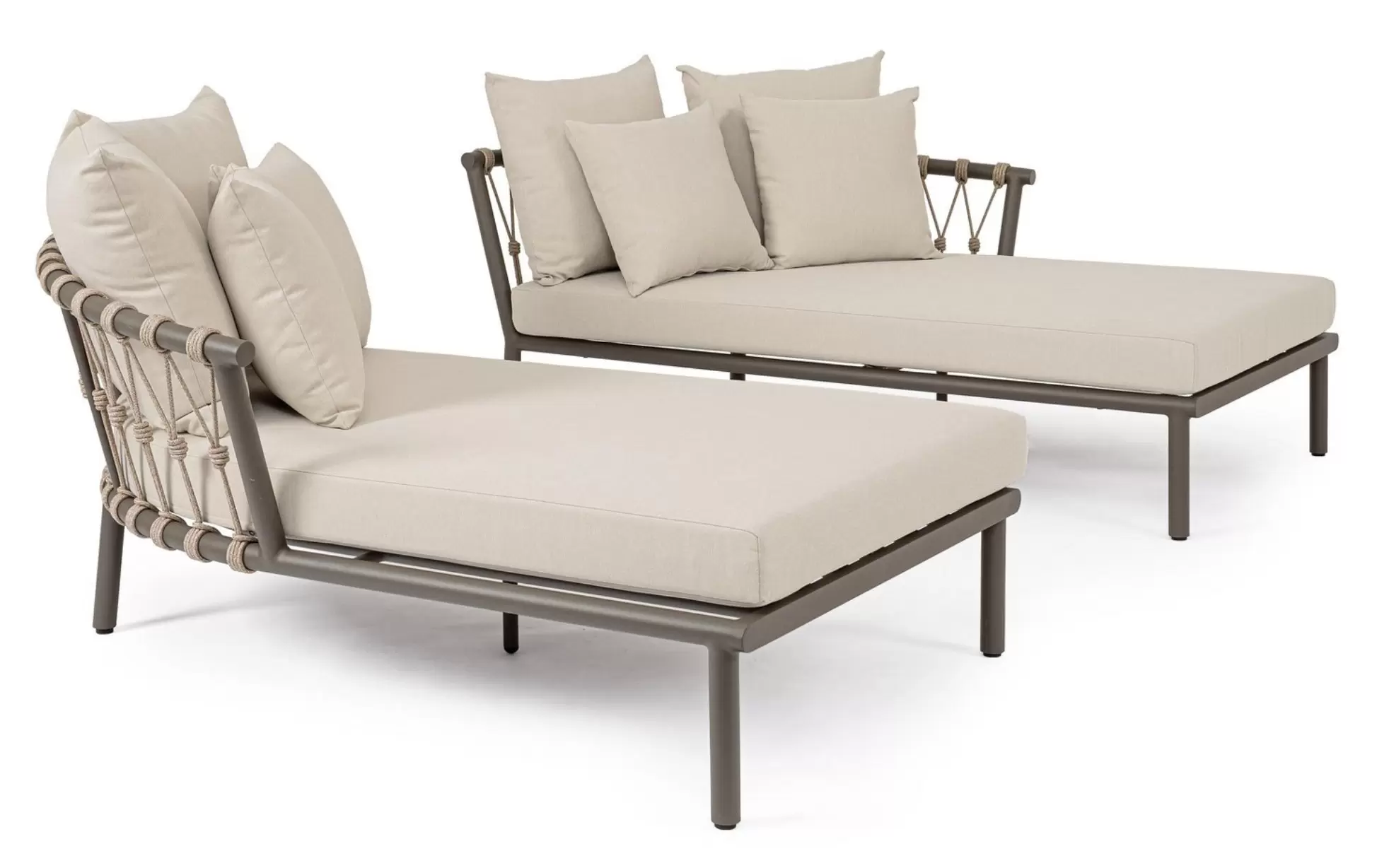 LANAI Łóżko ogrodowe podwójne aluminium lina poduszki modułowe