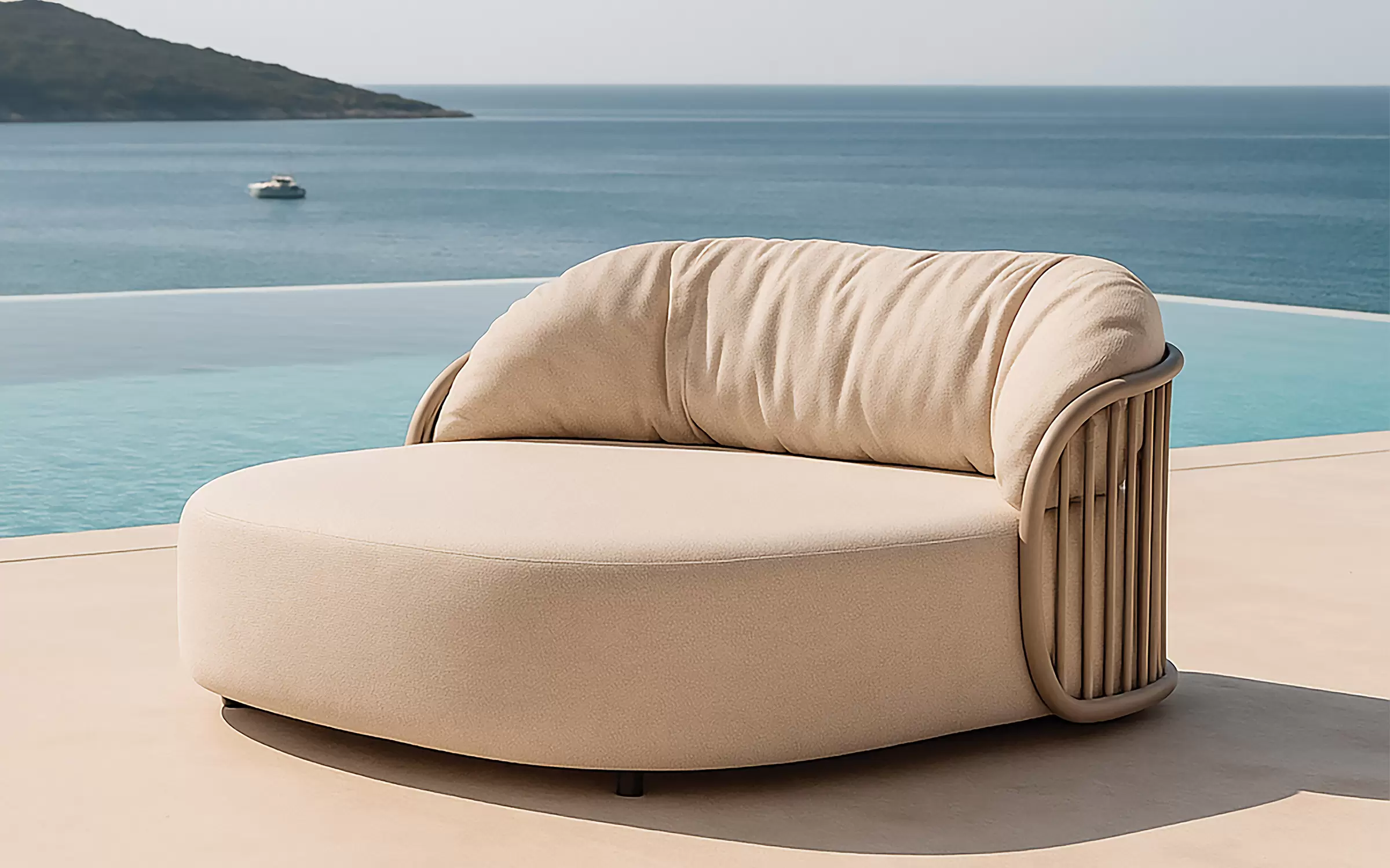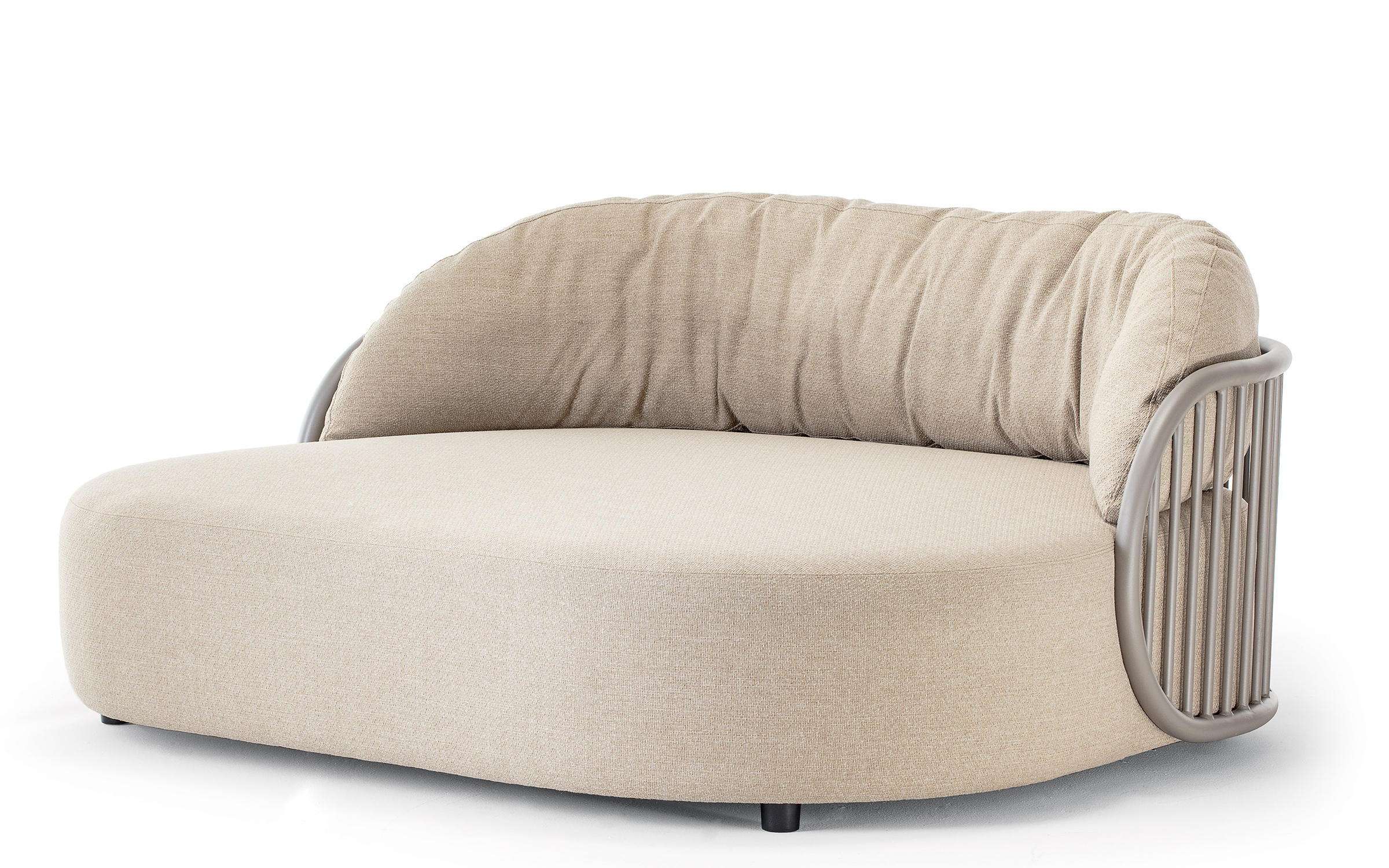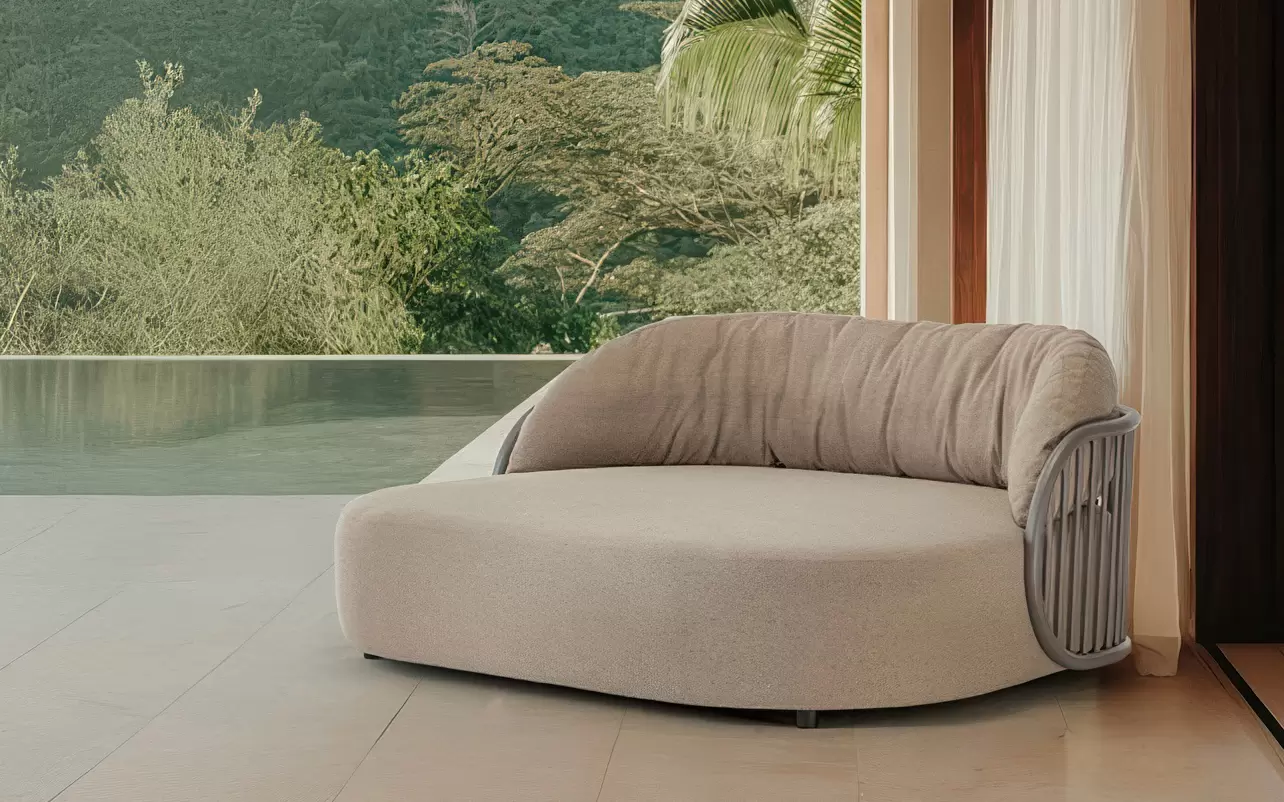 LOUNGE BED Double to dwuosobowe łóżko ogrodowe zaprojektowane z myślą o całorocznym użytkowaniu na zewnątrz. Stabilna konstrukcja wykonana jest z aluminium malowanego proszkowo, które jest lekkie, odporne na korozję i łatwe w utrzymaniu.