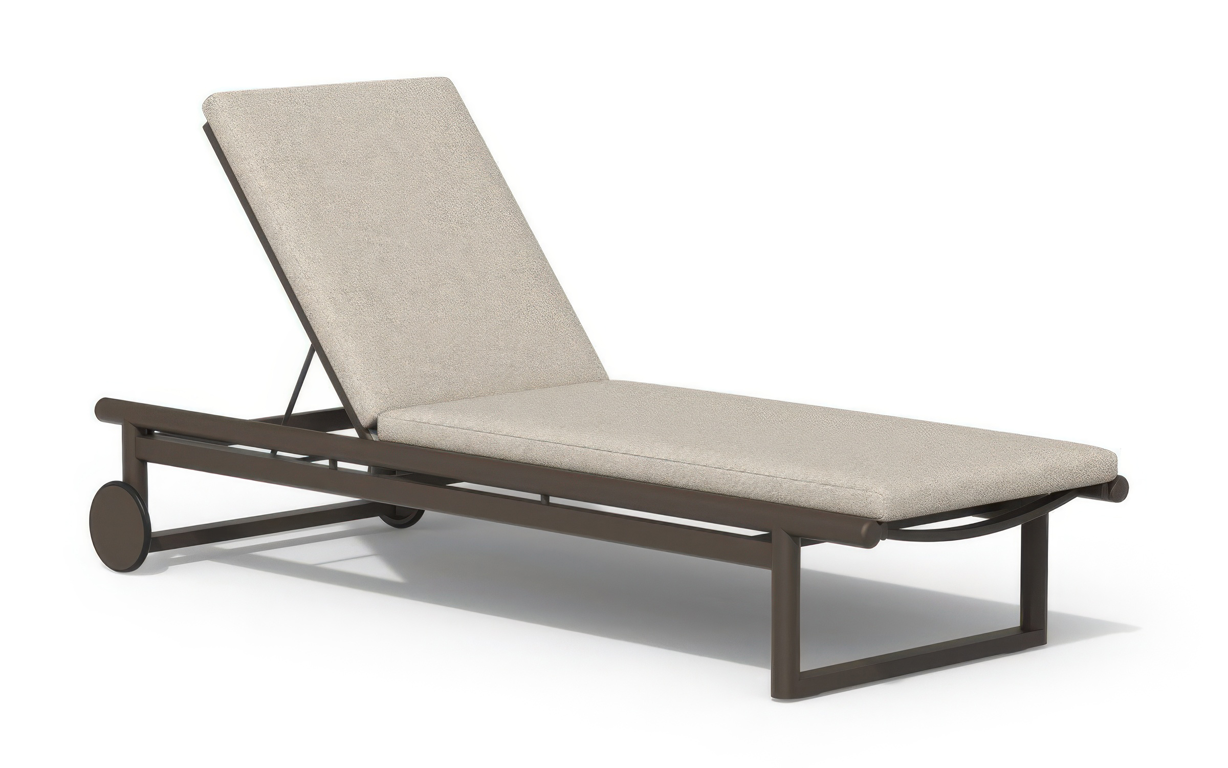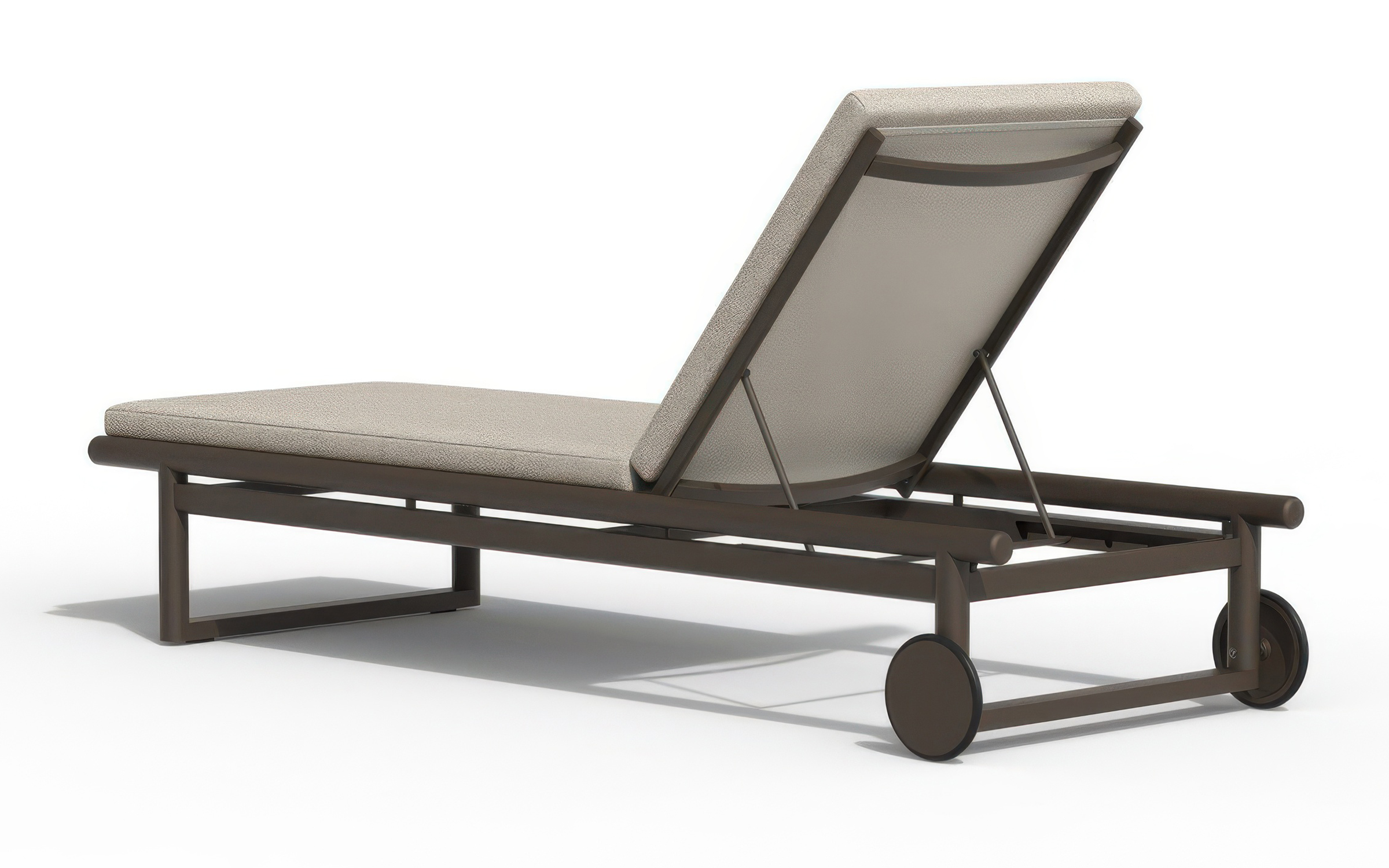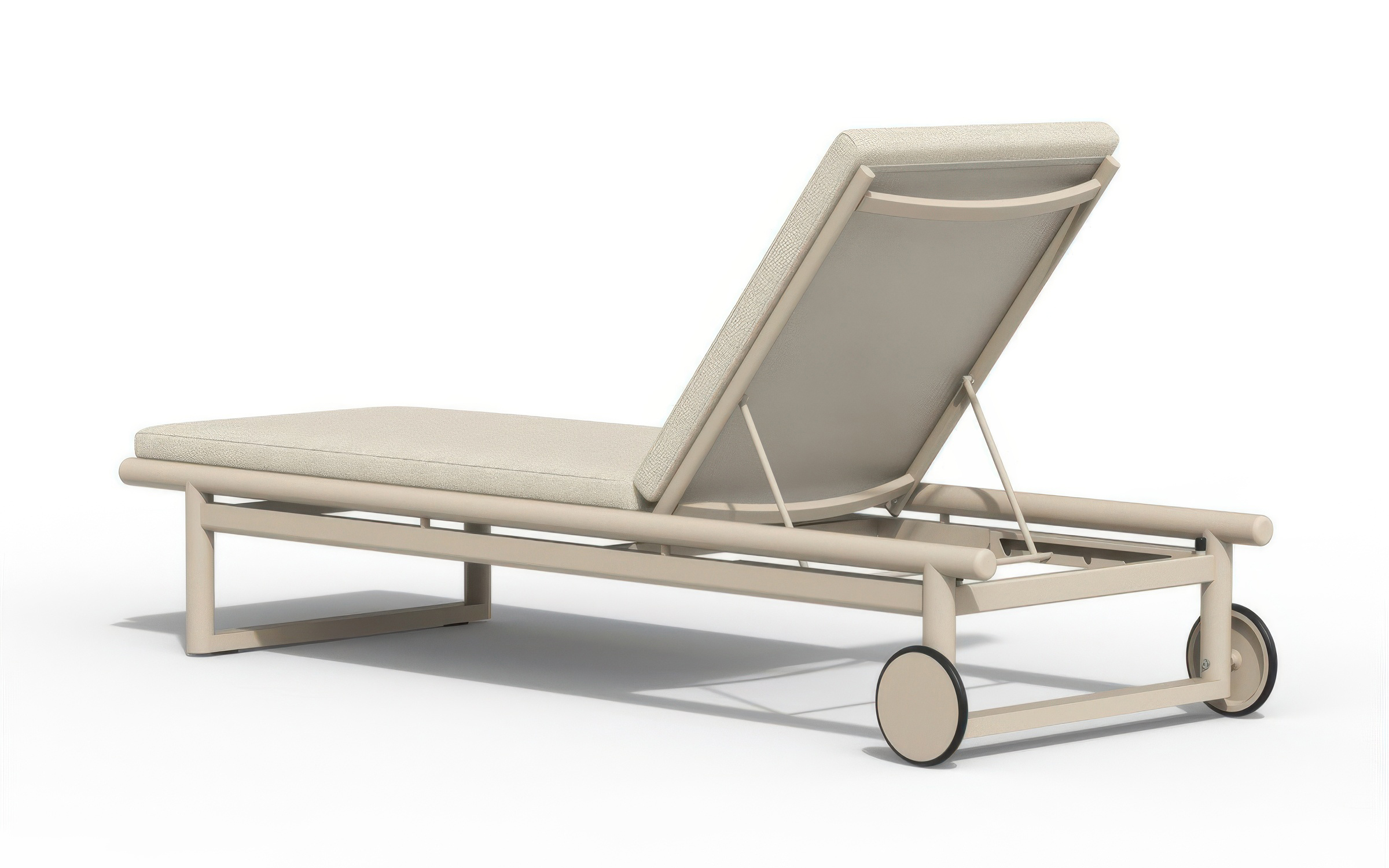 Funkcjonalność tego modelu definiuje wielostopniowa regulacja oparcia oraz zintegrowane kółka transportowe, ułatwiające mobilność na twardym podłożu i trawie. Aluminiowa rama jest w pełni odporna na korozję oraz skrajne warunki atmosferyczne, a spójne wykończenie pozwala na bezproblemowe łączenie leżaka z sofą lub fotelem z tej samej linii produktowej. Komfort wypoczynku podnosi materac z technicznej tkaniny Olefin z wypełnieniem z pianki szybkoschnącej (fast dry foam), co jest kluczowe przy kontakcie z wodą i wilgocią. Materiał ten charakteryzuje się wysoką odpornością na promieniowanie UV i zabrudzenia, a dzięki zdejmowanemu pokrowcowi, czyszczenie mebla jest szybkie i bezproblemowe.