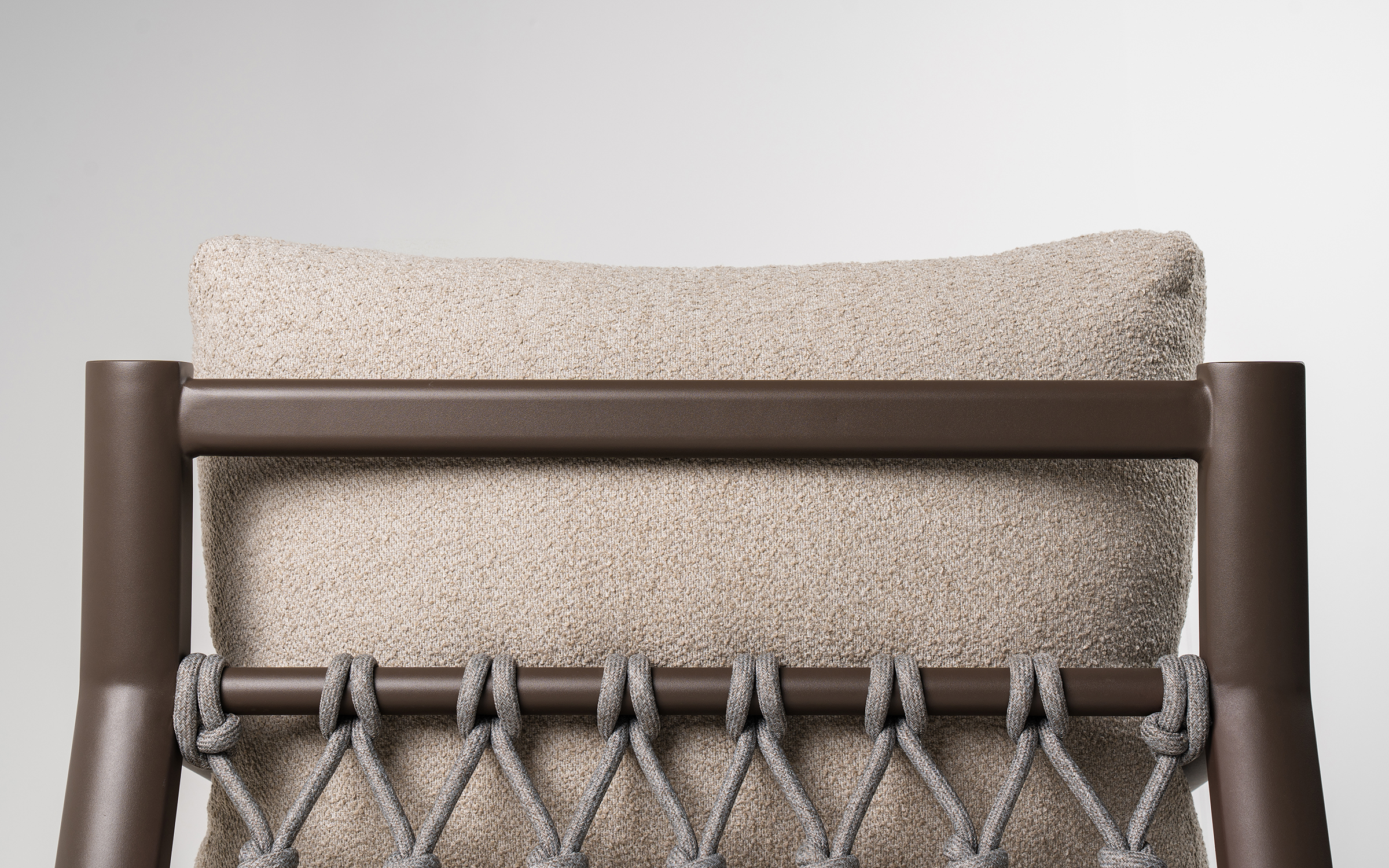 Lina polipropylenowa (Rope) Oparcia mebli zostały wykończone dekoracyjnym splotem z liny polipropylenowej. Jest to materiał syntetyczny nowej generacji, który charakteryzuje się wysoką gęstością i odpornością na uszkodzenia mechaniczne. Lina jest hydrofobowa (nie chłonie wody) oraz odporna na pleśń i grzyby. Specjalna stabilizacja UV sprawia, że plecionka nie kruszeje na słońcu i nie traci elastyczności, zapewniając stały komfort podparcia.