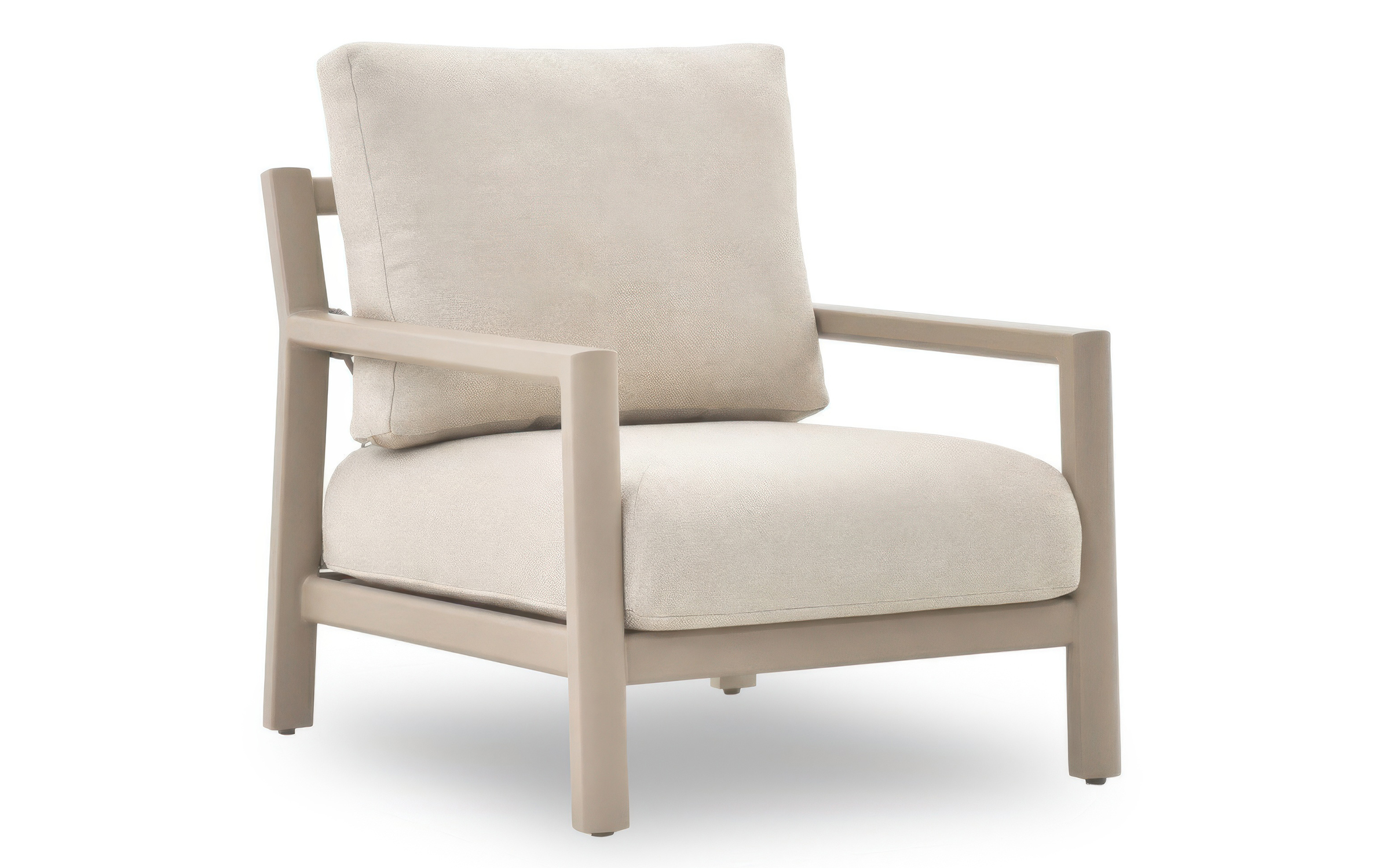 Tkanina Olefin z wykończeniem Bouclé W poduszkach zastosowano wysokogatunkowe włókno Olefin, które jest standardem w segmencie mebli outdoorowych premium. Należy podkreślić, że Olefin to nazwa wytrzymałego włókna o doskonałych parametrach technicznych, natomiast Bouclé to specyficzny sposób tkania i wykończenia powierzchni. Ten pętelkowy splot nadaje tkaninie unikalną, miękką teksturę i trójwymiarowy wygląd, przypominający luksusowe meble salonowe. Tkanina ta jest szybkoschnąca, oddychająca i posiada ekstremalnie wysoką odporność na blaknięcie wywołane słońcem.