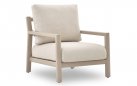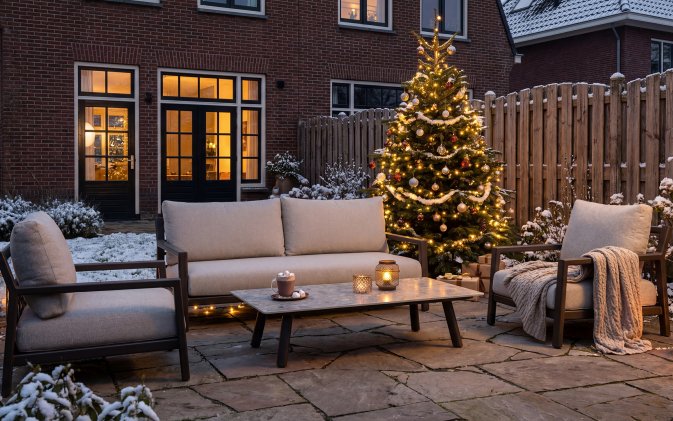 Poduszki wykonano z pianki szybkoschnącej i obszyto tkaniną Olefin z wykończeniem boucle. Tkanina jest odporna na promieniowanie UV, zabrudzenia i wilgoć, co czyni zestaw idealnym do użytku zewnętrznego.