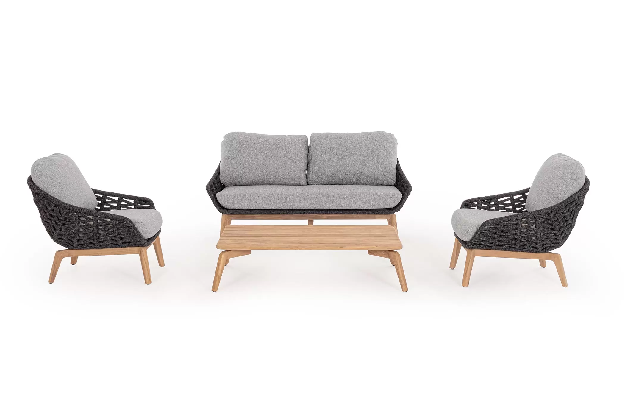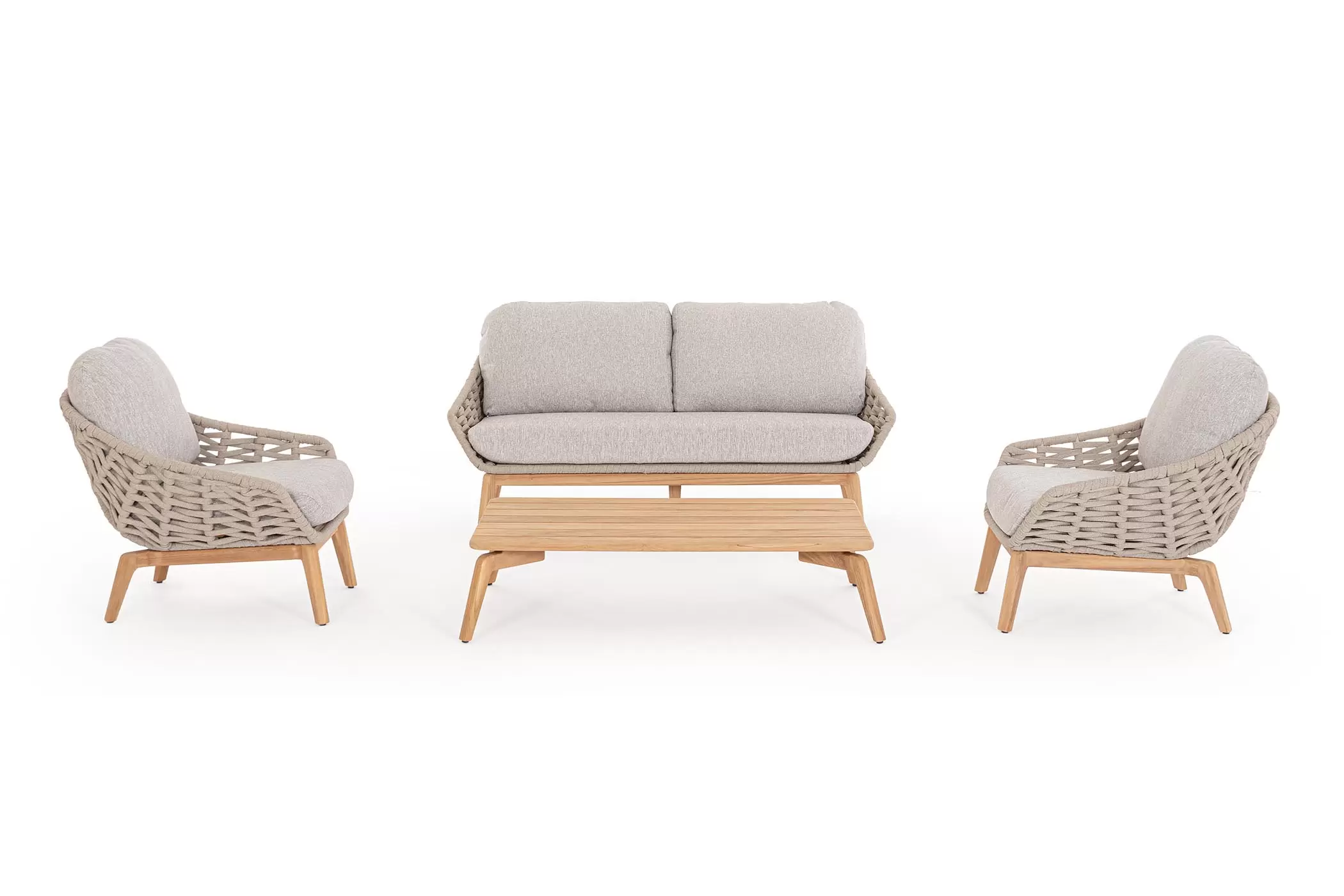 Stolik ogrodowy z drewna teakowego pasujący do kolekcji mebli ogrodowych Tamires Bizzotto.
