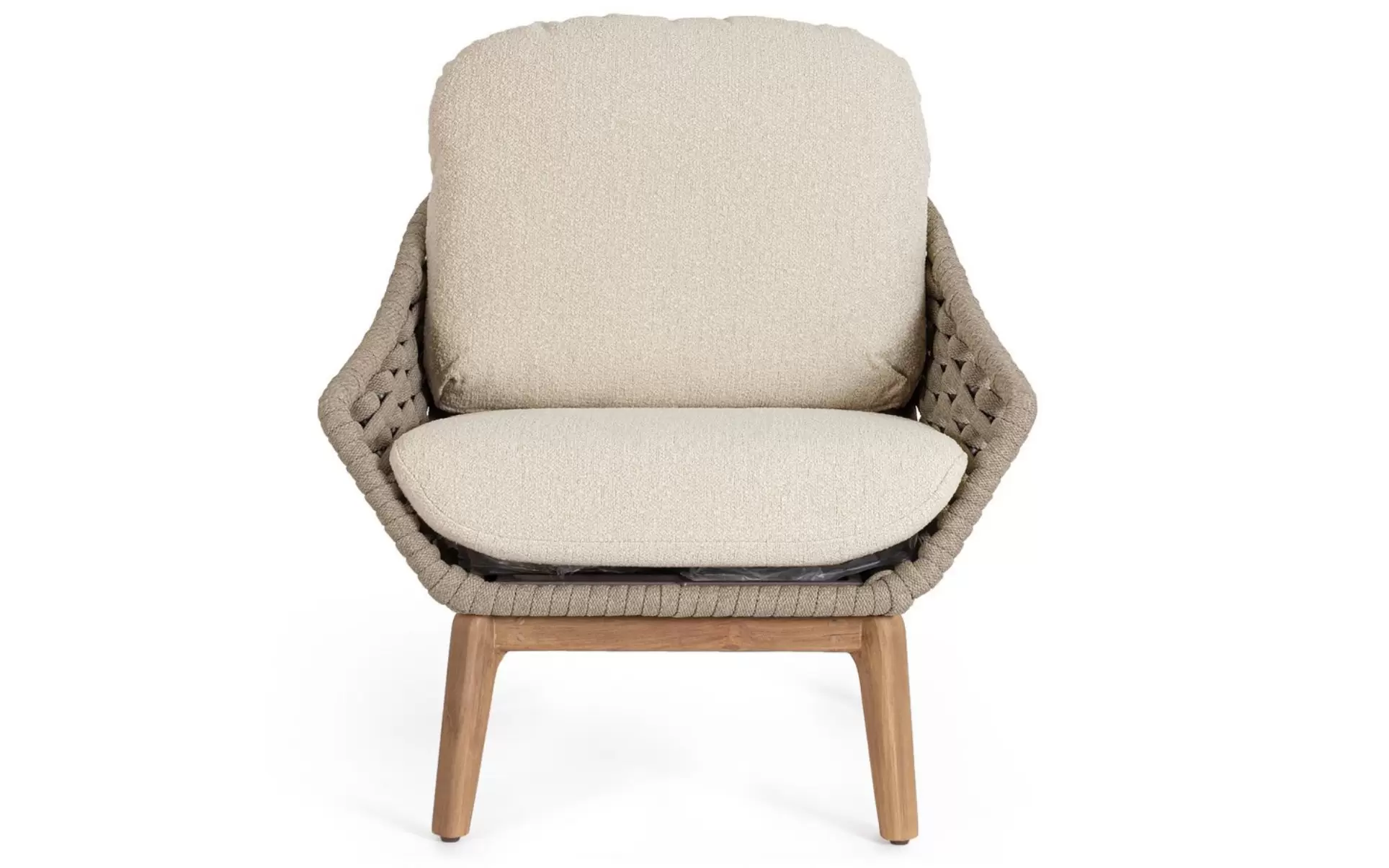 Fotel ogrodowy z podstawą teak / lina polipropylenowa TAMIRES Bizzotto poduszki Olefin