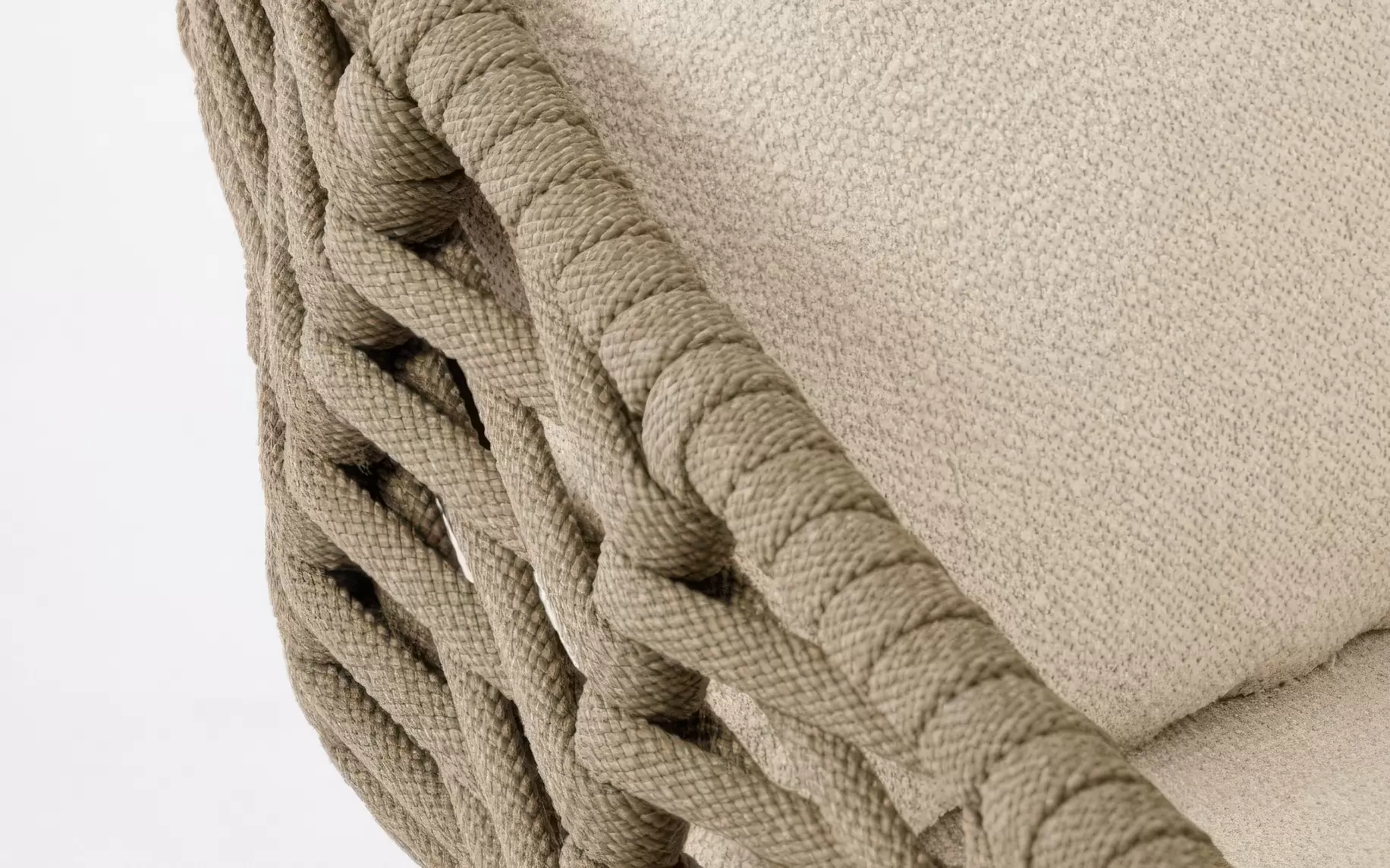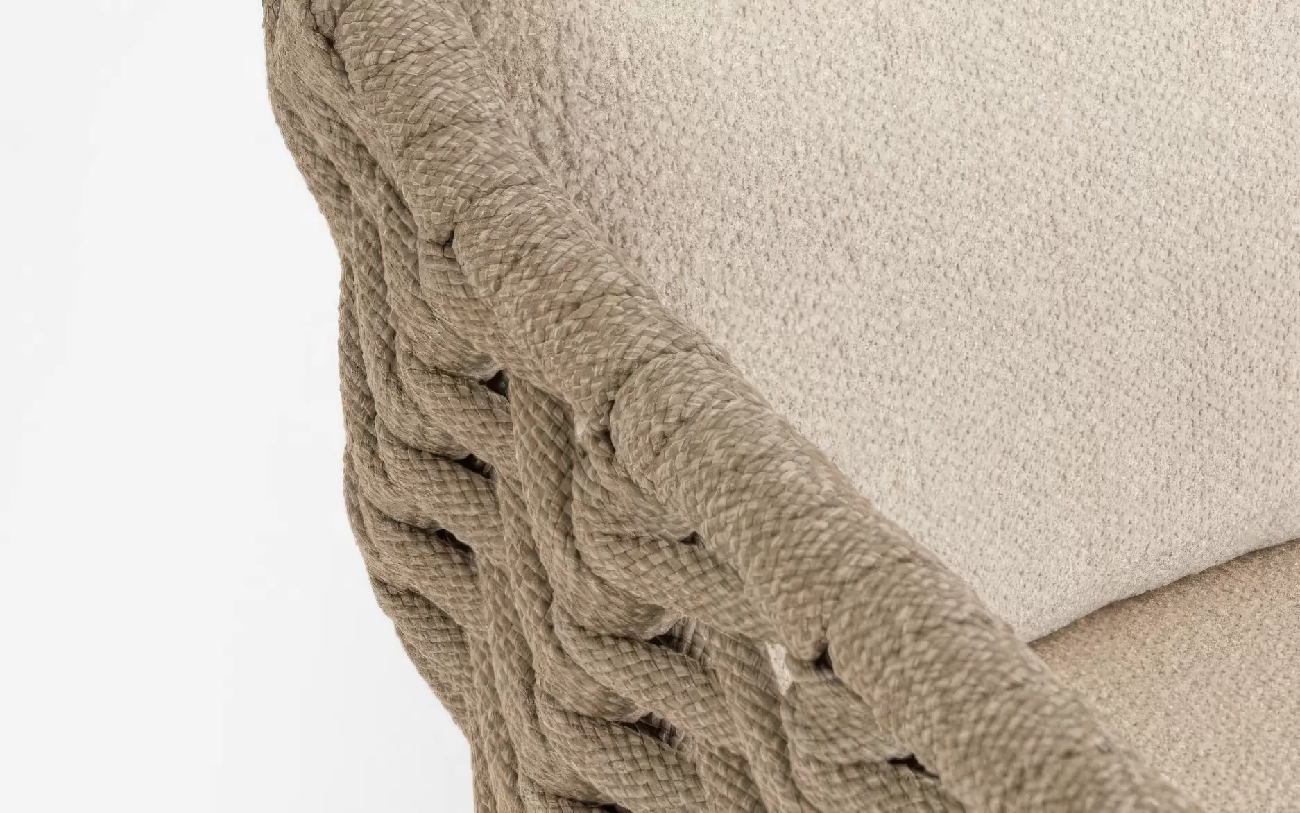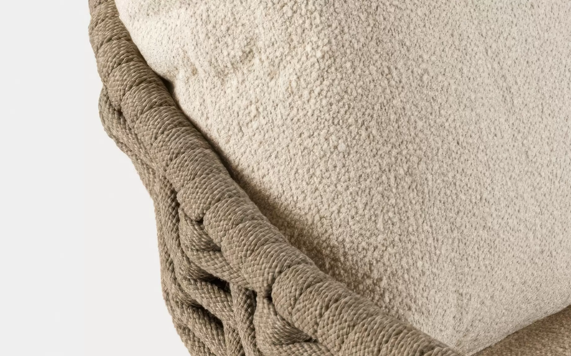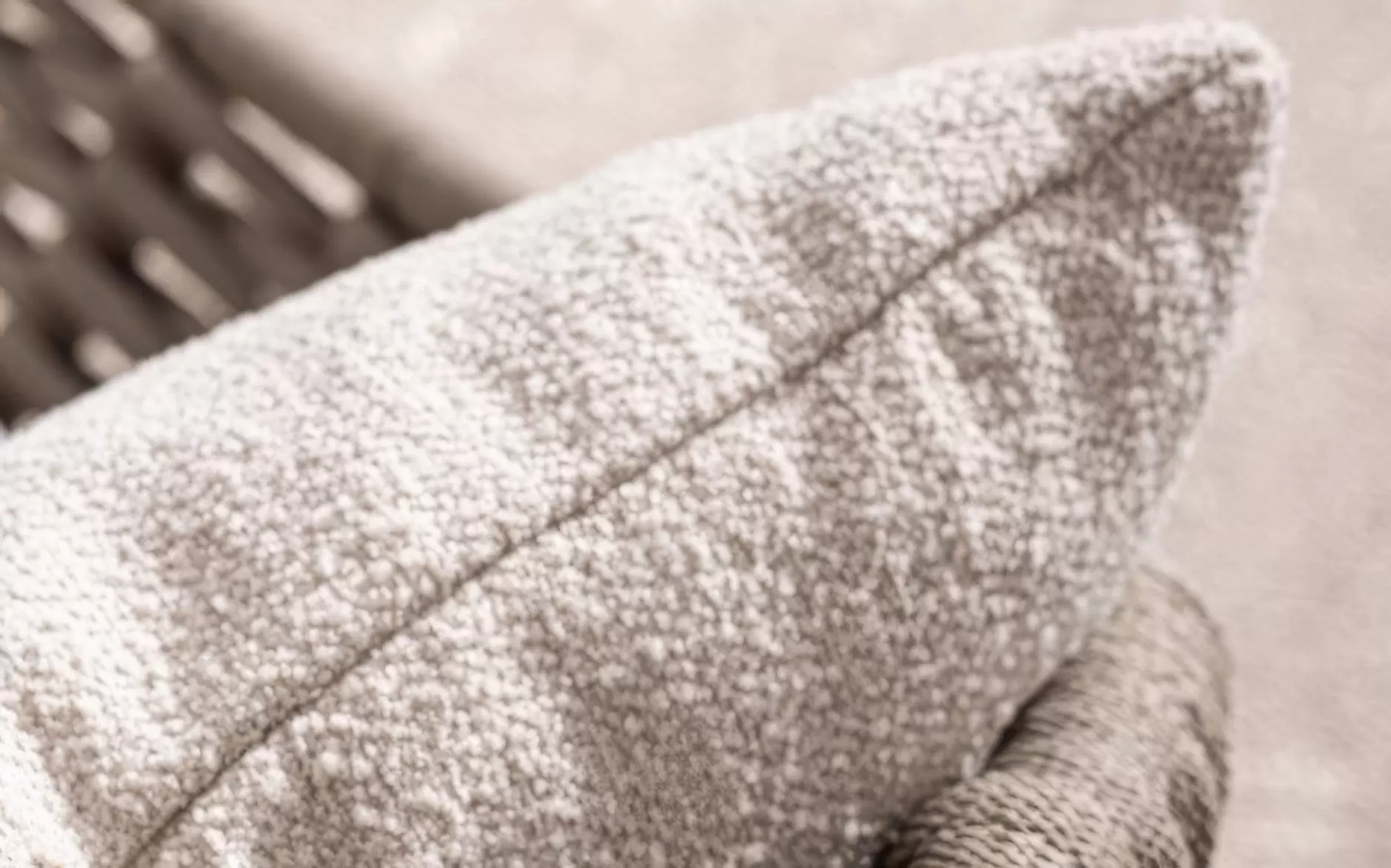 Przy kolorze taupe poduszki ze zdejmowaną poszewką do użytku zewnętrznego z materiału olefin wykończone w stylu boucle.