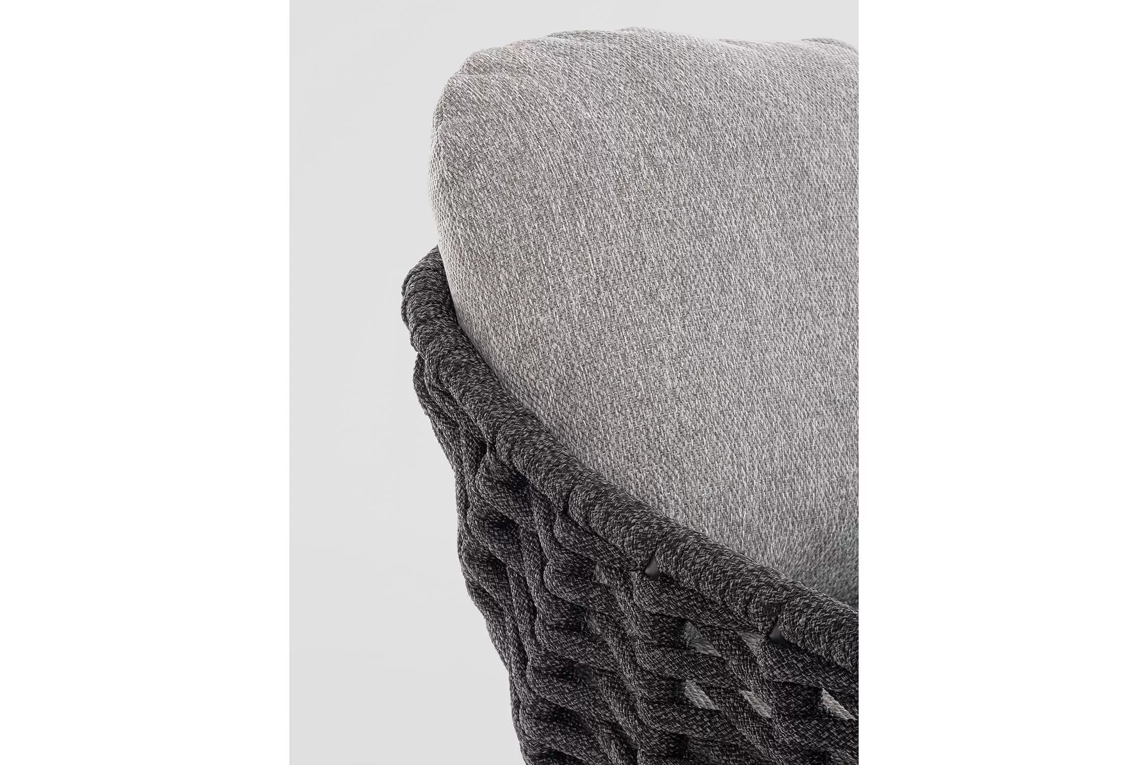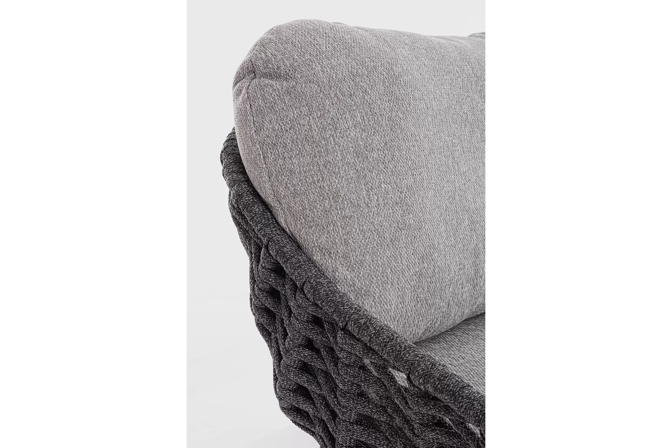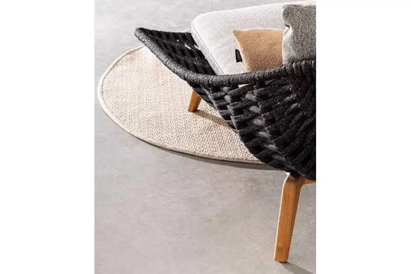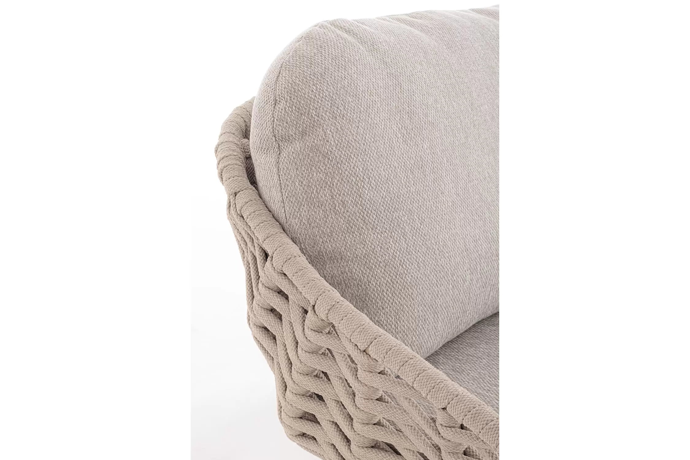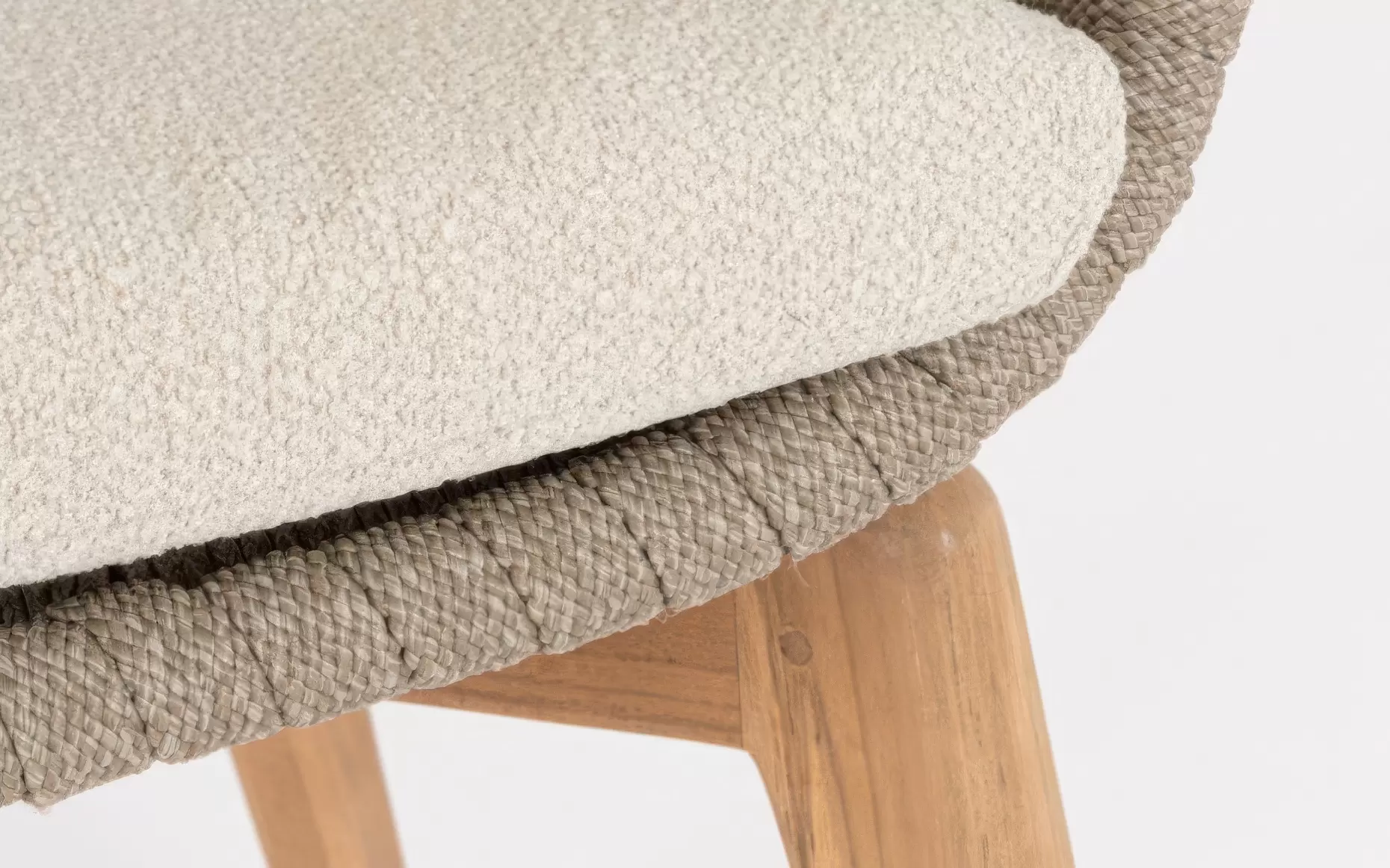 Plecionka z liny polipropylenowej – dekoracyjny oplot wykonany z wytrzymałych włókien syntetycznych, który nadaje meblom rzemieślniczego stylu. Lina jest w pełni odporna na promieniowanie UV oraz wilgoć, dzięki czemu nie rozciąga się, nie płowieje na słońcu i pozostaje sprężysta, oferując komfortowe wsparcie dla pleców przez wiele sezonów.