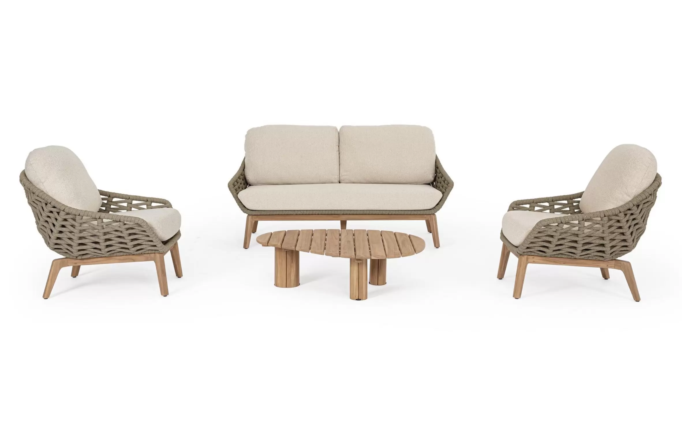 Nowoczesne meble ogrodowe premium teakową / lina polipropylenowa TAMIRES Bizzotto poduszki Olefin