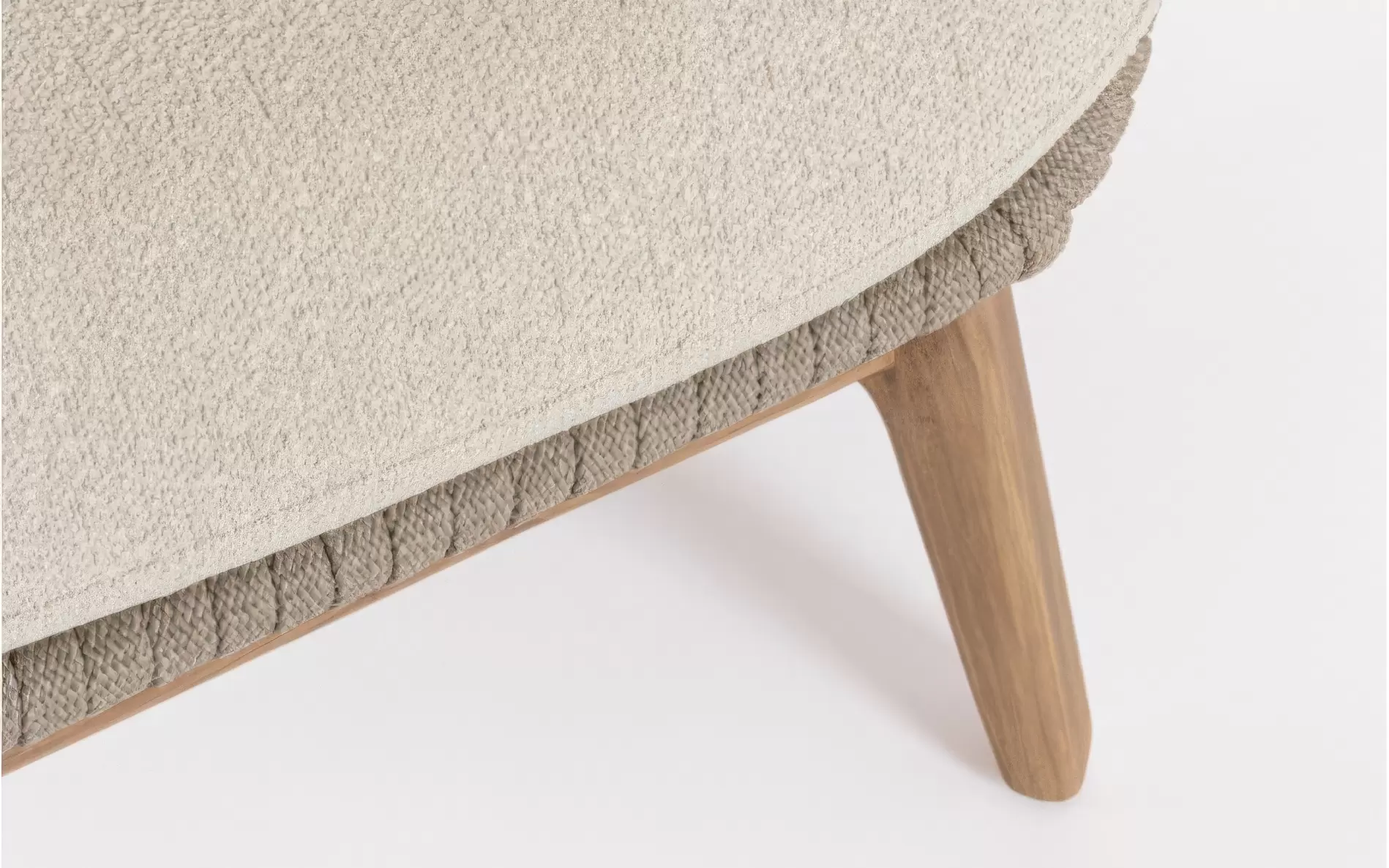 Tkanina Sunproof Olefin z efektem boucle – zaawansowany materiał techniczny klasy premium, który łączy teksturę luksusowej dzianiny boucle z ekstremalną wytrzymałością outdoorową. Włókna te są hydrofobowe i odporne na blaknięcie, co sprawia, że woda spływa po powierzchni, a kolor pozostaje nasycony nawet po latach ekspozycji na słońce. System zdejmowanych pokrowców ułatwia pielęgnację i odświeżanie zestawu.