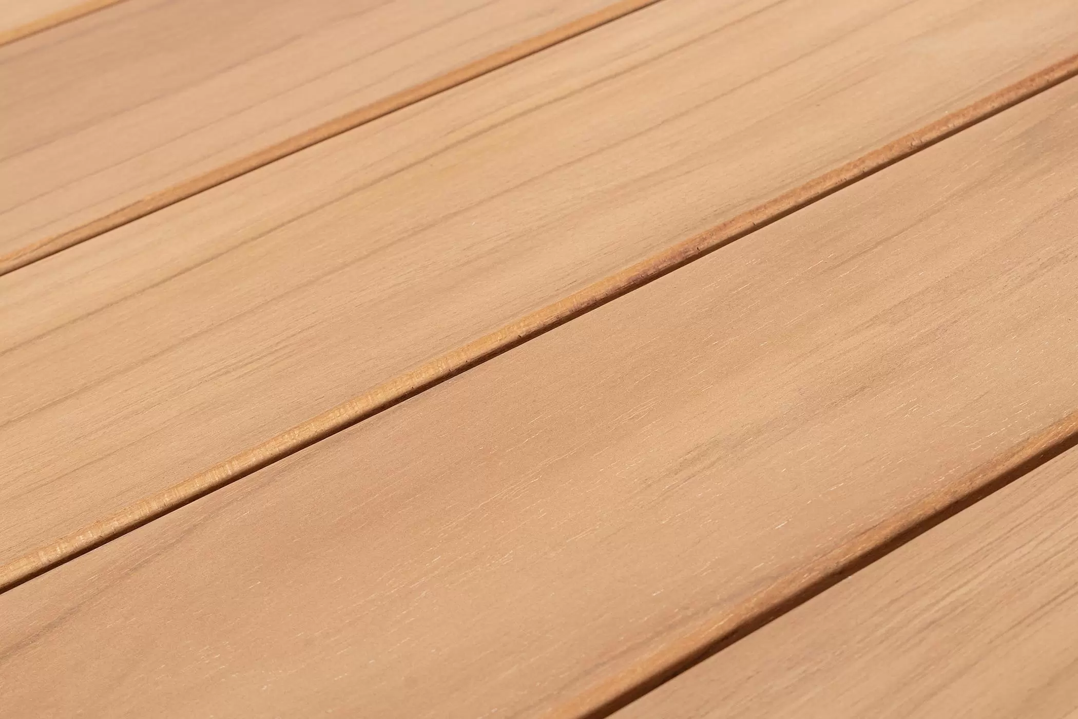 Nogi i blat z drewna teakowego (SVLK) – szlachetny teak klasy A pozyskiwany z certyfikowanych, zrównoważonych źródeł, charakteryzujący się najwyższą naturalną zawartością olejów ochronnych. Drewno to jest niemal niezniszczalne w kontakcie z wodą, nie ulega procesom gnicia i z czasem nabiera pięknej, srebrzystej patyny, która podkreśla jego autentyczny, luksusowy charakter.