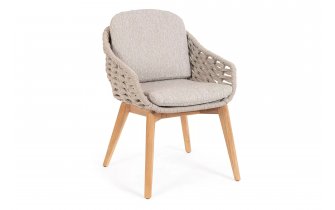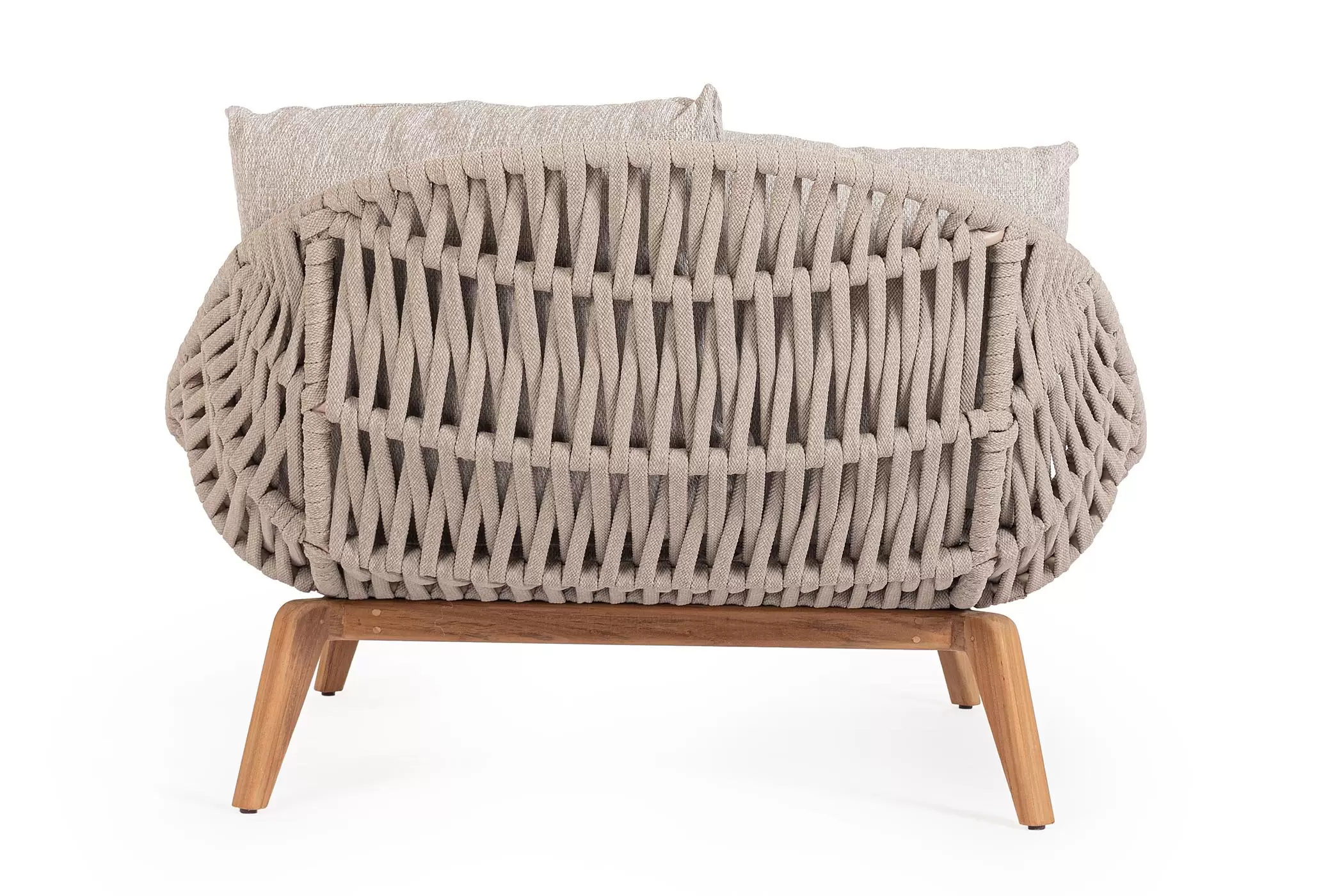 Łózko ogrodowe 2-osobowe z podstawą teakową / plecionka lina polipropylenowa TAMIRES poduszki Olefin Bizzotto