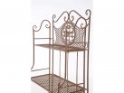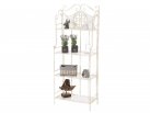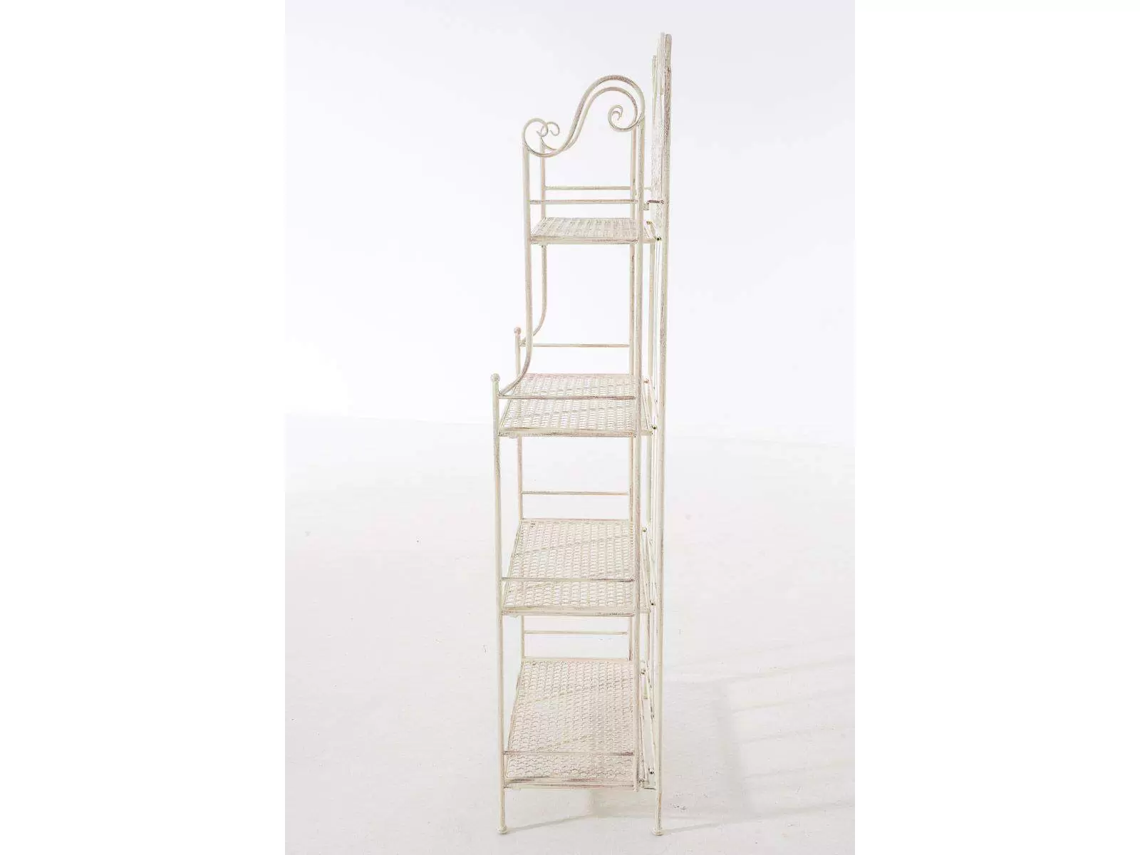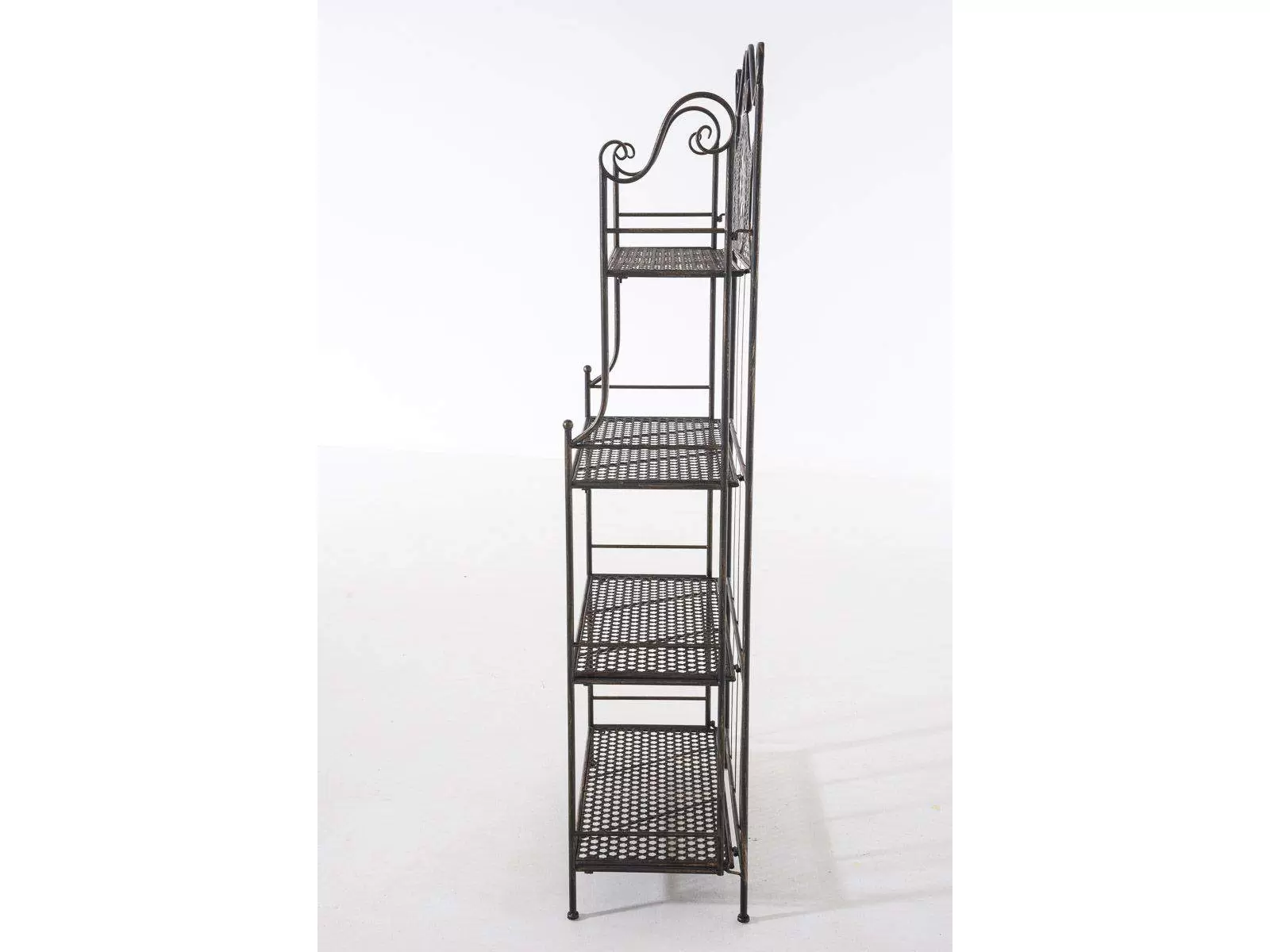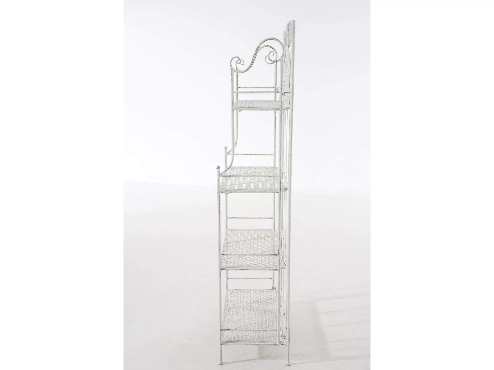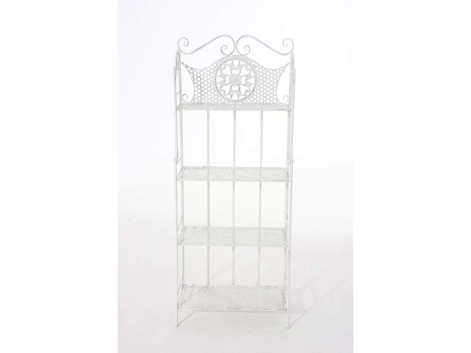 Filigranowy stojący regał wykonany z żelaza, dzięki czemu jest wyjątkowo wytrzymały.