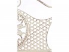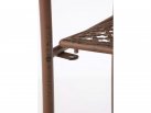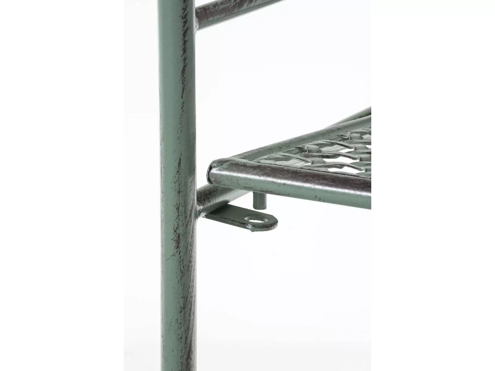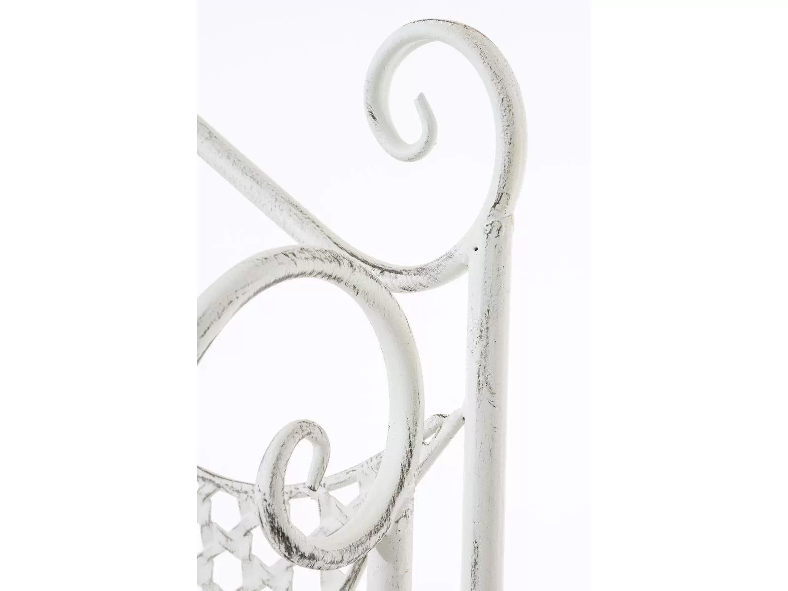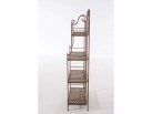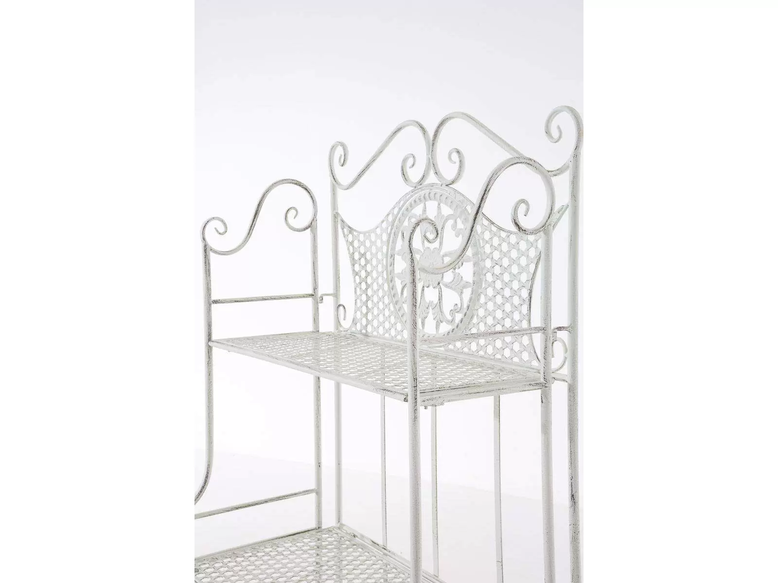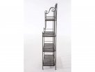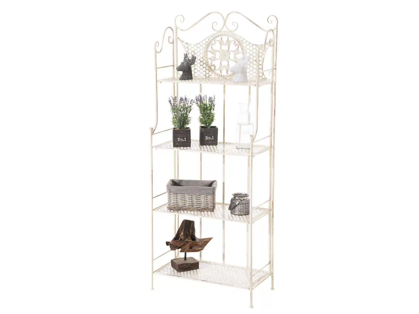 Filigranowy stojący regał wykonany z żelaza, dzięki czemu jest wyjątkowo wytrzymały.