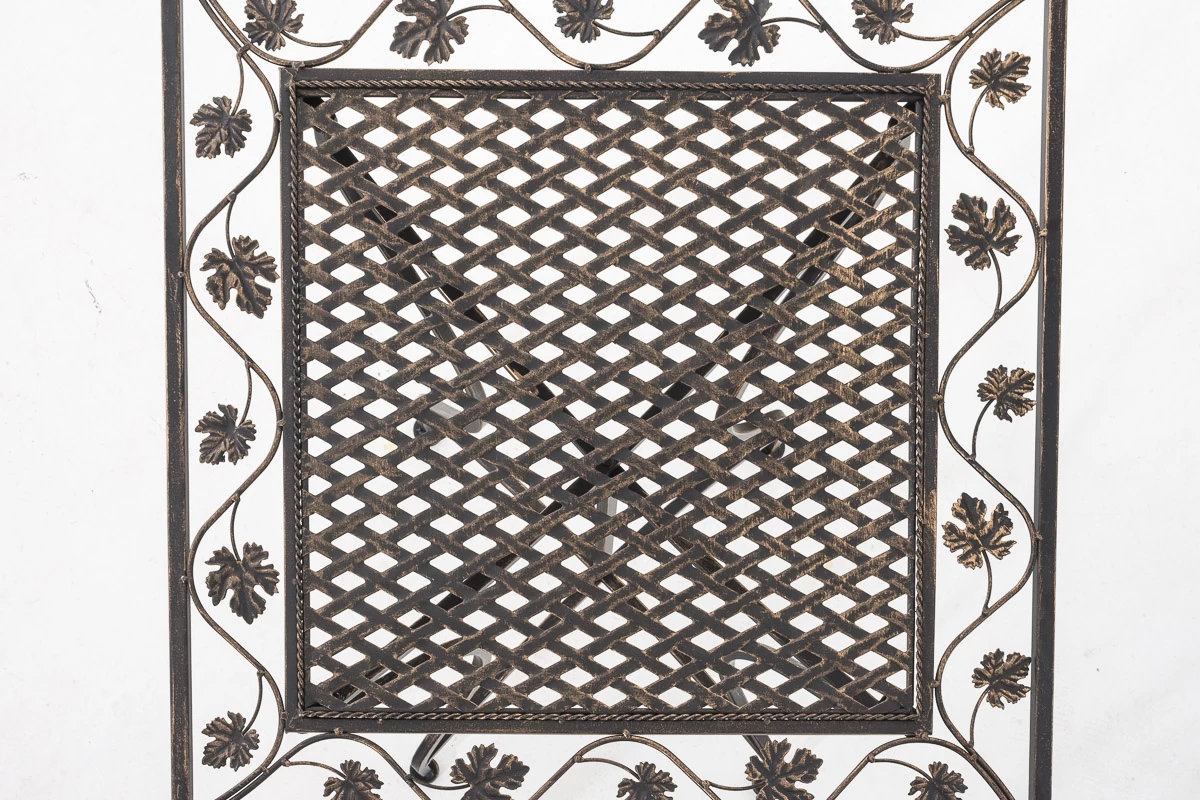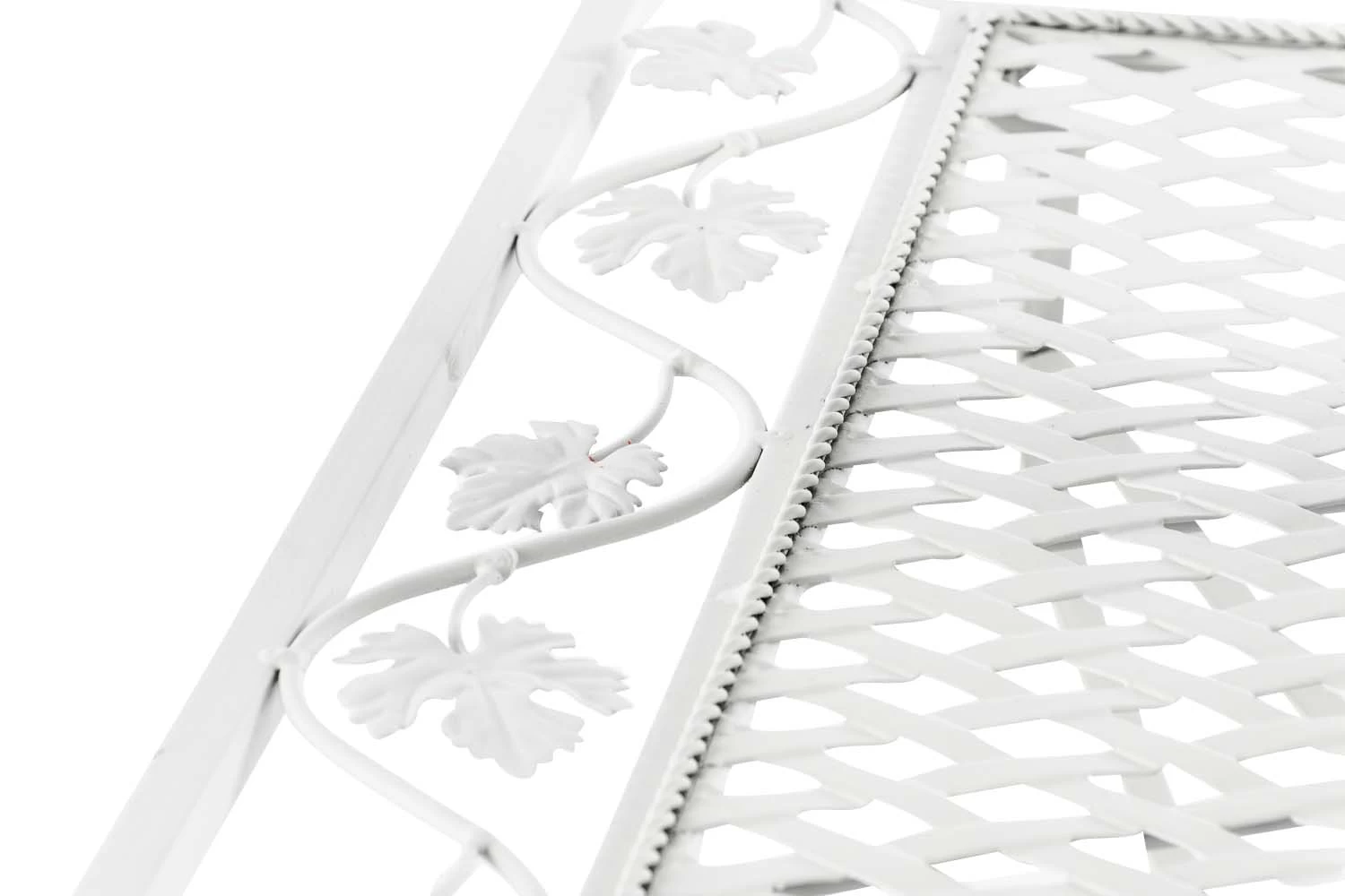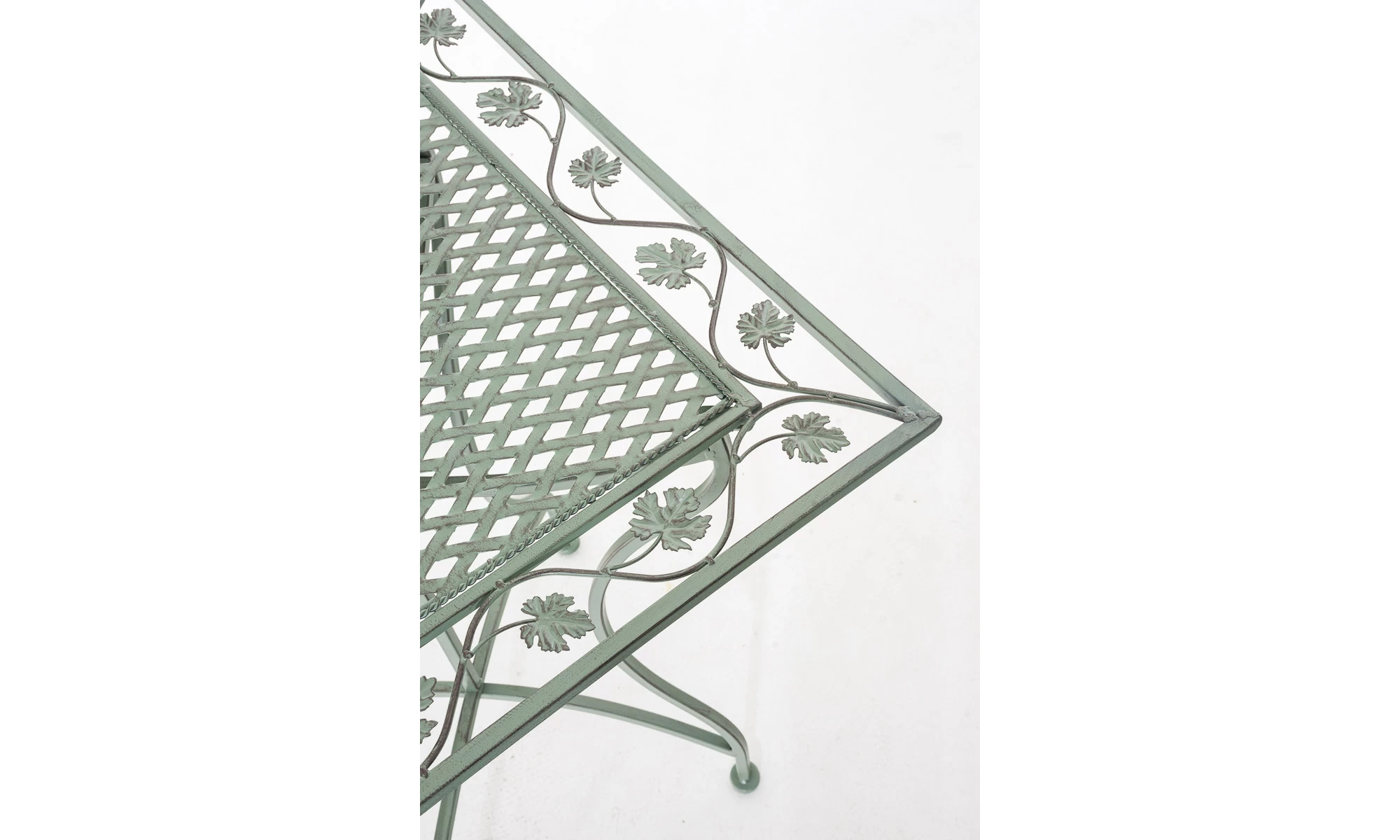 Konstrukcja stolika stalowa z ozdobnymi ornamentami.