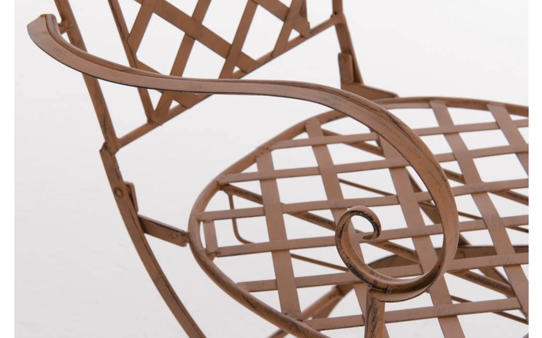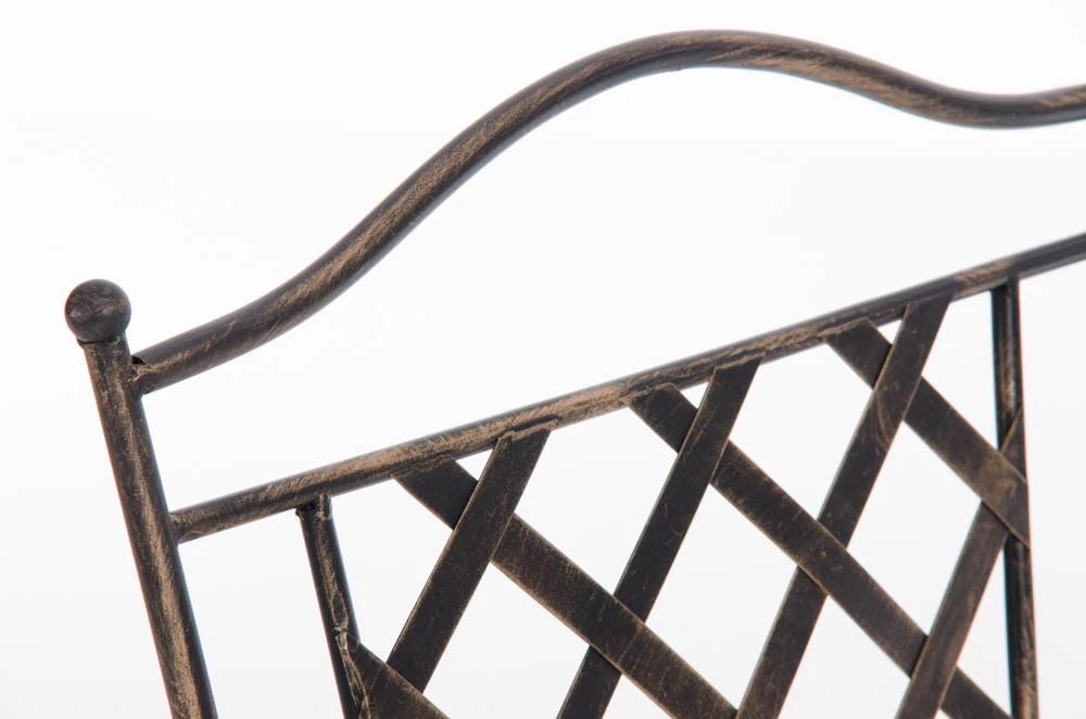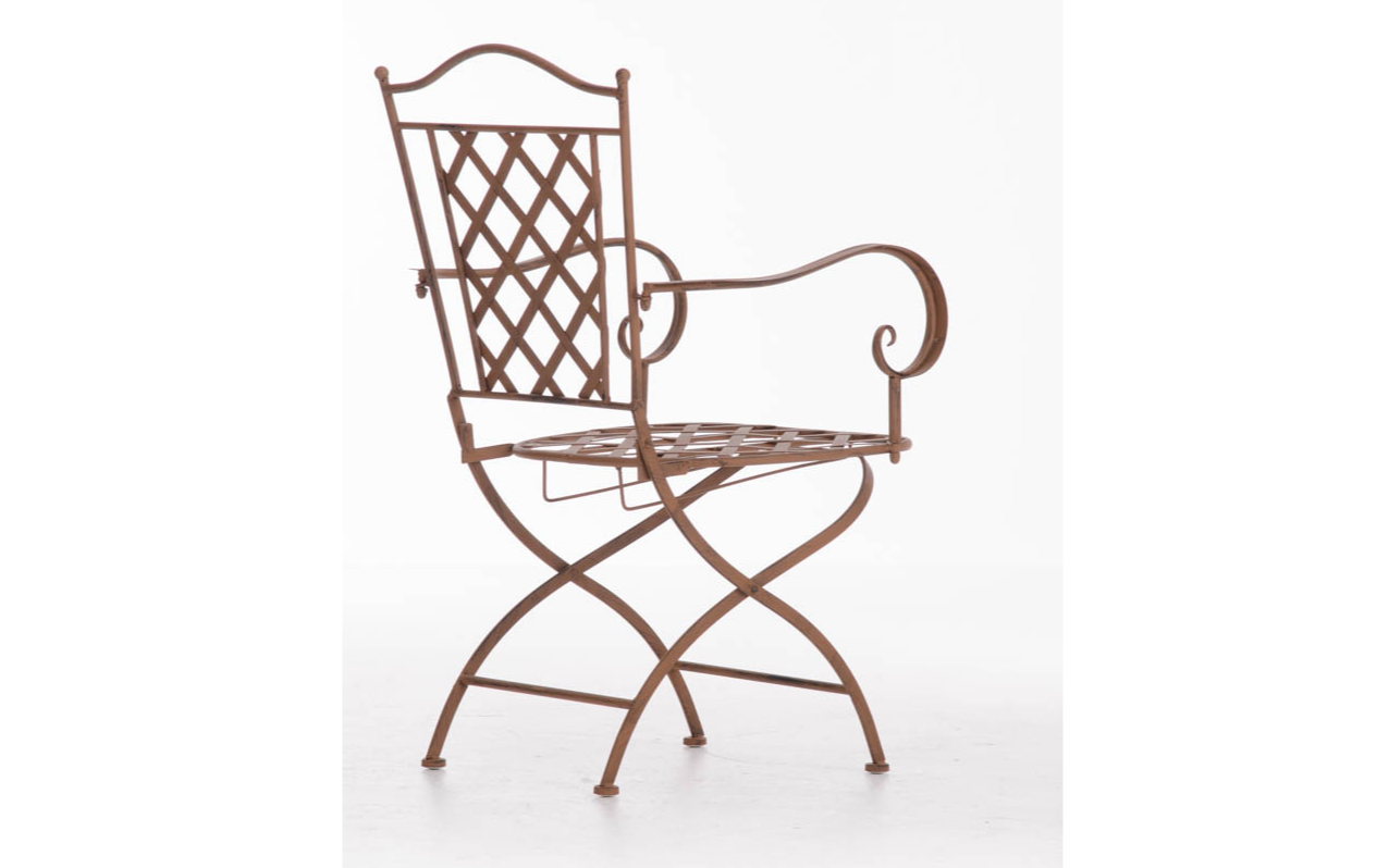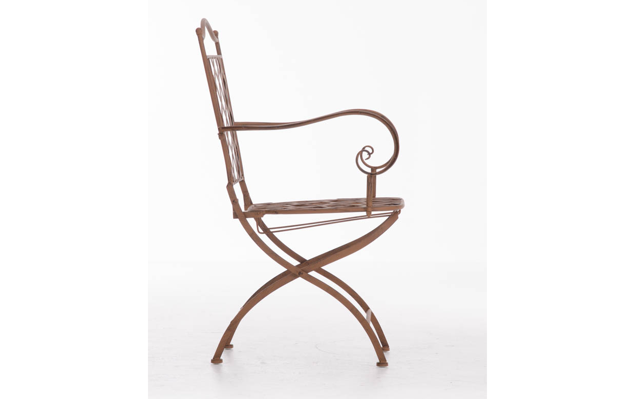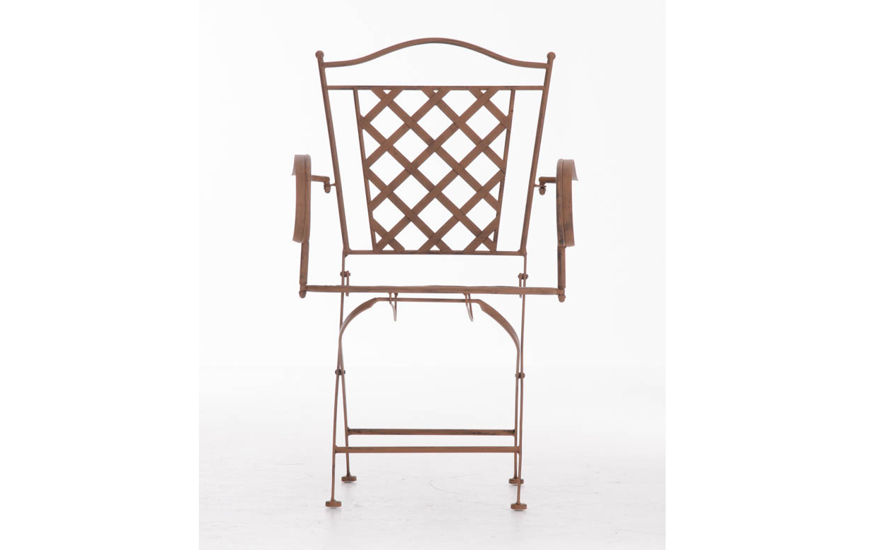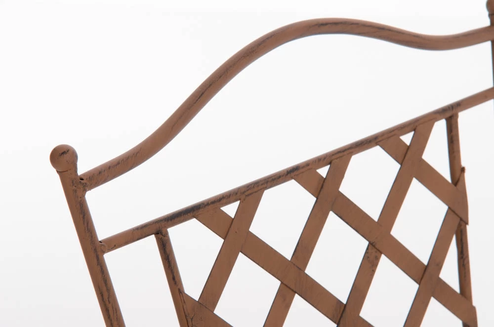 Konstrukcja fotela z żelaza malowanego na kilka kolorów z efektem postarzania.