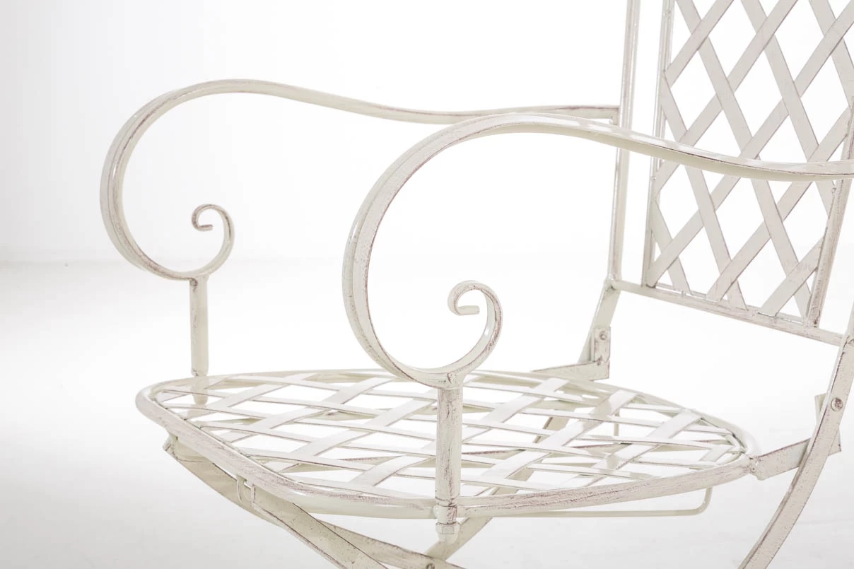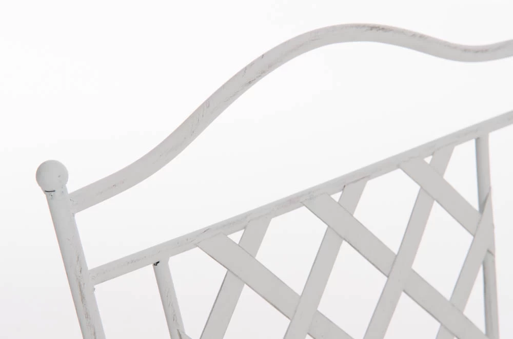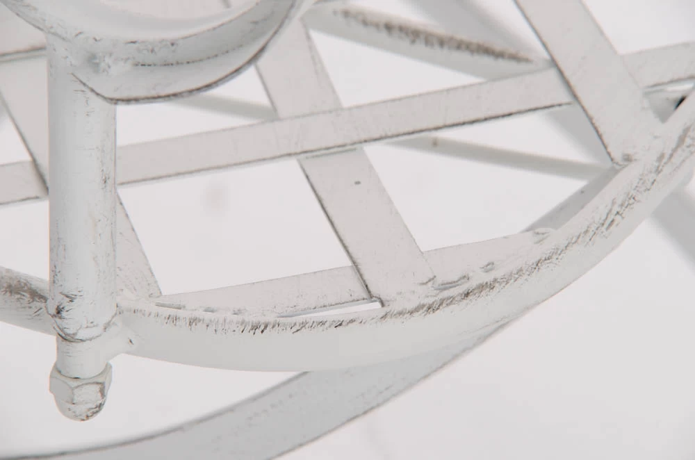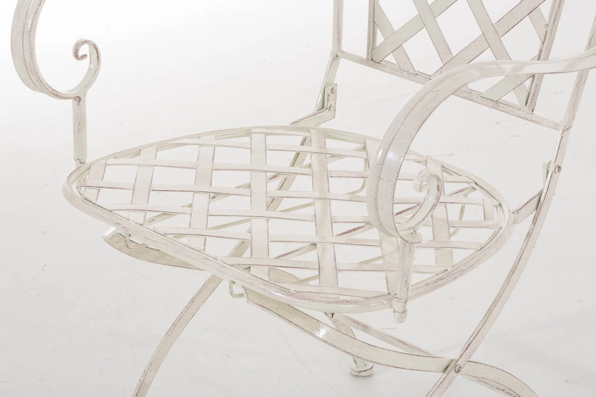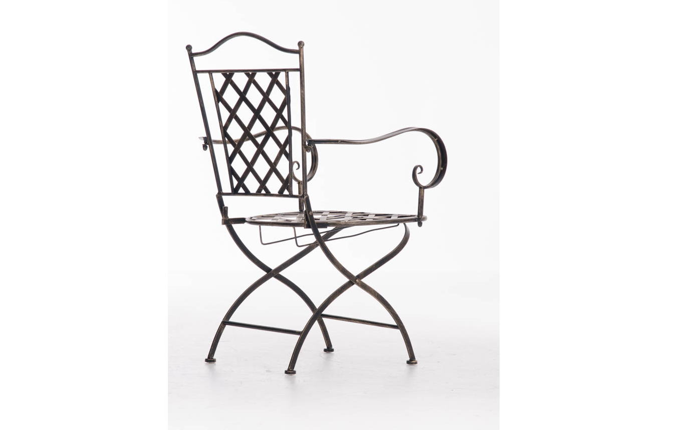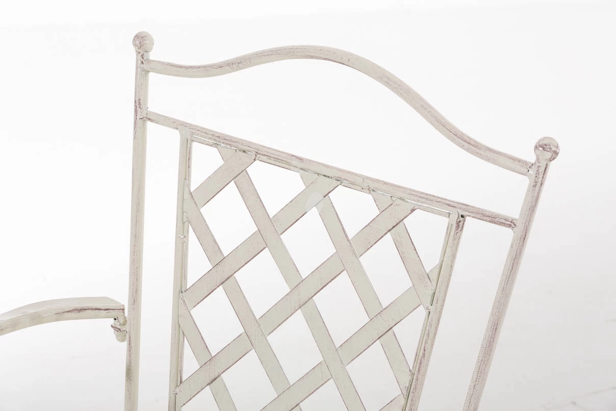 Konstrukcja fotela z żelaza malowanego na kilka kolorów z efektem postarzania.