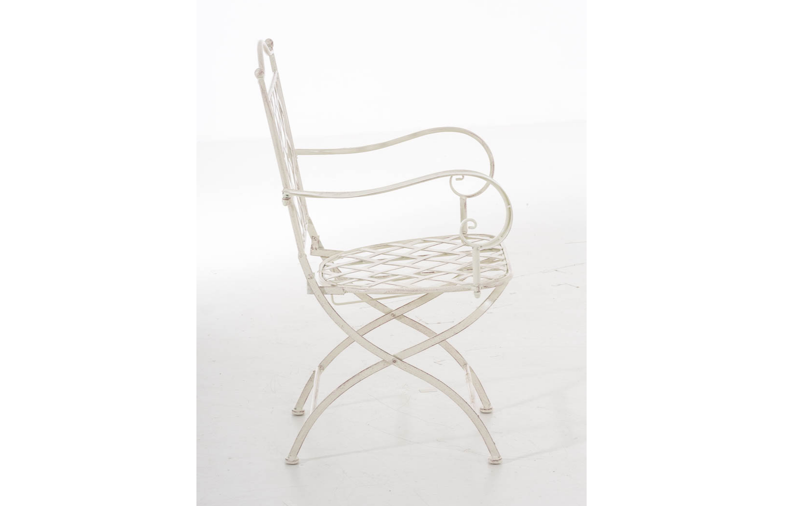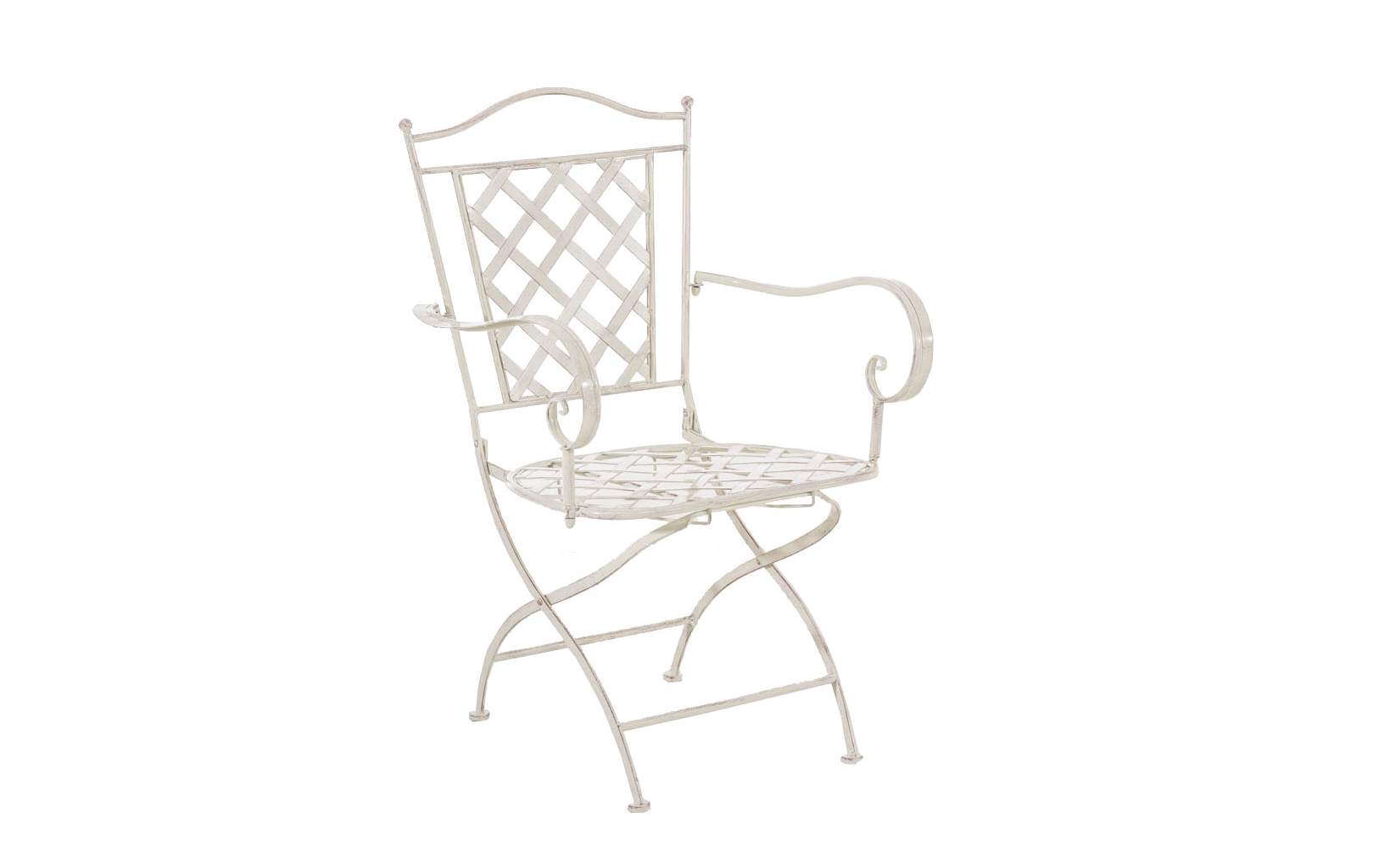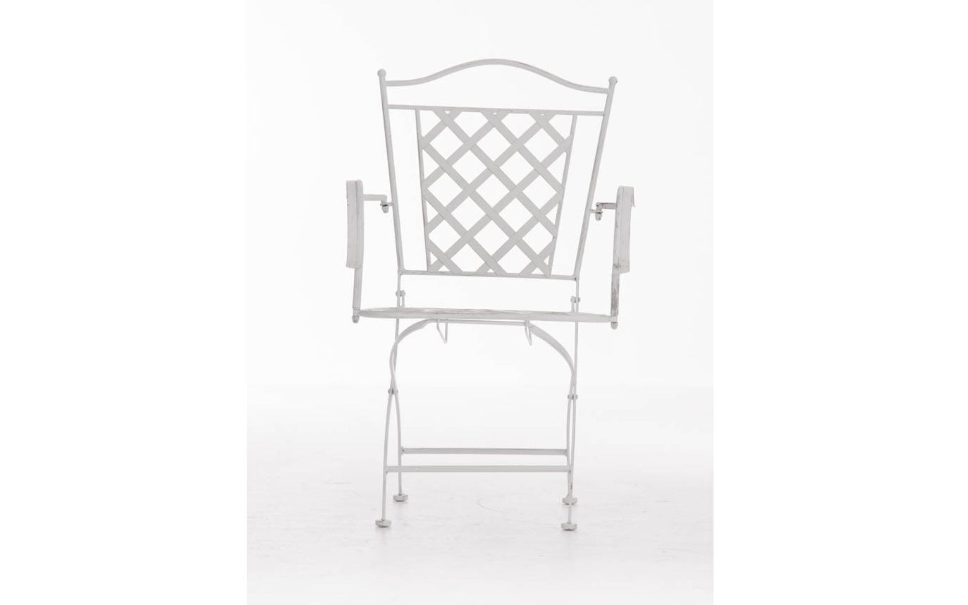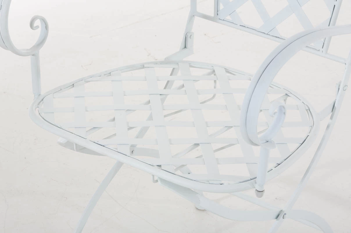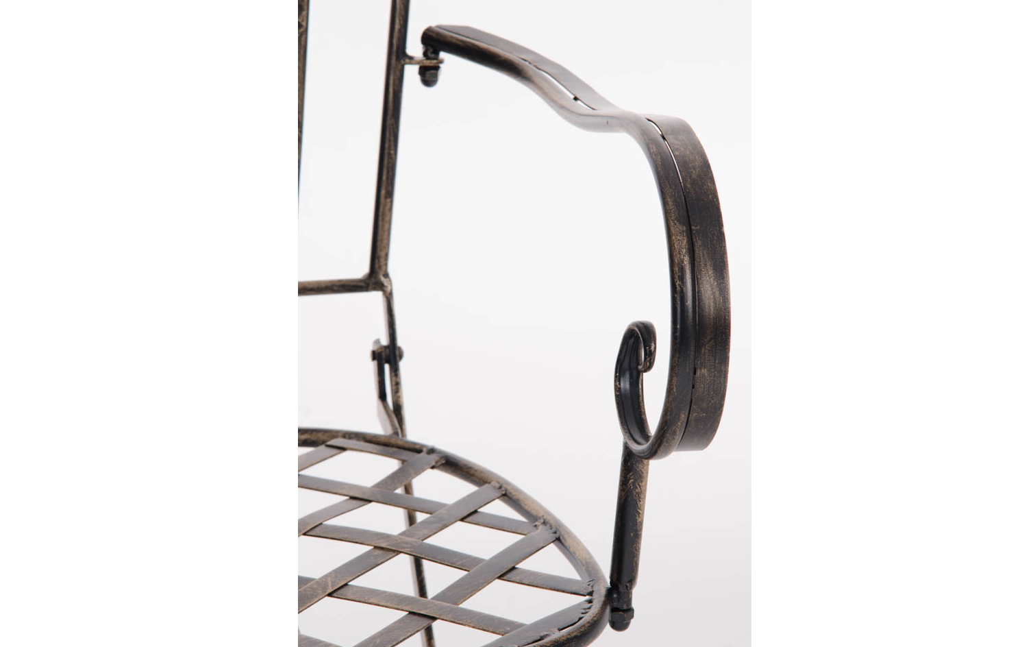 Konstrukcja fotela z żelaza malowanego na kilka kolorów z efektem postarzania.