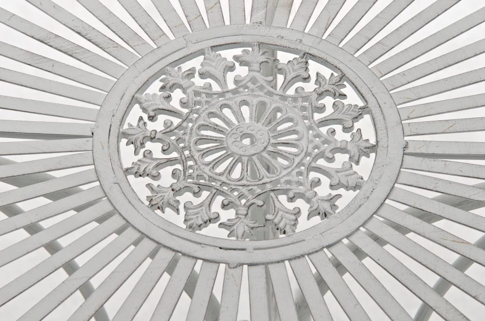 Ten piękny stół o nostalgicznym designie przyciągnie wzrok na każdym tarasie i w każdym ogrodzie. Imponuje swoim wdzięcznym kształtem, a także misternie wykonanymi detalami dekoracji. Idealnie nadaje się do nadania wyjątkowego charakteru Twojemu ogrodowi i doskonale nadaje się do upiększenia swojego przytulnego ulubionego miejsca w ogrodzie swoim urokiem z minionych czasów.