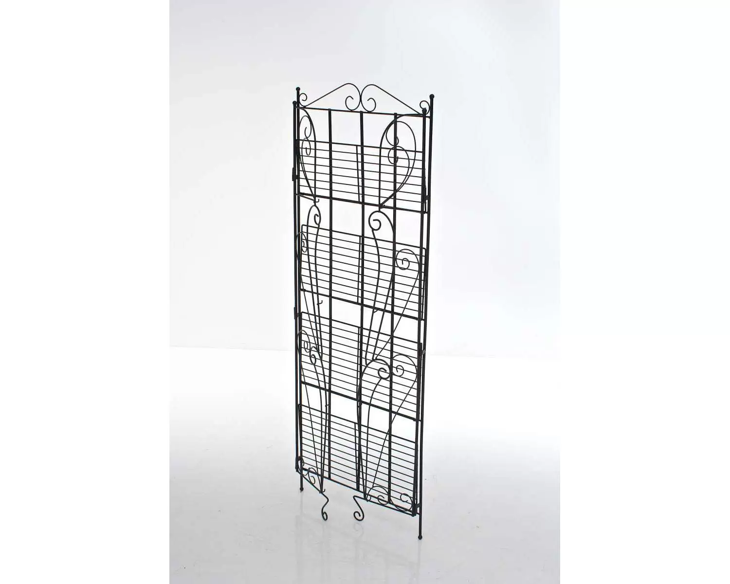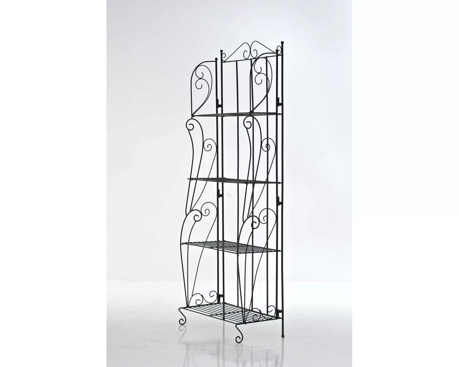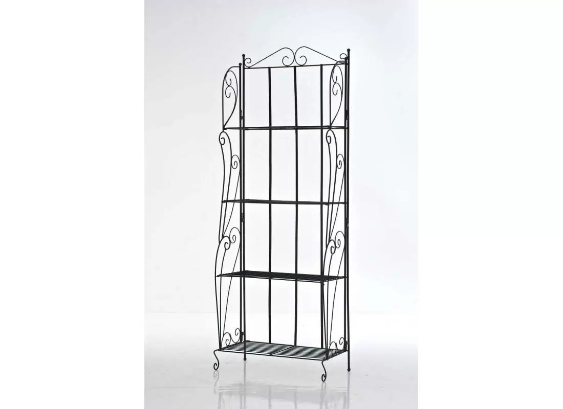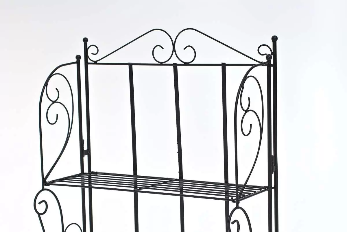 Elementy konstrukcyjne wykonane z rurek stalowych o średnicy 1,5 cm, które charakteryzują się dużo wyższą wytrzymałością w porównaniu do konstrukcji z cienkich blach. Całość uzupełniona zdobieniami z giętych prętów nadającymi XIX-wieczny klasyczny wygląd. Regał malowany proszkowo w kolorze czarnym - gwarancja trwałości powłoki bez względu na warunki atmosferyczne.