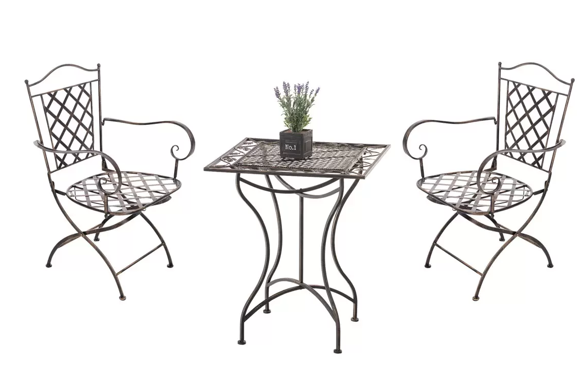 Piękny zestaw w nostalgicznym stylu przyciąga wzrok na każdym tarasie i w każdym ogrodzie. Zachwyca delikatnym kształtem, a także pięknie wykonanymi detalami dekoracji. Jest idealny, aby nadać Twojemu ogrodowi wyjątkowy charakter i jest idealny, aby upiększyć swoje przytulne ulubione miejsce w ogrodzie swoim urokiem z przeszłości.