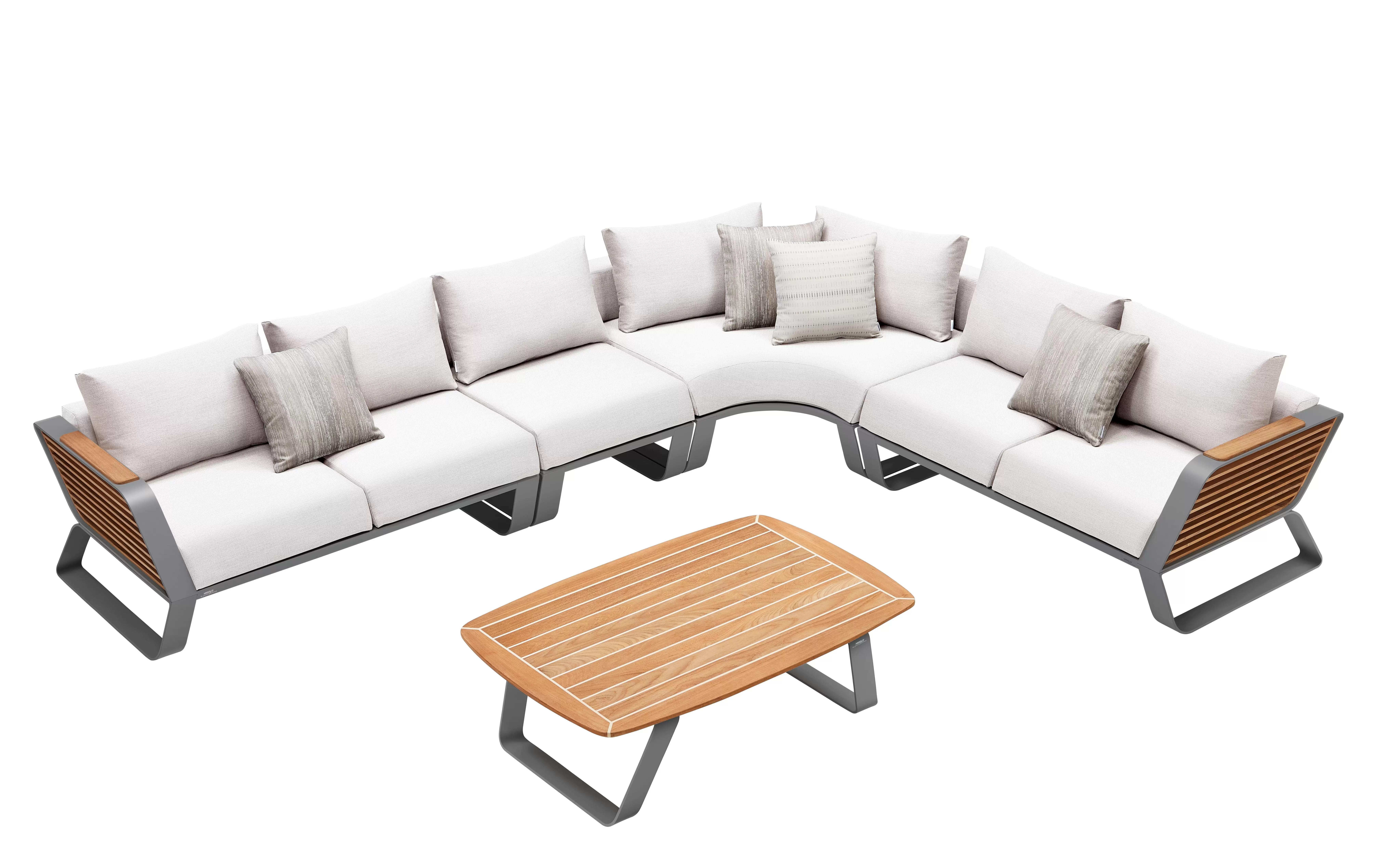 Wspaniała, nowoczesna konstrukcja mebli podkreśla połączenie drewna tekowego z aluminiową lekkością stelaża, a wszystko to dopełnione jest maksymalnym komfortem, funkcjonalnością, jakością i niezawodnością.