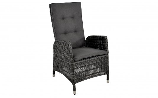Aluminiowy fotel z wysokim i pochylanym oparciem oraz podnóżek / poduszki szybkoschnące z akrylowym materiałem Olefin / kolory antracyt i biały / opcjonalny stolik
