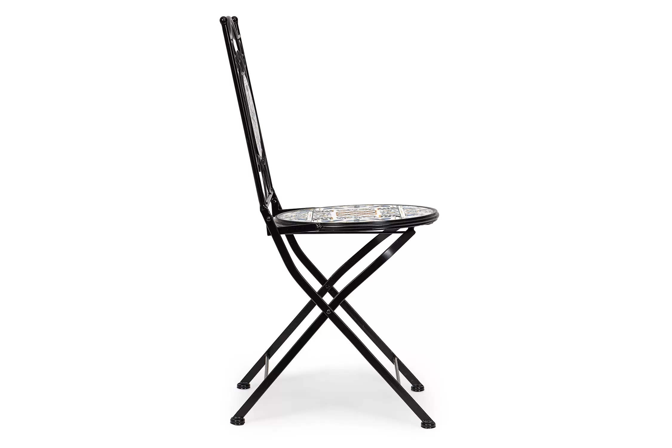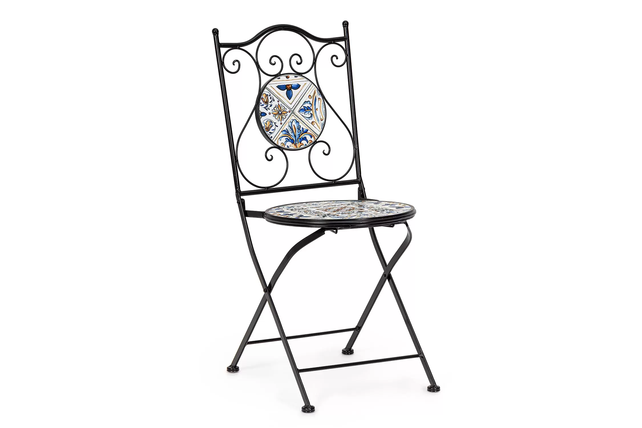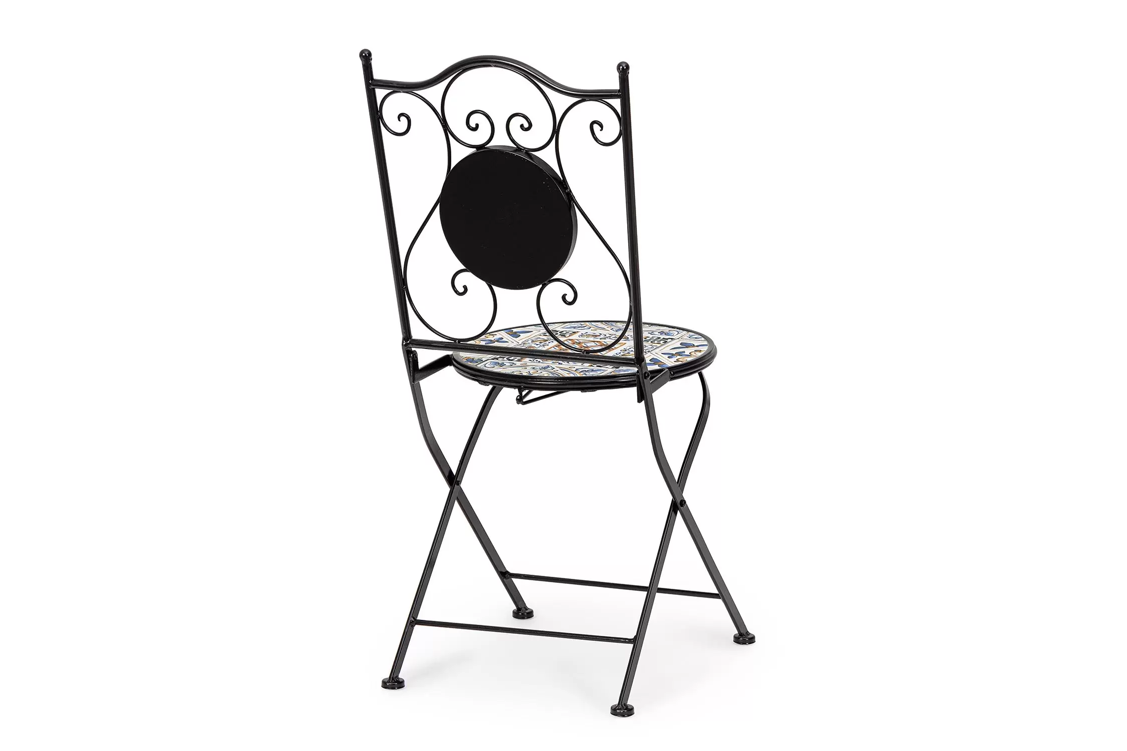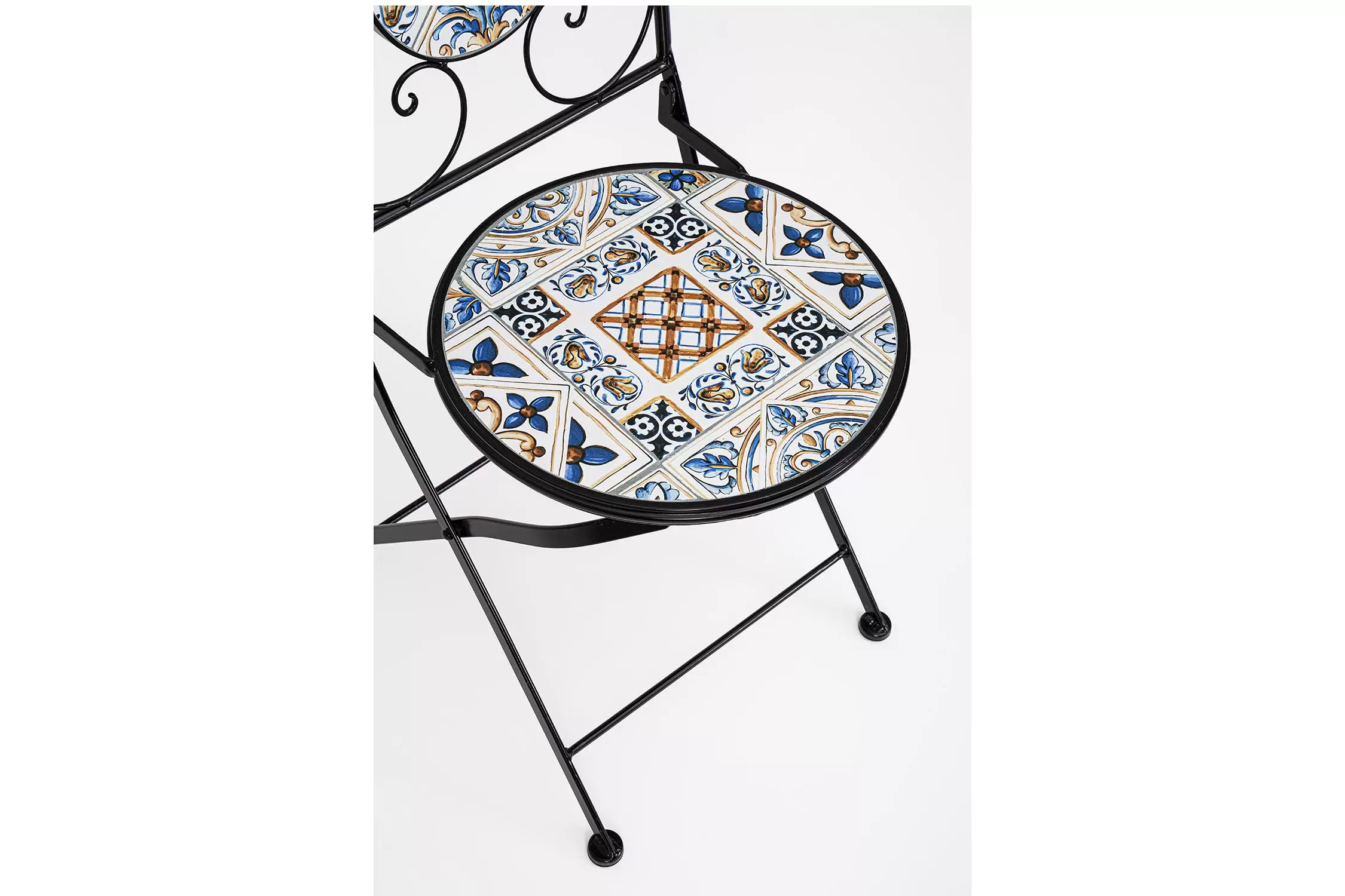 2x krzesło składane metalowe klasyczne MYKONOS ceramiczne dekoracje na siedzeniu i oparciu
