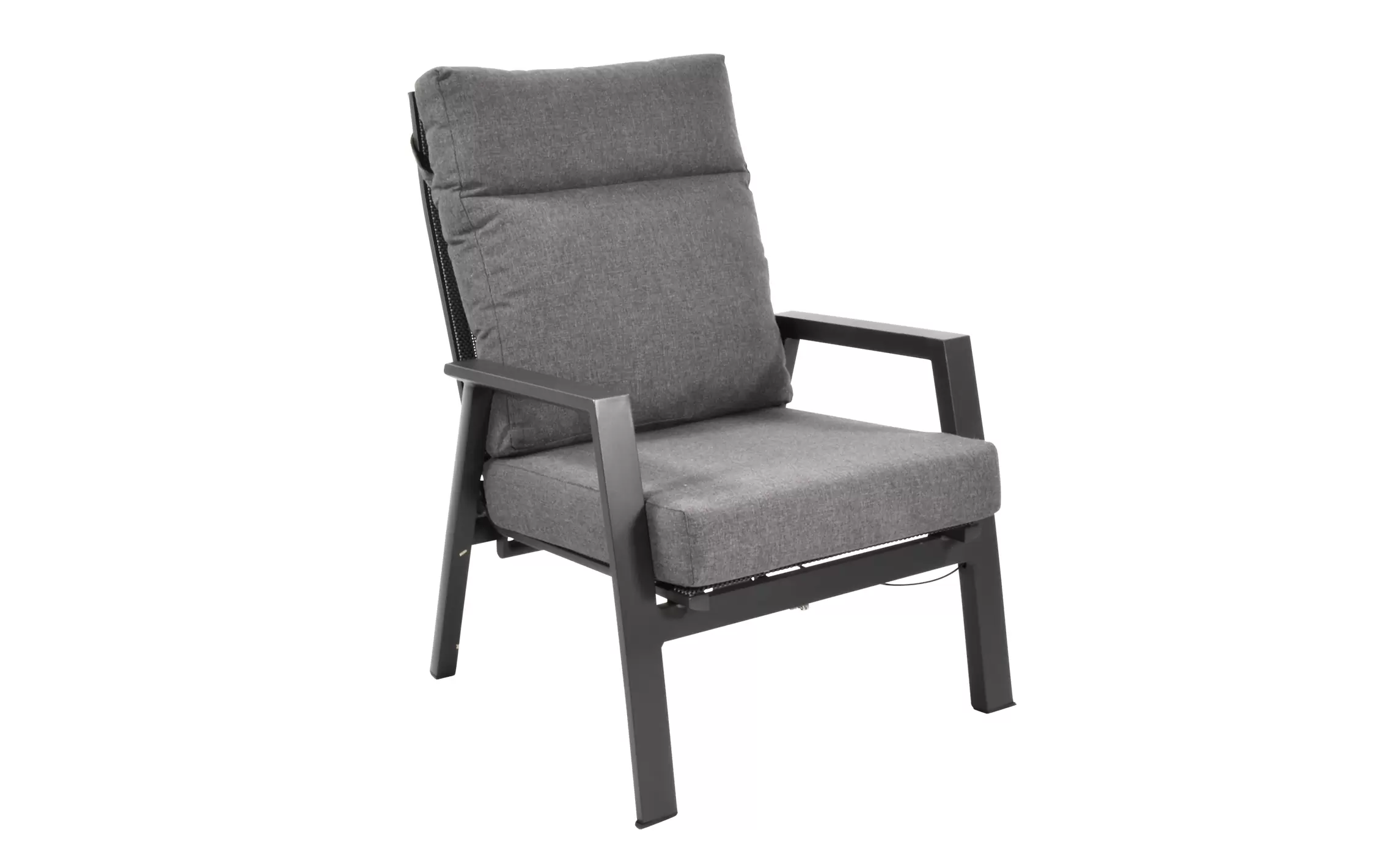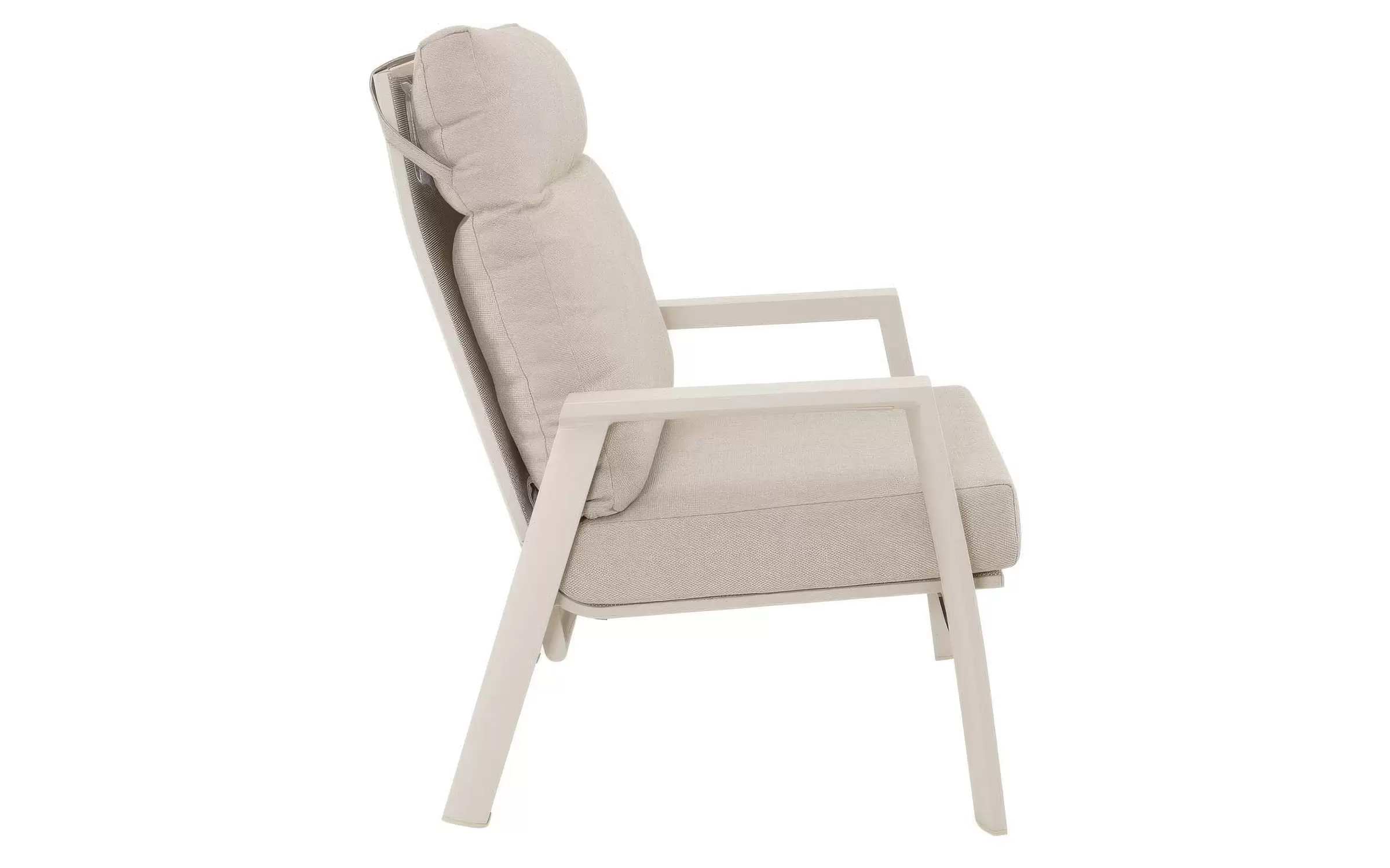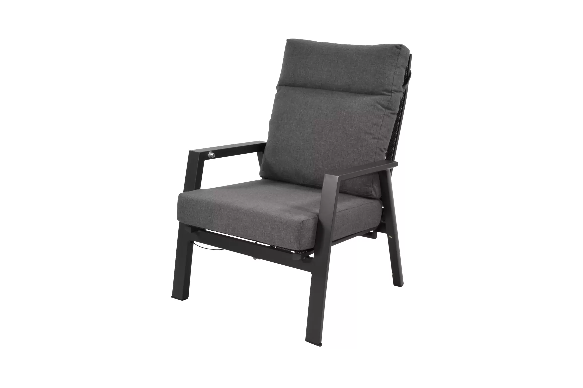 Fotel ogrodowy aluminiowy z płynnie regulowanym pochylanym wysokim oparciem.