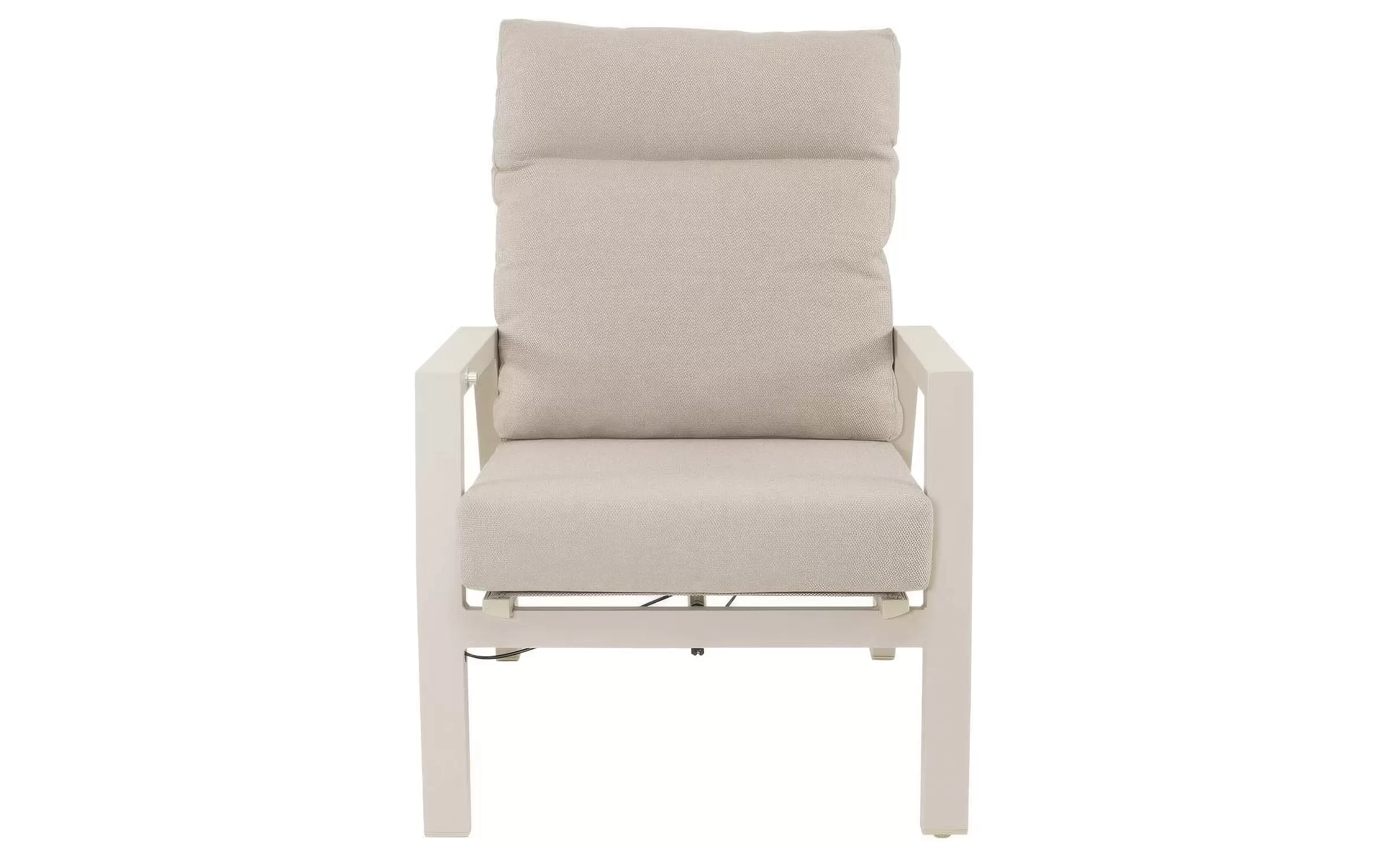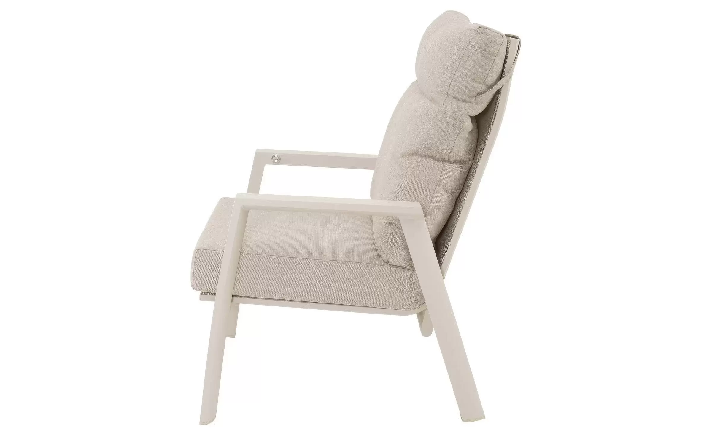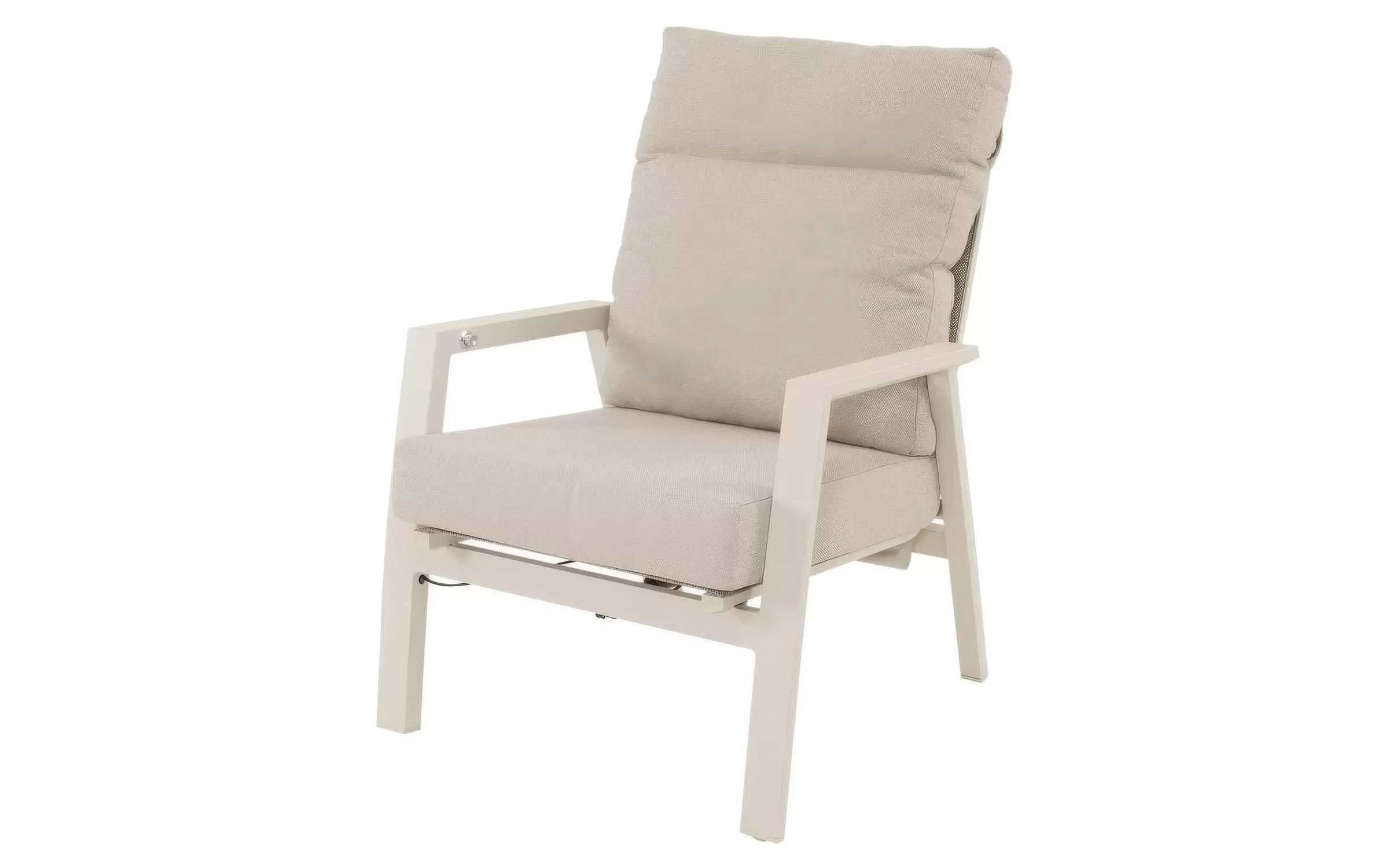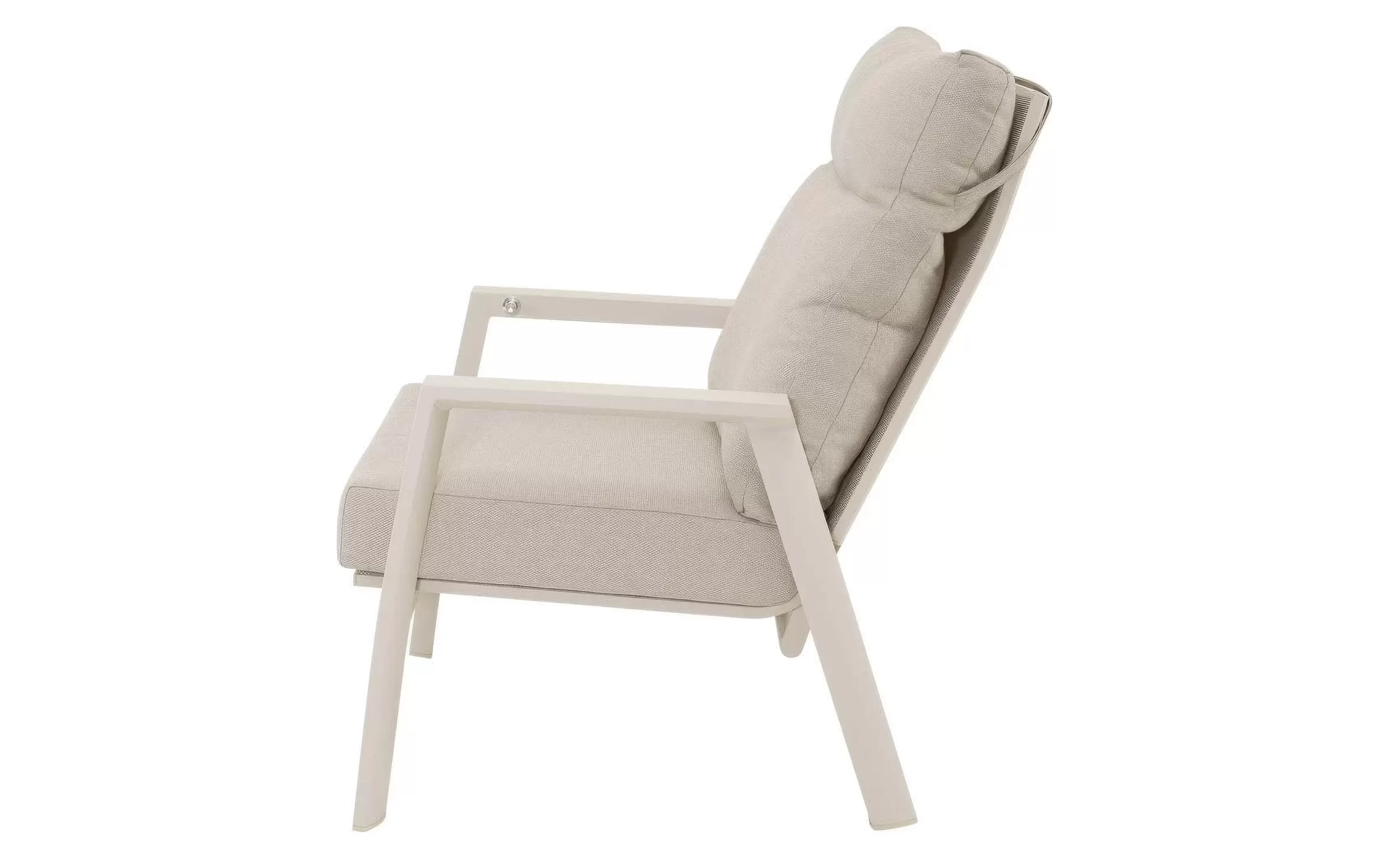 Fotel ogrodowy aluminiowy z płynnie regulowanym pochylanym wysokim oparciem.