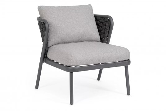 Wysoki fotel wypoczynkowy ogrodowy / konstrukcja aluminiowa kolor grafitowy / oparcie z plecionką z liny polipropylenowej / poduszki antracyt materiał Olefin