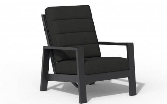 Nowoczesny fotel wypoczynkowy tarasowy / konstrukcja alu malowana proszkowo / oparcie z plecionką z pasów z wypełnieniem / poduszki Olefin