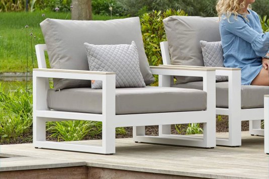 Fotel wypoczynkowy z kolekcji Mallorca / aluminiowa spawana konstrukcja / 2 wersje: biała lub ciemnoszara / grube poduszki wodoodporne