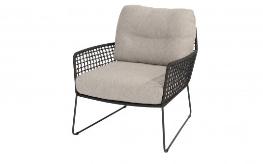 Fotel/niskie krzesło ogrodowe stołowe grafitowe z plecionką z liny z materiału Olefinowego / poduszki Olefin