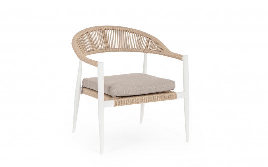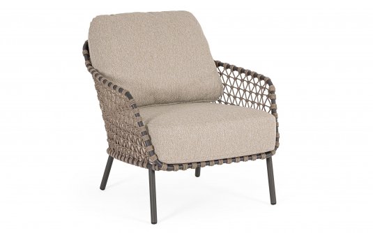 Fotel wypoczynkowy tarasowy / podstawa stal nierdzewna i malowanie proszkowe / plecionka z liny polipropylenowej / poduszki z materiału Olefin / Fotel 74 cm szerokości