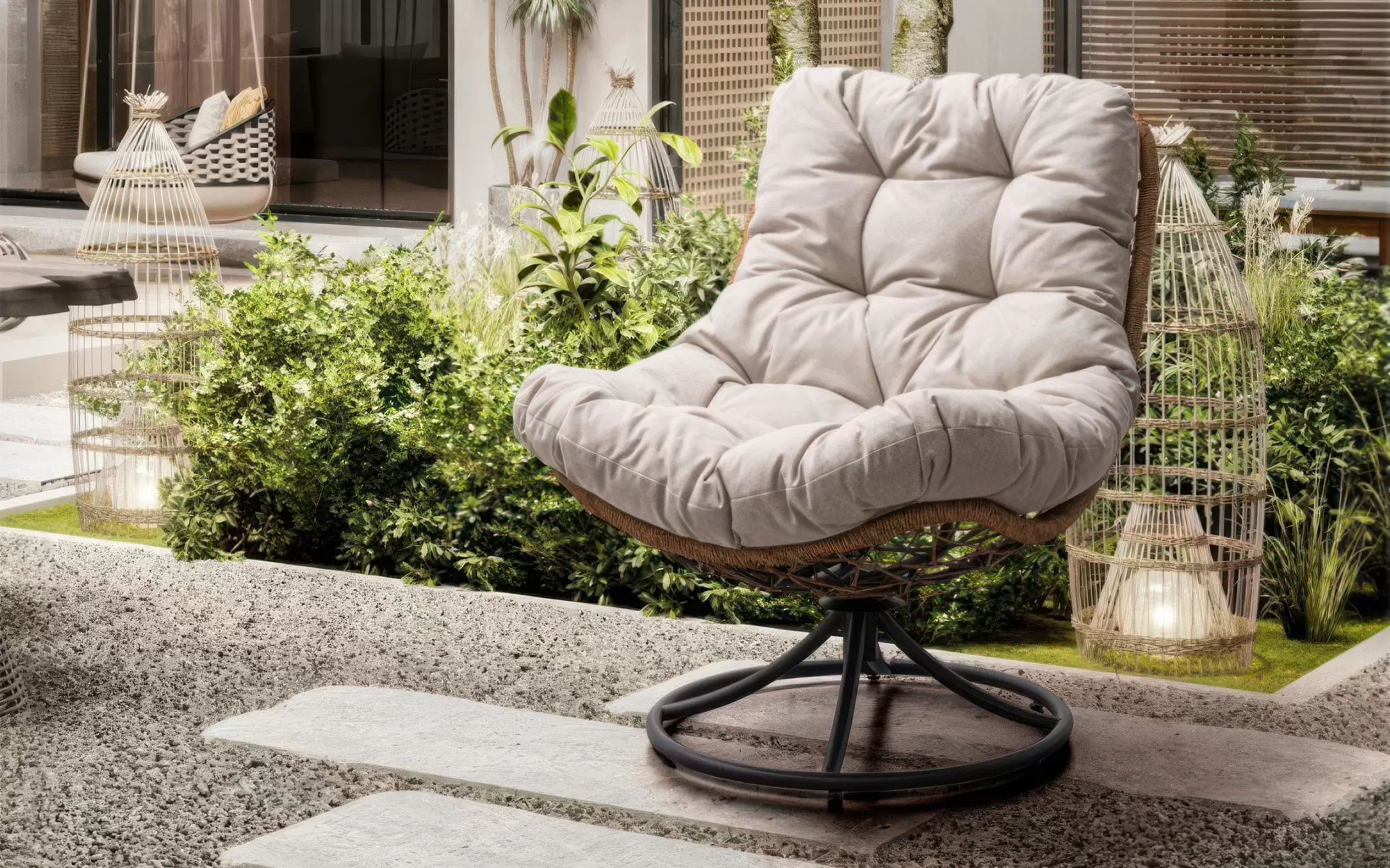 AZORES to dynamiczny fotel ogrodowy, który redefiniuje standardy komfortu dzięki zintegrowanej funkcji pełnego obrotu 360°. Projekt ten stanowi harmonijne połączenie nowoczesnej inżynierii z estetyką czerpiącą z tradycyjnego rzemiosła, tworząc idealny punkt centralny dla przydomowej strefy relaksu. Jego unikalna konstrukcja pozwala na swobodną zmianę perspektywy i płynne podążanie za słońcem bez konieczności przesuwania mebla, co czyni go wyjątkowo funkcjonalnym rozwiązaniem na tarasy, balkony oraz do ogrodów zimowych.