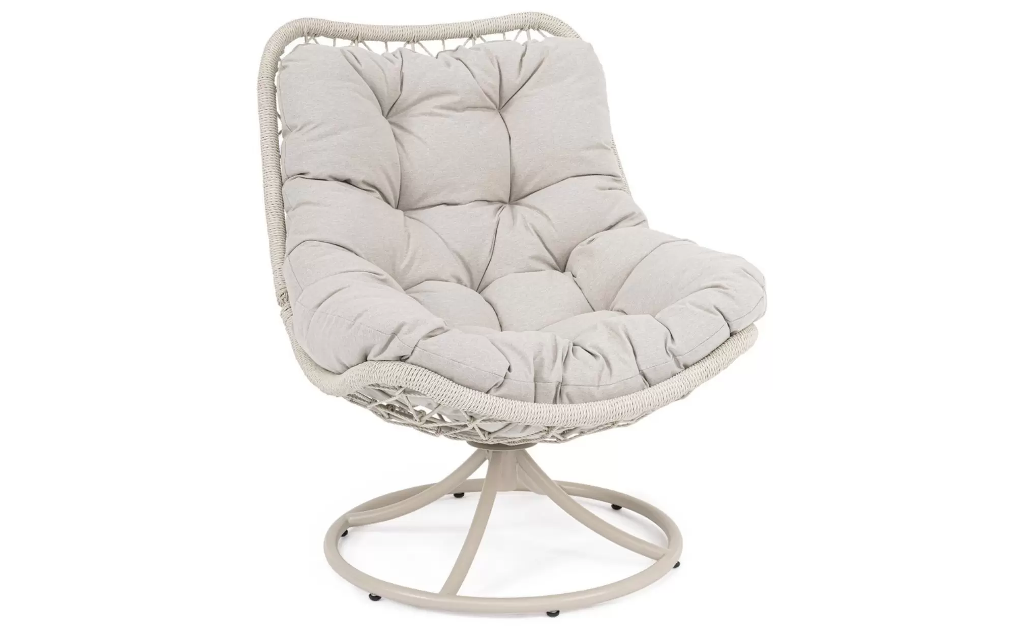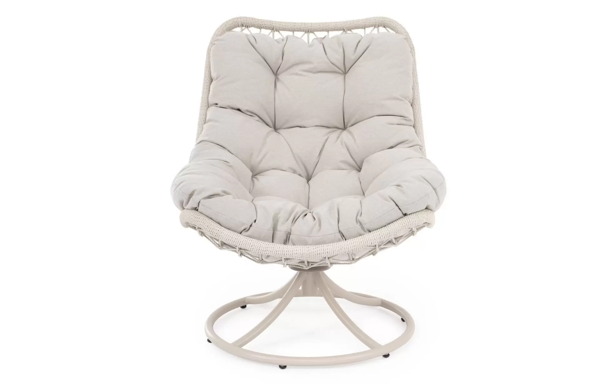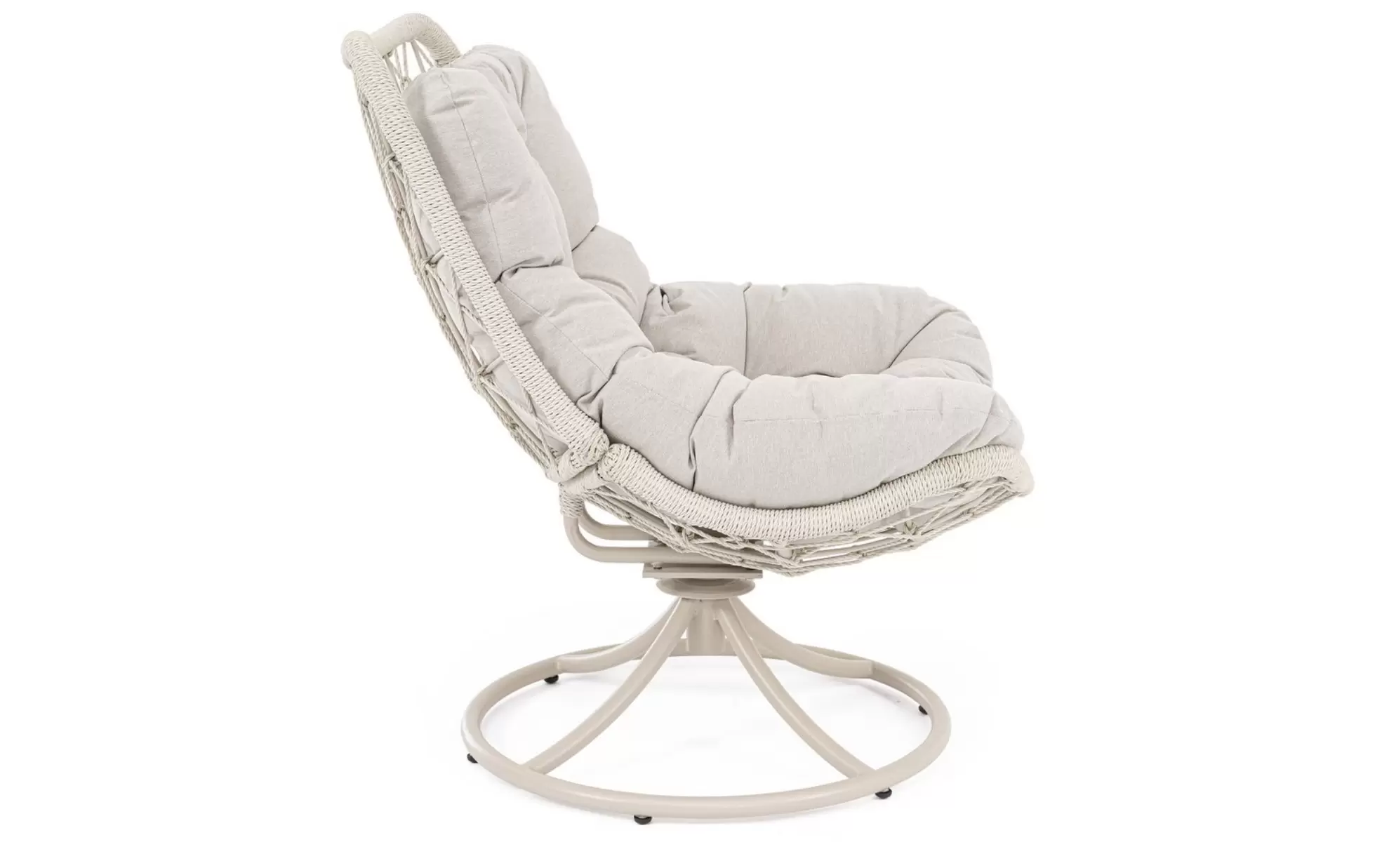 AZORES Fotel ogrodowy obrotowy stal lina poduszka jasnobeżowa