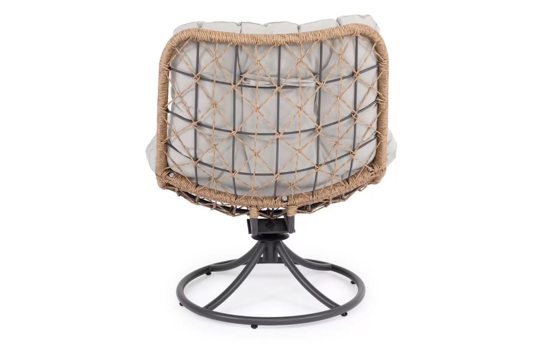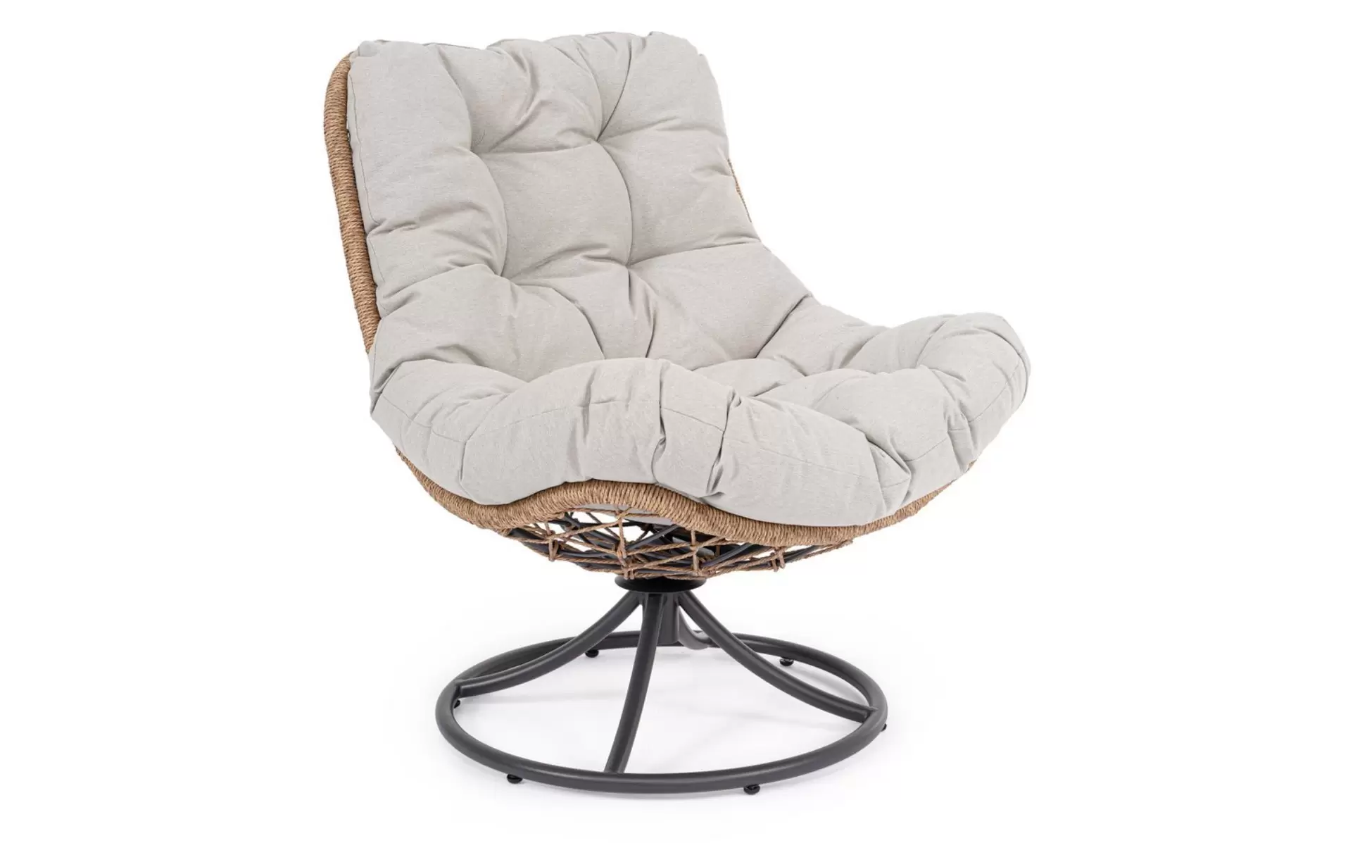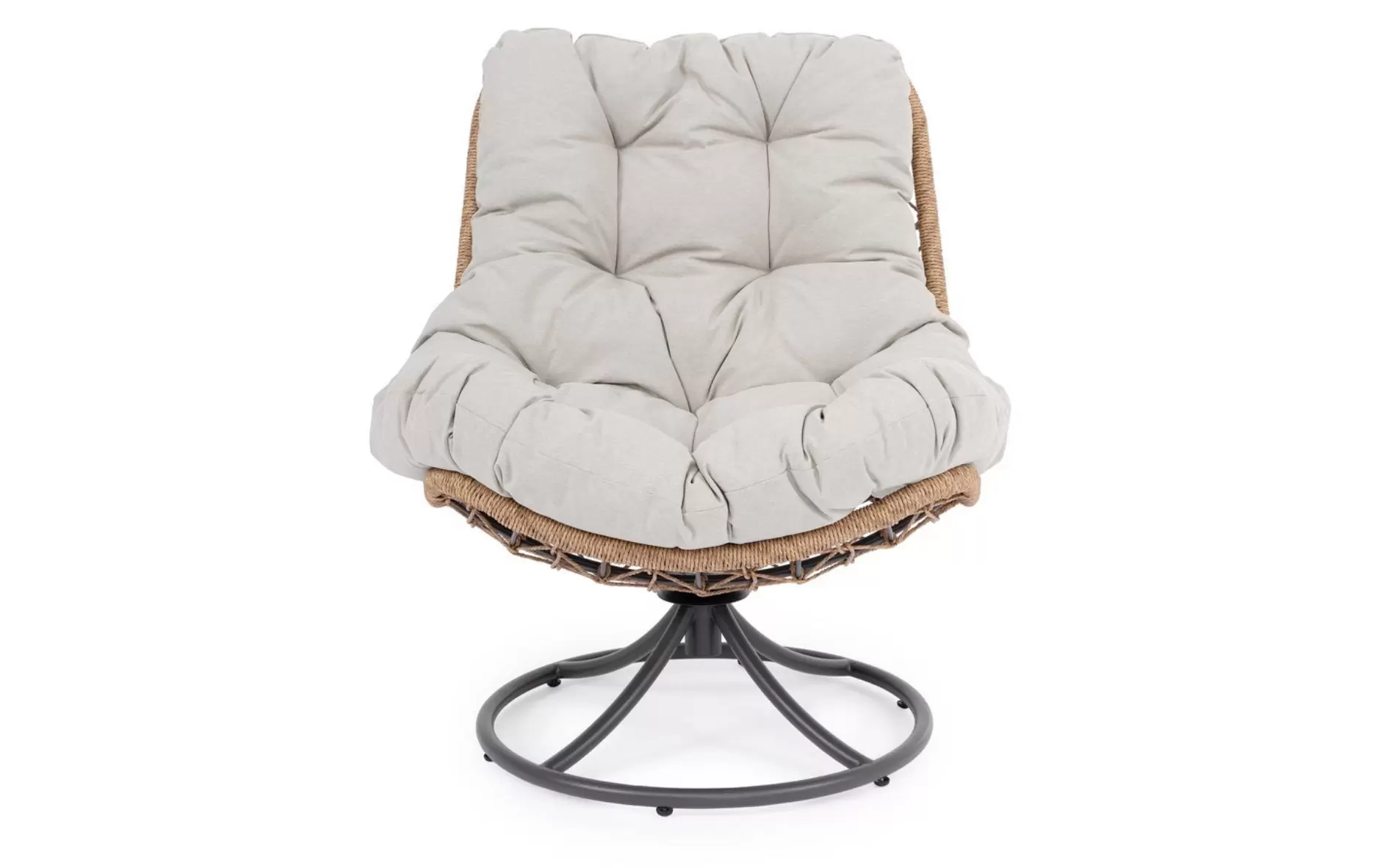 AZORES Fotel ogrodowy obrotowy stal lina poduszka jasnobeżowa