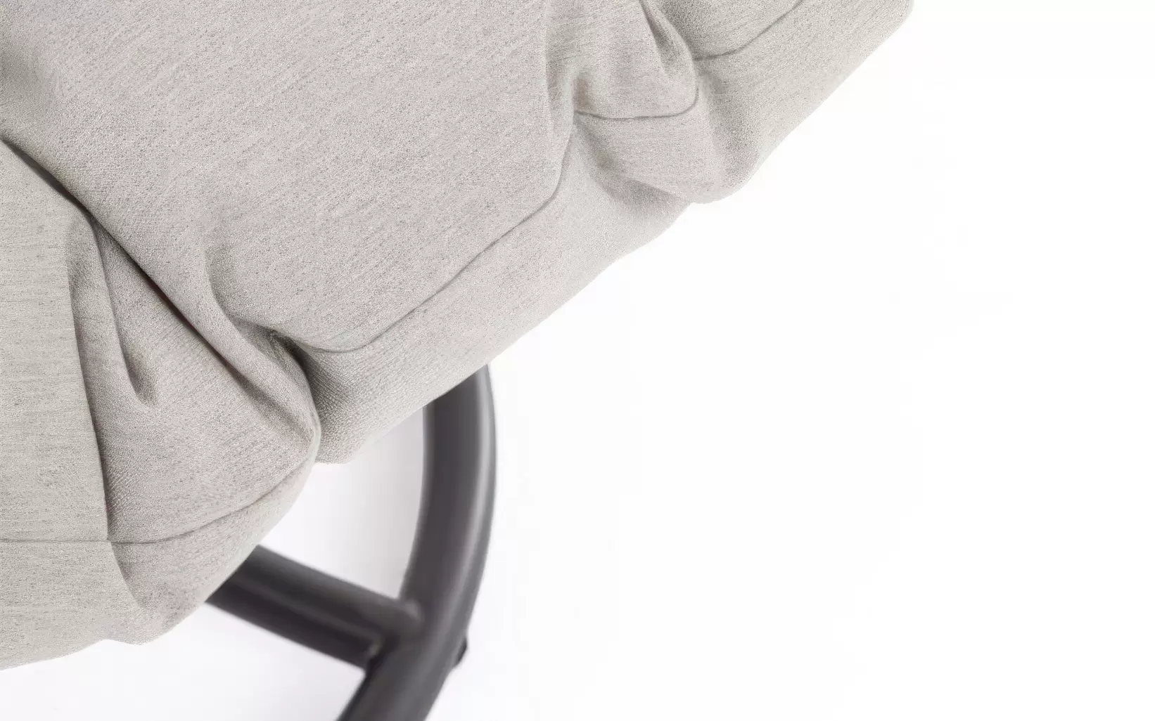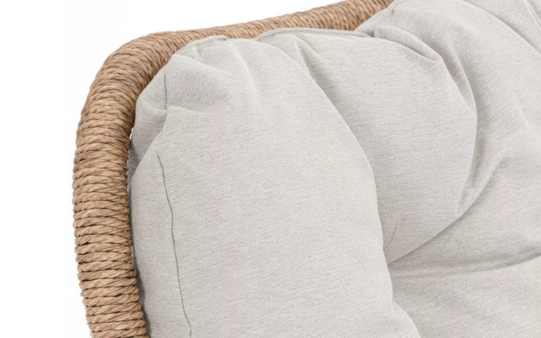 Wnętrze fotela wypełnia zintegrowana, wodoodporna poduszka w łagodnym kolorze jasnobeżowym. Dzięki stałemu zamocowaniu do konstrukcji, siedzisko zachowuje swój pierwotny kształt i nie przesuwa się podczas użytkowania, oferując miękkość i stabilne wsparcie dla kręgosłupa. Model AZORES to propozycja dla osób poszukujących mebla, który łączy bezawaryjną mechanikę z przytulnym, organicznym designem.