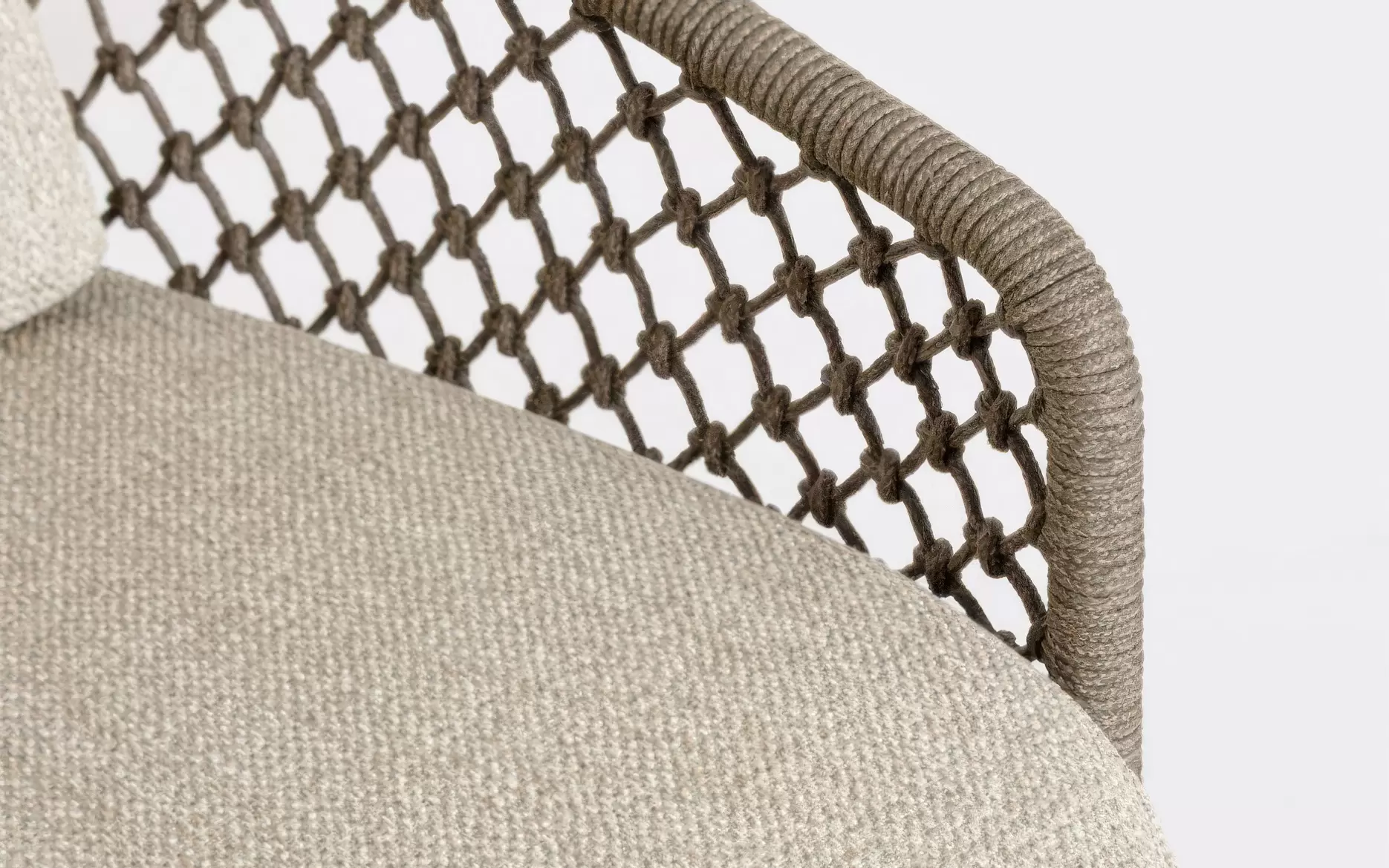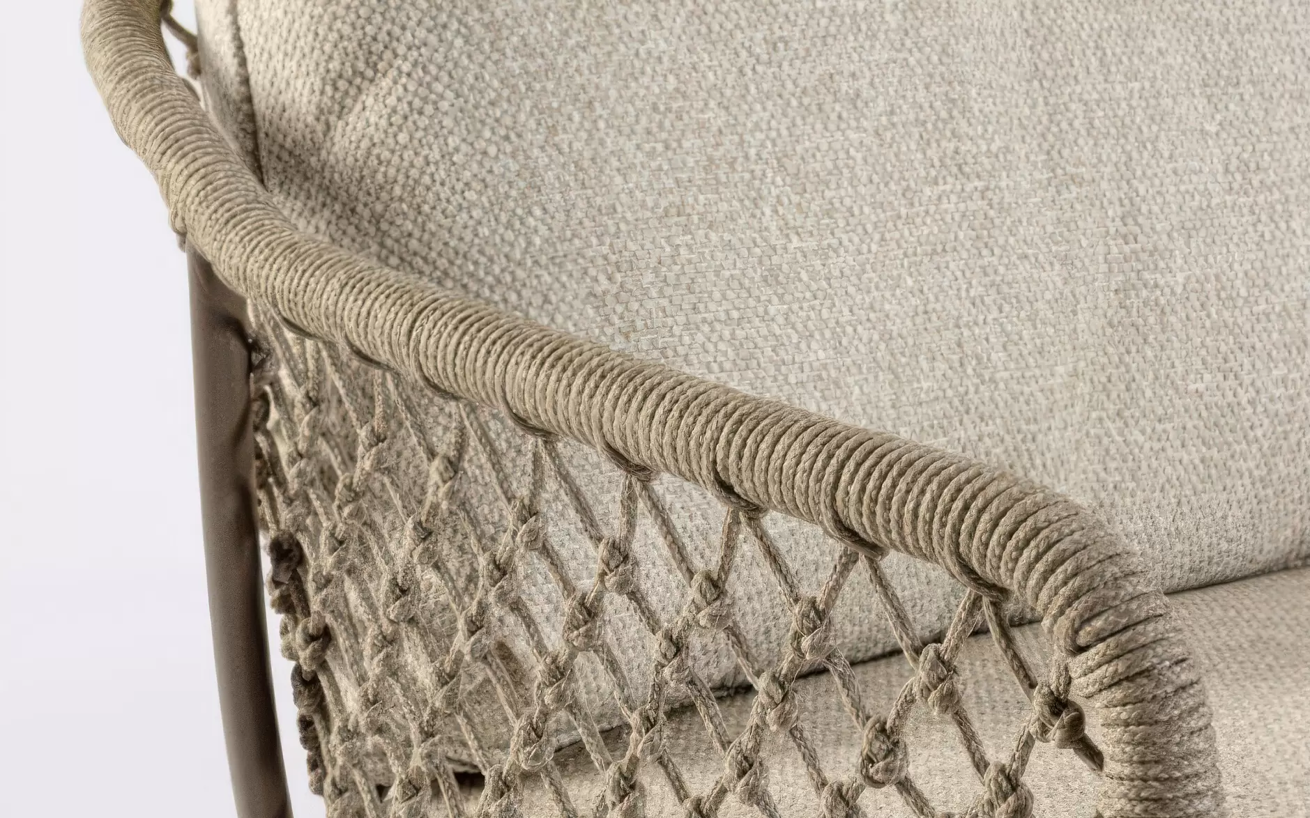 Plecionka rope – dekoracyjny oplot wykonany z wytrzymałych włókien polipropylenowych, który pełni rolę elastycznego i przewiewnego oparcia. Ta nowoczesna lina outdoorowa jest w pełni odporna na nasiąkanie wodą oraz szkodliwe działanie promieni UV, dzięki czemu nie kruszeje i nie płowieje nawet przy intensywnej ekspozycji na słońce. Zastosowanie plecionki nadaje fotelowi wizualnej lekkości i zapewnia naturalną wentylację pleców.