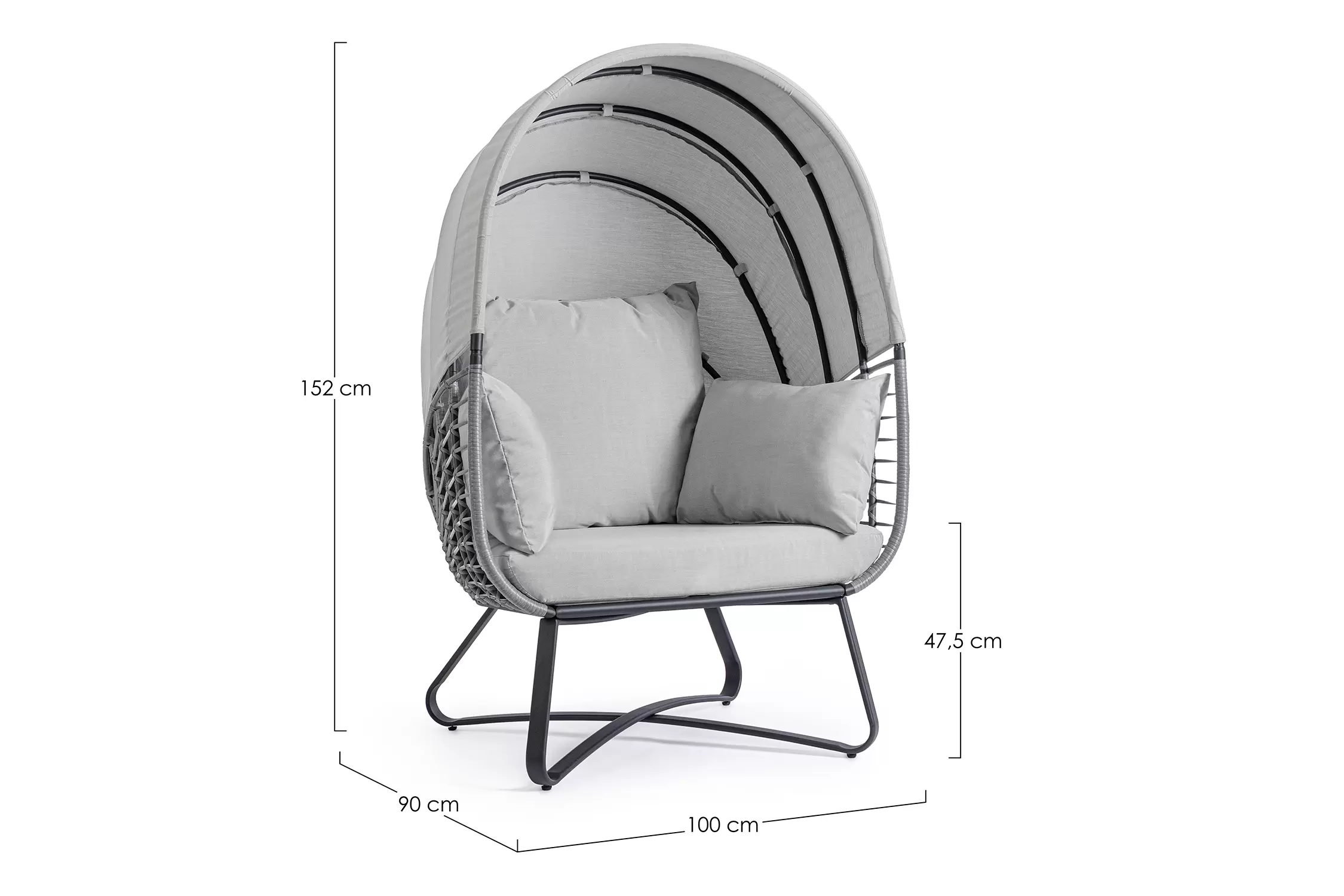 Fotel wypoczynkowy na taras z daszkiem ELDON szare poduszki