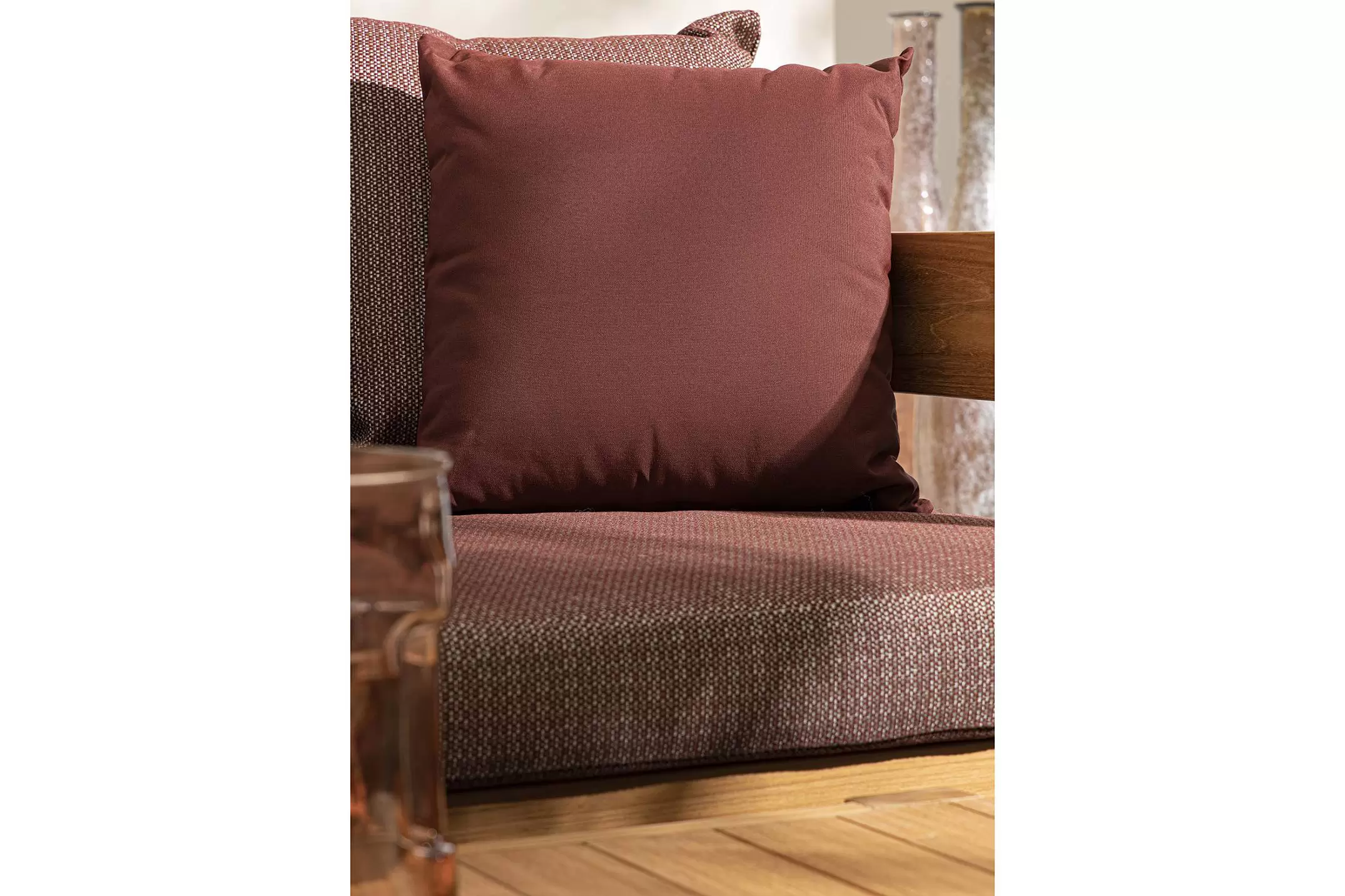 Poduszki ze zdejmowanymi poszewkami z przeciwsłonecznej tkaniny arashi (100% akrylu).